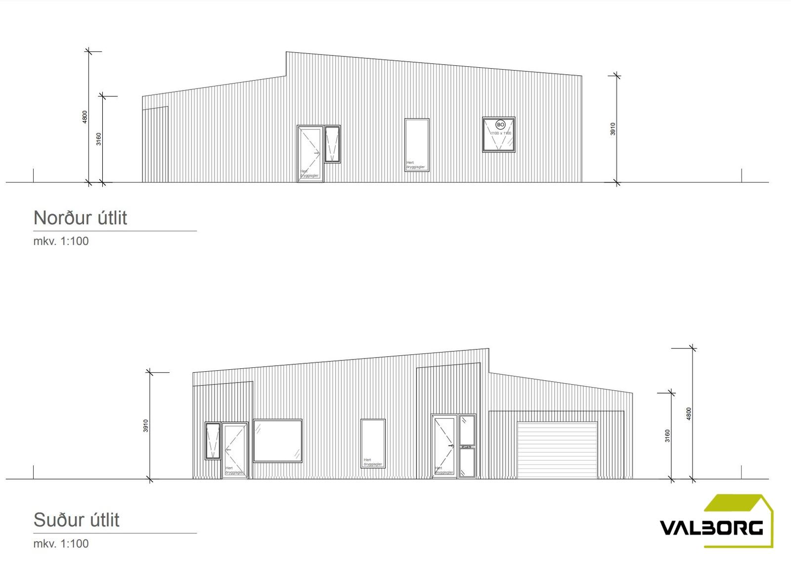 Byggingarlýsing.Sökkulveggir og gólfplata eru staðsteypt. Polystyren plasteinangrun, 100mm undir plötu og 75mm plasteinangrun,900mm niður sökkulveggi. Burðarvirki útveggja er fura, 45 x 145 mm timburgrindur, klæddar með 16 mm krossvið til stýfingar og dupont veðurklæðningu. Utan á timburgrind kemur gróf viðarklæðning í ljósum lit, máluð. Einangrun útveggja er 150 mm þéttull. Að innan kemur rakavarnarlag (þolplast). Lagnagrind er fura 45 x 45 mm m/m og klæðning að innan er viður, í flokki 2.