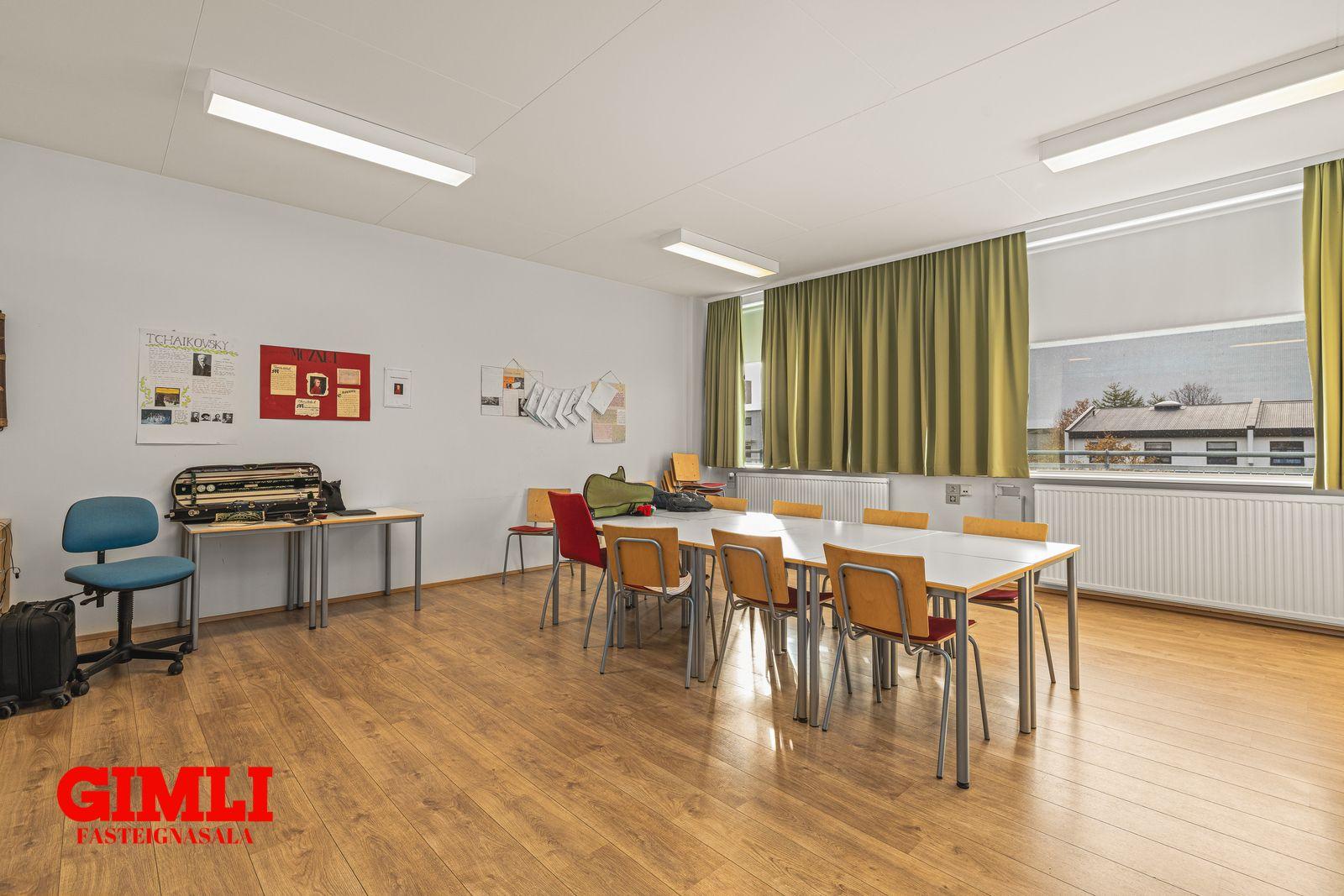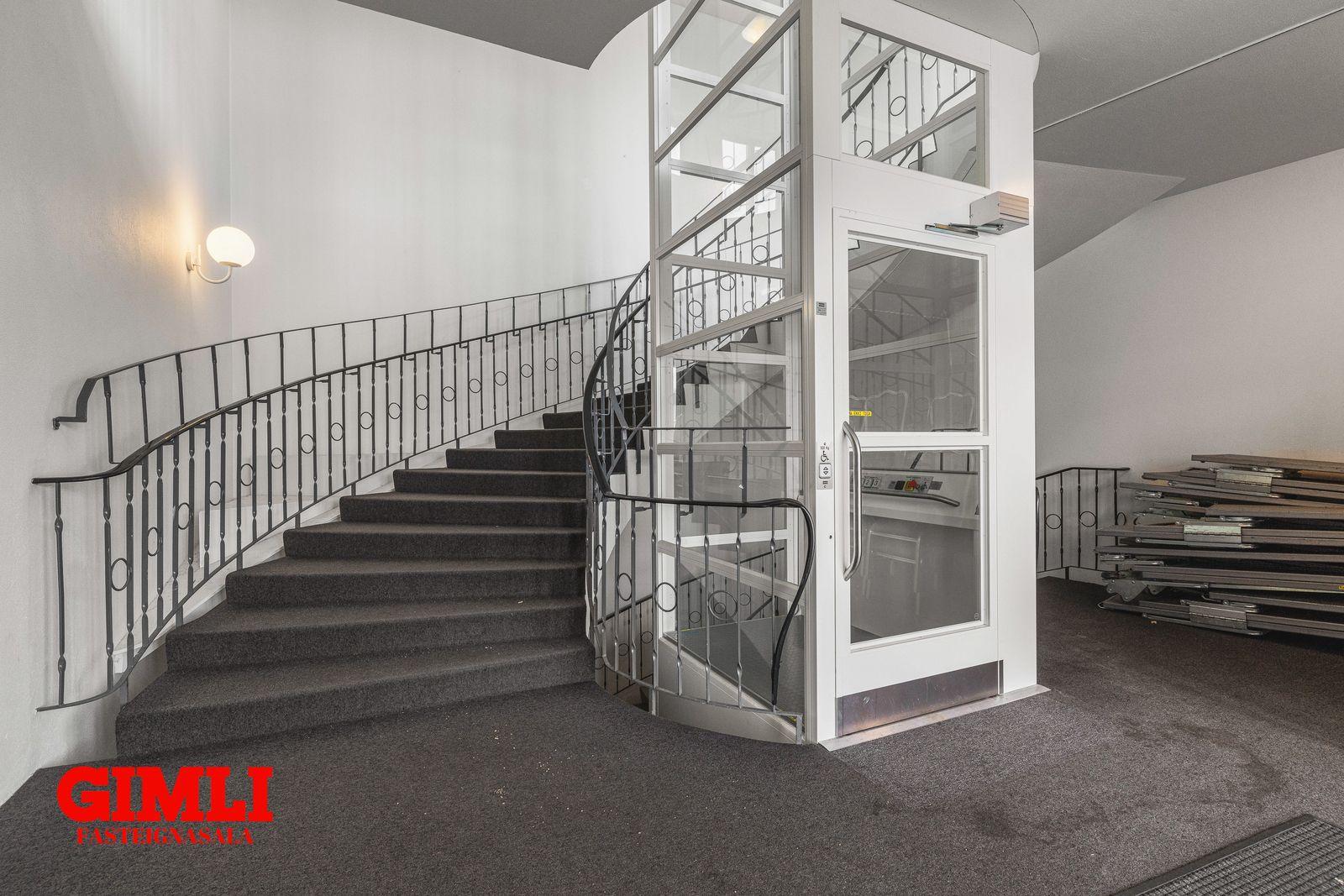 Gengið er upp fallegan hringstiga í sameign á vesturhlið, einnig er lyfta á milli hæða. Skiptist eignin í fimm skrifstofur og stóran sal í enda, snyrtingu og starfsmannaaðstöðu. Um er að ræða efri hæð í vestur enda með gluggum á þrjá vegu og fínu útsýni.