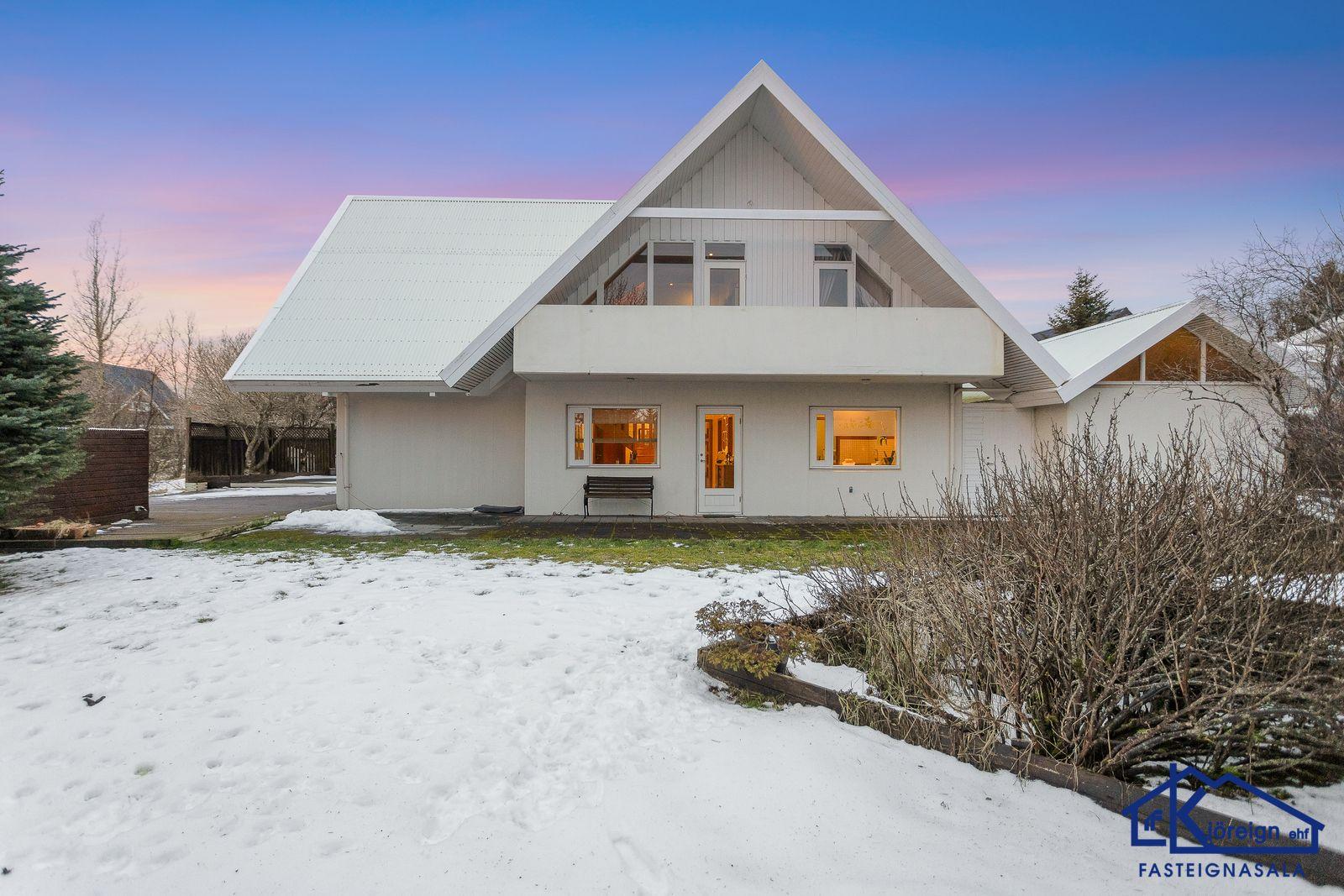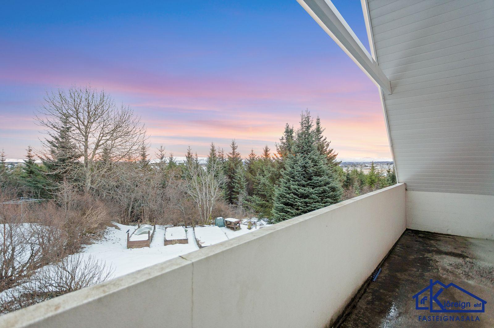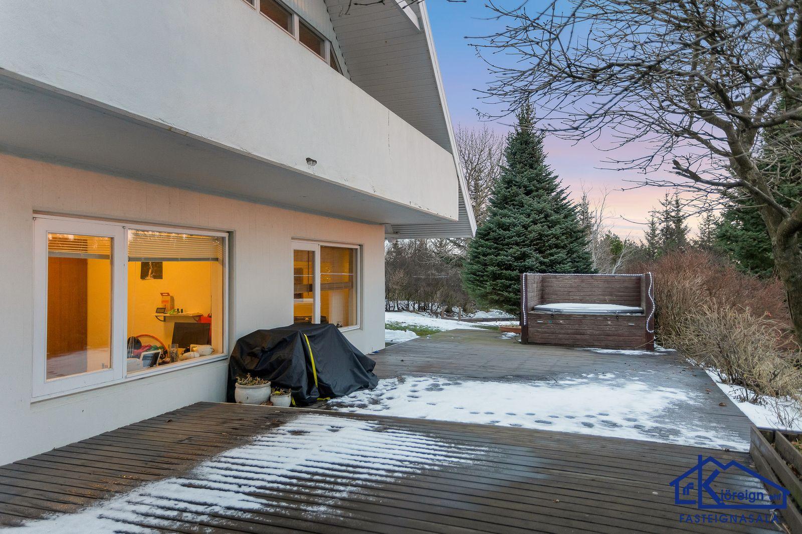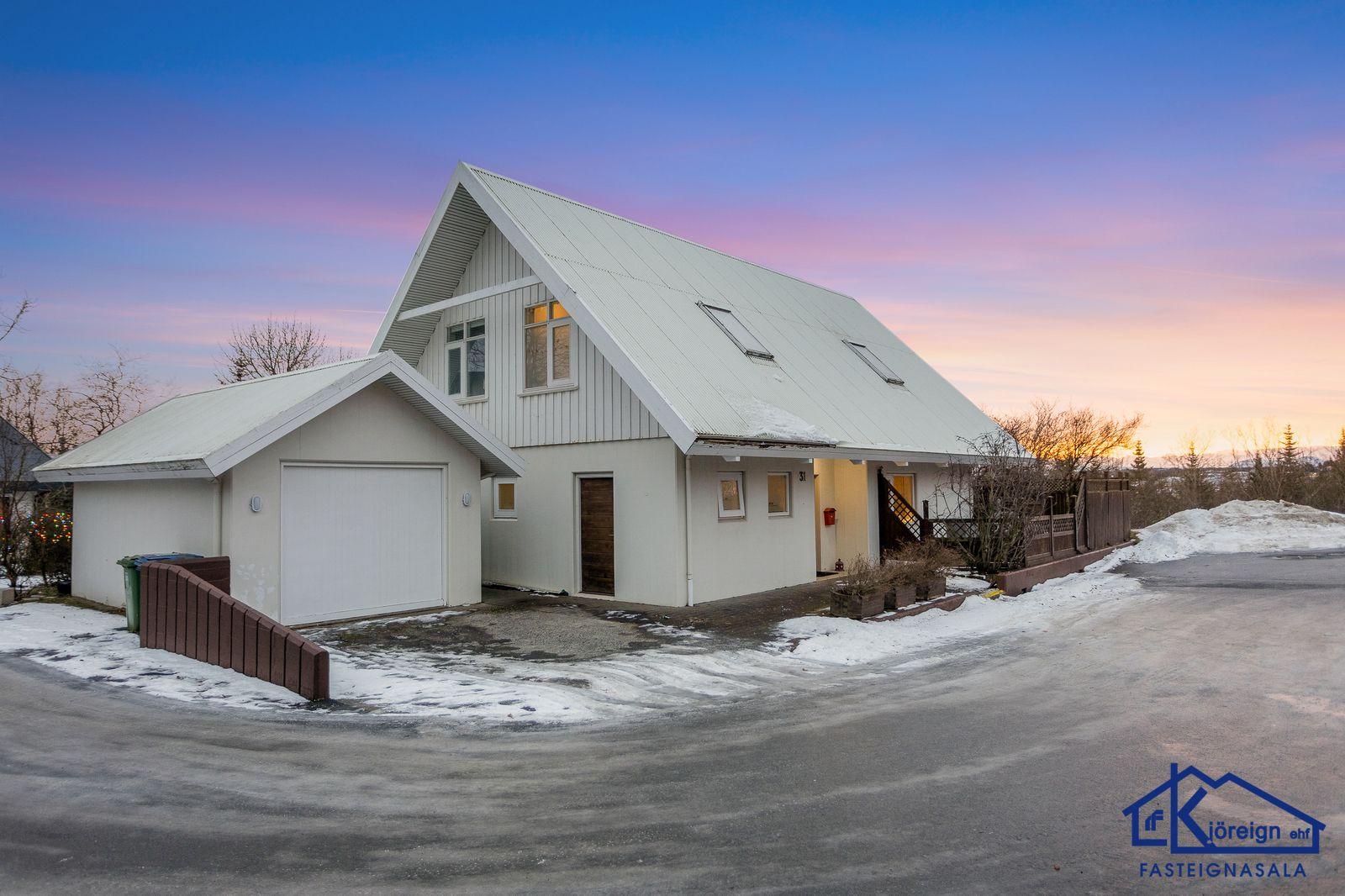 Kjöreign ehf., fasteignasala, Ármúla 21, Reykjavík, sími 533-4040 kynnir vandað og sérstaklega vel staðsett steinsteypt einbýlishús á jaðarlóð við Klapparberg, Reykjavík. Birt heildarstærð er 235,6 fm. Lýsing, neðri hæðin. Forstofa, þvottahús, hol, eldhús, búr, tvö svefnherbergi, baðherbergi og stofur. Lýsing, efri hæðin. Stofa, baðherbergi, tvö svefnherbergi og tvennar svalir. Nánari lýsing, neðri hæðin. Flísalögð forstofa með skáp. Innaf forstofunni er rúmgott þvottahús með innréttingu, glugga og útihurð. Lítið baðherbergi með sturtu. Flísar á gólfi. Rúmgóðar stofur. Miðrými er opið með tvöfaldri lofthæð. Hurð er úr stofunni út á timbursólpall. Tvö ágæt herbergi, annað er með skáp. Eldhús með góðri innréttingu og eyju með steini. Innaf eldhúsinu er búr með glugga. Parket er á hæðinni. Nánari lýsing, efri hæðin. Góð stofa með hurð út á stórar útsýnissvalir með útsýni á Bláfjöll. Rúmgott herbergi með skápum, gaflglugga og þakglugga. Rúmgott hjónaherbergi með nýjum skáp. Aðrar svalir út frá gangi. Sérlega rúmgott baðherbergi með glugga og þakglugga, ný sérsmíðuð sturta og stórt parabað. Góður handklæðaofn og upphengt klósett. Baðherbergið er flísalagt. Bílskúrinn. Bílskúrinn er sérbyggður með gluggum og hliðarhurð. Bílskúrinn er með góðri lofthæð og er í góðu ástandi. Milli bílskúrs og húss er geymsla (óskráð). Lóðin. Lóðin er 652 fm. öll gróin með stórum sólpalli og heitavatnspotti. Lóðin liggur að borgarlandi með miklum trjágróðri. Einstaklega gott fjöskylduhús á einstökum stað við Ellíðaárdalinn, útivistarparadís. Húsið er staðsett í lokuðum rólegum botnlanga. Húsið hefur fengið góða umhirðu. Fasteignamat 2026 er kr. 138.400.000,-. Upplýsingar gefa sölumenn Kjöreignar ehf., í síma 533-4040 eða á kjoreign@kjoreign.is Dan Wiium lögm. og lögg. fasteignsali í gsm. 896-4013 eða dan@kjoreign.is Ásta María Benónýsdóttir lögg. fasteignasali gsm. 897-8061 eða asta@kjoreign.is