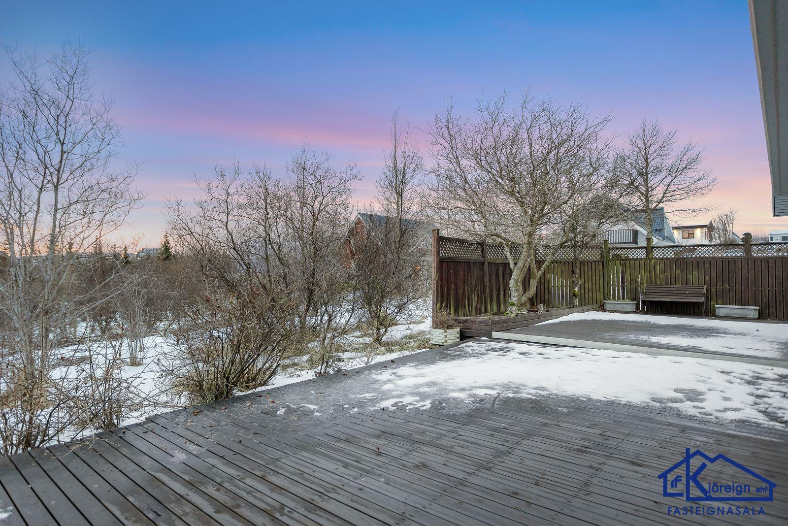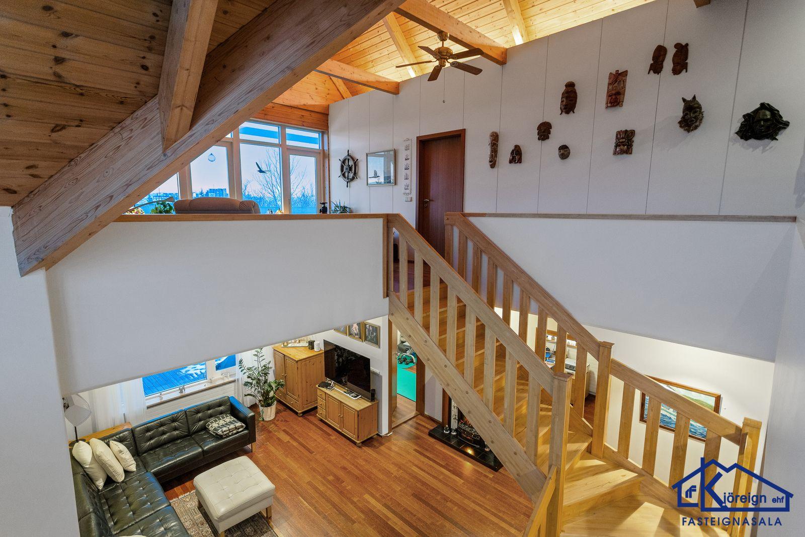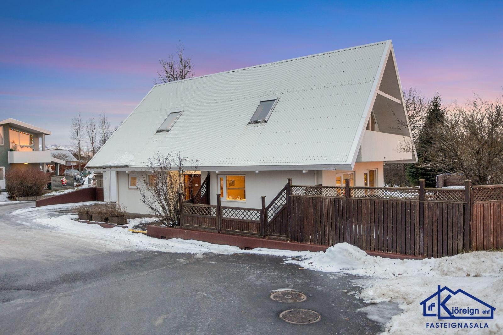 Kjöreign ehf., fasteignasala, Ármúla 21, Reykjavík, sími 533-4040 kynnir vandað og sérstaklega vel staðsett steinsteypt einbýlishús á jaðarlóð við Klapparberg, Reykjavík. Birt heildarstærð er 235,6 fm. Lýsing, neðri hæðin. Forstofa, þvottahús, hol, eldhús, búr, tvö svefnherbergi, baðherbergi og stofur. Lýsing, efri hæðin. Stofa, baðherbergi, tvö svefnherbergi og tvennar svalir. Nánari lýsing, neðri hæðin. Flísalögð forstofa með skáp. Innaf forstofunni er rúmgott þvottahús með innréttingu, glugga og útihurð. Lítið baðherbergi með sturtu. Flísar á gólfi. Rúmgóðar stofur. Miðrými er opið með tvöfaldri lofthæð. Hurð er úr stofunni út á timbursólpall. Tvö ágæt herbergi, annað er með skáp. Eldhús með góðri innréttingu og eyju með steini. Innaf eldhúsinu er búr með glugga. Parket er á hæðinni. Nánari lýsing, efri hæðin. Góð stofa með hurð út á stórar útsýnissvalir með útsýni á Bláfjöll. Rúmgott herbergi með skápum, gaflglugga og þakglugga. Rúmgott hjónaherbergi með nýjum skáp. Aðrar svalir út frá gangi. Sérlega rúmgott baðherbergi með glugga og þakglugga, ný sérsmíðuð sturta og stórt parabað. Góður handklæðaofn og upphengt klósett. Baðherbergið er flísalagt. Bílskúrinn. Bílskúrinn er sérbyggður með gluggum og hliðarhurð. Bílskúrinn er með góðri lofthæð og er í góðu ástandi. Milli bílskúrs og húss er geymsla (óskráð). Lóðin. Lóðin er 652 fm. öll gróin með stórum sólpalli og heitavatnspotti. Lóðin liggur að borgarlandi með miklum trjágróðri. Einstaklega gott fjöskylduhús á einstökum stað við Ellíðaárdalinn, útivistarparadís. Húsið er staðsett í lokuðum rólegum botnlanga. Húsið hefur fengið góða umhirðu. Fasteignamat 2026 er kr. 138.400.000,-. Upplýsingar gefa sölumenn Kjöreignar ehf., í síma 533-4040 eða á kjoreign@kjoreign.is Dan Wiium lögm. og lögg. fasteignsali í gsm. 896-4013 eða dan@kjoreign.is Ásta María Benónýsdóttir lögg. fasteignasali gsm. 897-8061 eða asta@kjoreign.is