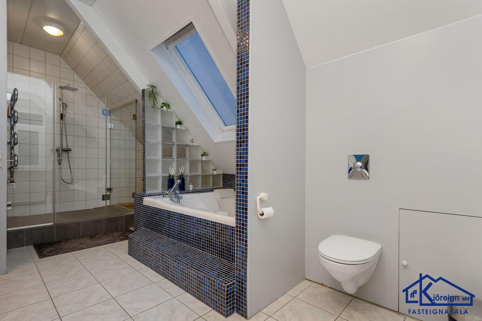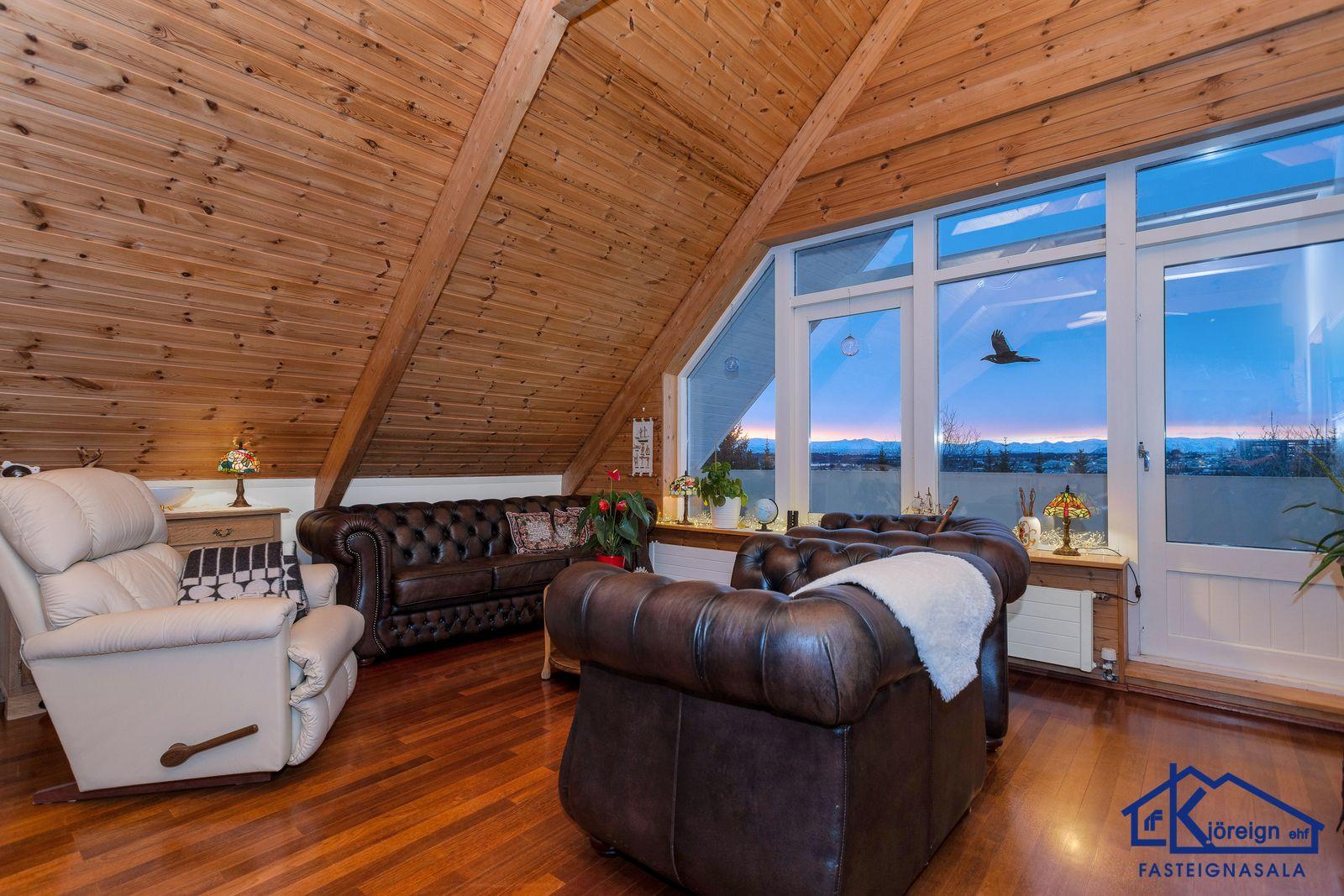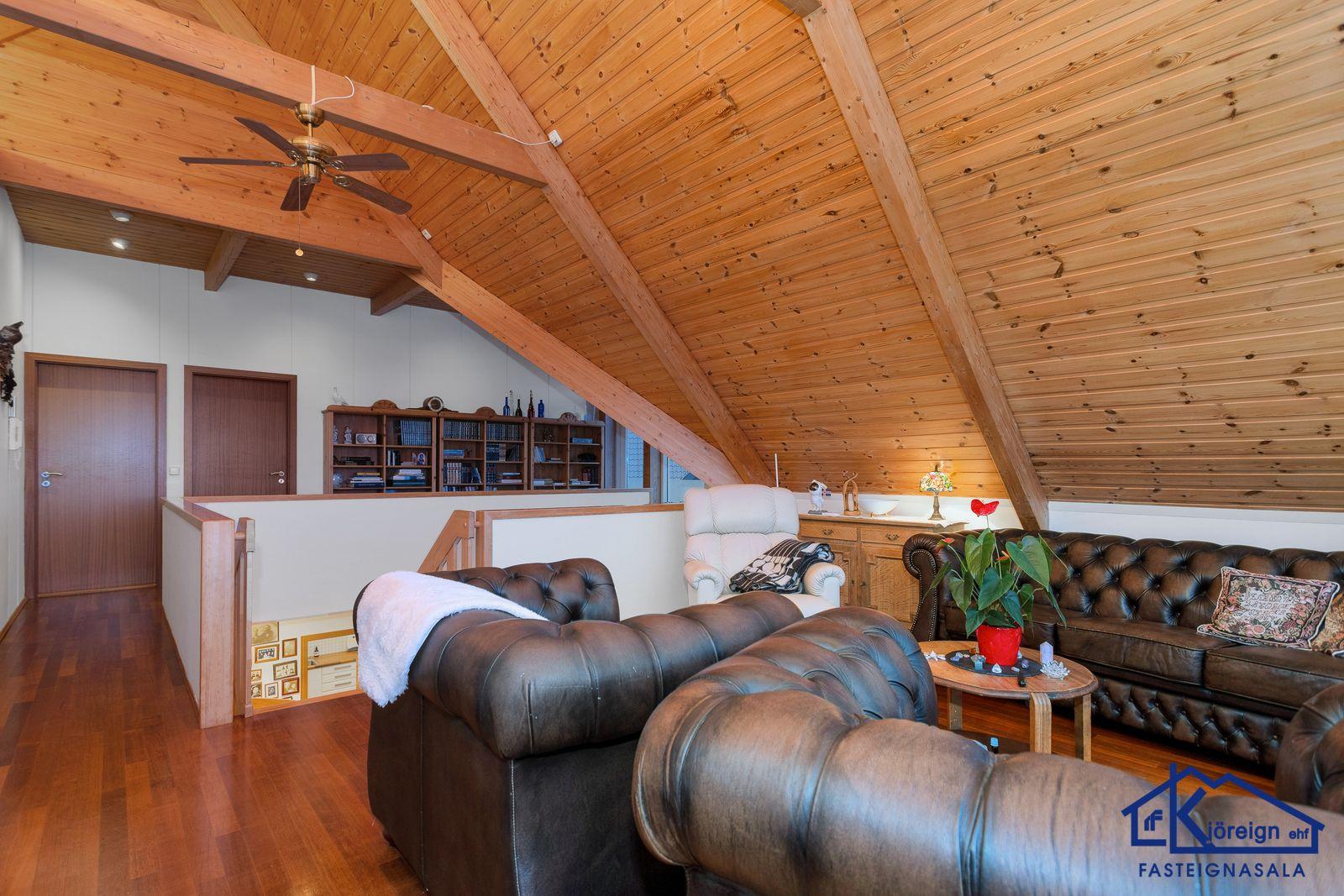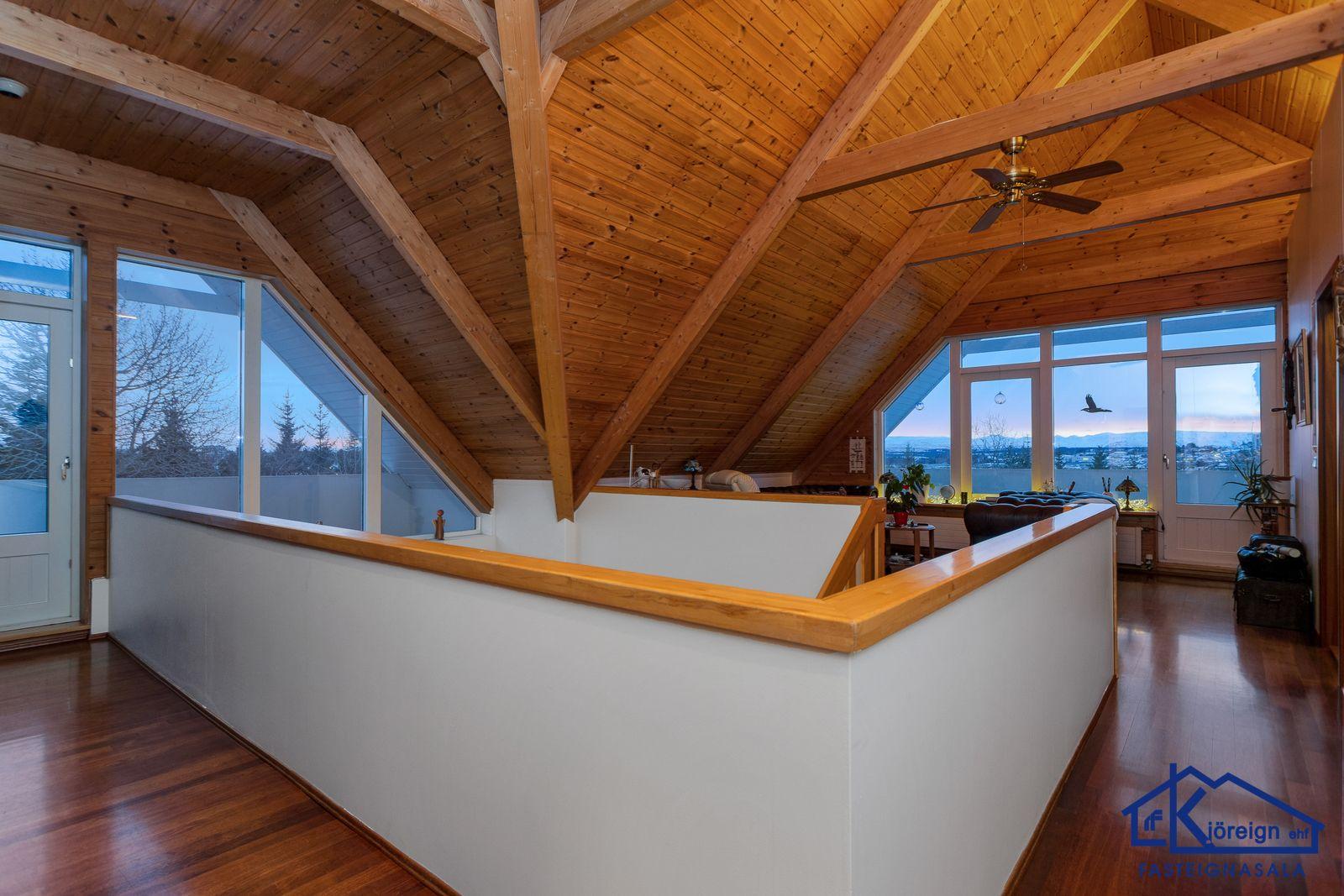 Kjöreign ehf., fasteignasala, Ármúla 21, Reykjavík, sími 533-4040 kynnir vandað og sérstaklega vel staðsett steinsteypt einbýlishús á jaðarlóð við Klapparberg, Reykjavík. Birt heildarstærð er 235,6 fm. Lýsing, neðri hæðin. Forstofa, þvottahús, hol, eldhús, búr, tvö svefnherbergi, baðherbergi og stofur. Lýsing, efri hæðin. Stofa, baðherbergi, tvö svefnherbergi og tvennar svalir. Nánari lýsing, neðri hæðin. Flísalögð forstofa með skáp. Innaf forstofunni er rúmgott þvottahús með innréttingu, glugga og útihurð. Lítið baðherbergi með sturtu. Flísar á gólfi. Rúmgóðar stofur. Miðrými er opið með tvöfaldri lofthæð. Hurð er úr stofunni út á timbursólpall. Tvö ágæt herbergi, annað er með skáp. Eldhús með góðri innréttingu og eyju með steini. Innaf eldhúsinu er búr með glugga. Parket er á hæðinni. Nánari lýsing, efri hæðin. Góð stofa með hurð út á stórar útsýnissvalir með útsýni á Bláfjöll. Rúmgott herbergi með skápum, gaflglugga og þakglugga. Rúmgott hjónaherbergi með nýjum skáp. Aðrar svalir út frá gangi. Sérlega rúmgott baðherbergi með glugga og þakglugga, ný sérsmíðuð sturta og stórt parabað. Góður handklæðaofn og upphengt klósett. Baðherbergið er flísalagt. Bílskúrinn. Bílskúrinn er sérbyggður með gluggum og hliðarhurð. Bílskúrinn er með góðri lofthæð og er í góðu ástandi. Milli bílskúrs og húss er geymsla (óskráð). Lóðin. Lóðin er 652 fm. öll gróin með stórum sólpalli og heitavatnspotti. Lóðin liggur að borgarlandi með miklum trjágróðri. Einstaklega gott fjöskylduhús á einstökum stað við Ellíðaárdalinn, útivistarparadís. Húsið er staðsett í lokuðum rólegum botnlanga. Húsið hefur fengið góða umhirðu. Fasteignamat 2026 er kr. 138.400.000,-. Upplýsingar gefa sölumenn Kjöreignar ehf., í síma 533-4040 eða á kjoreign@kjoreign.is Dan Wiium lögm. og lögg. fasteignsali í gsm. 896-4013 eða dan@kjoreign.is Ásta María Benónýsdóttir lögg. fasteignasali gsm. 897-8061 eða asta@kjoreign.is