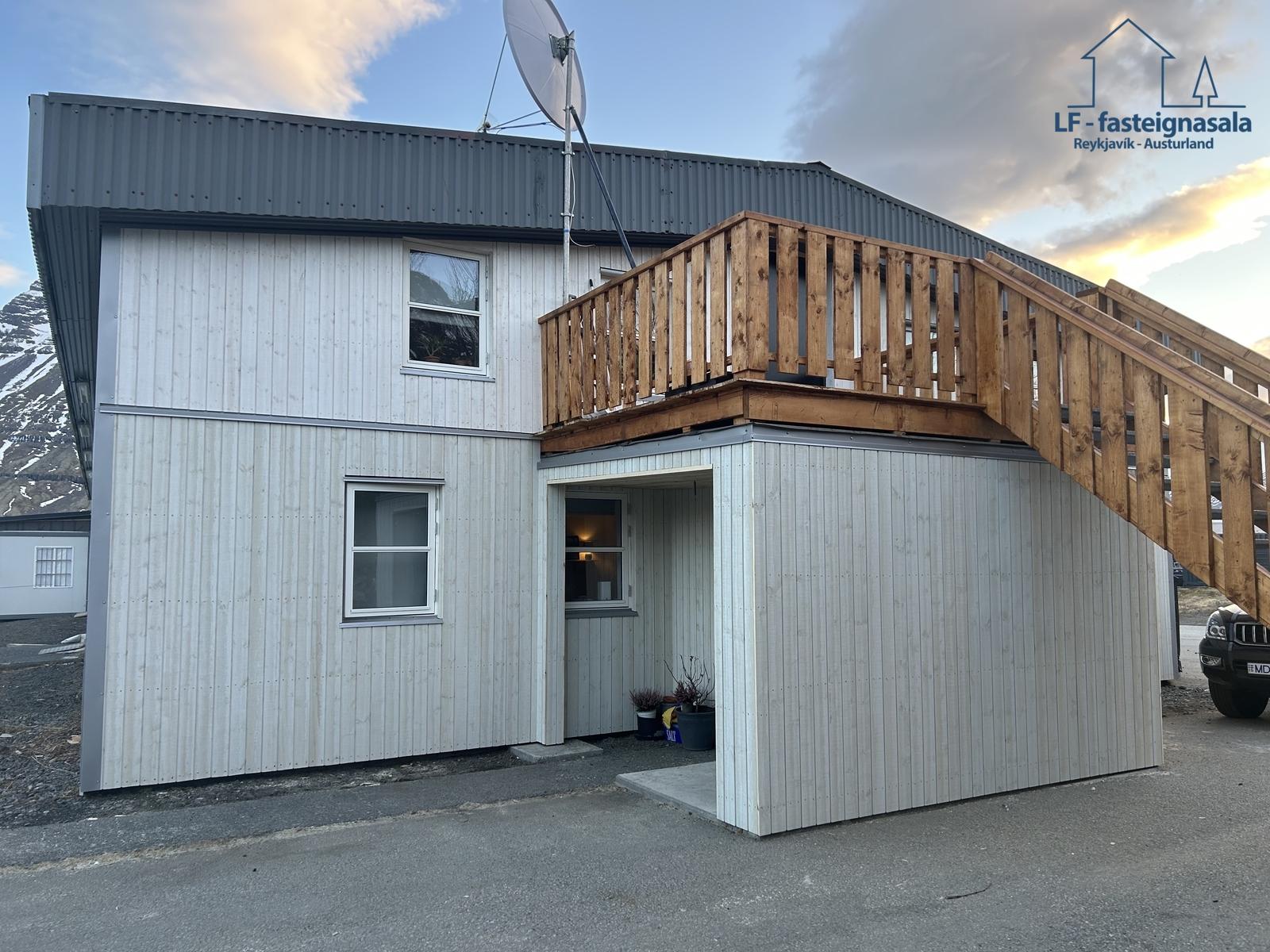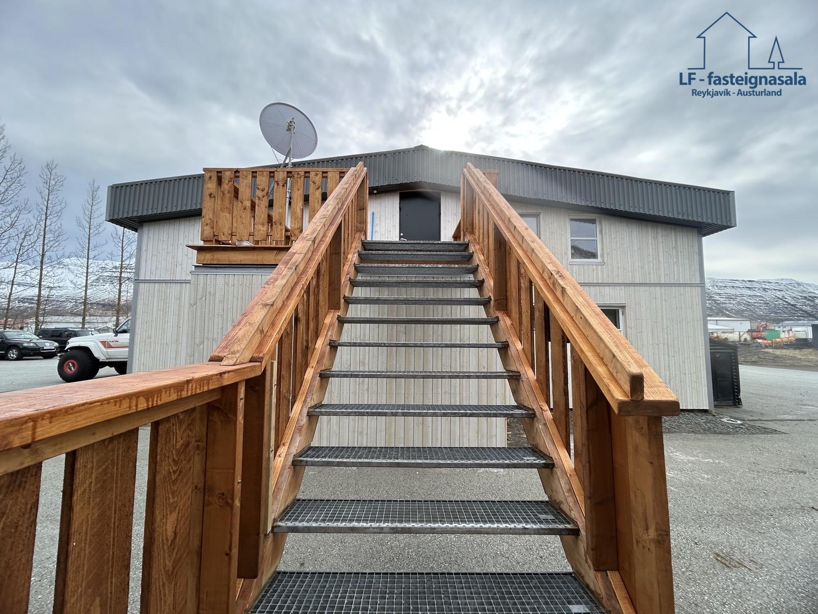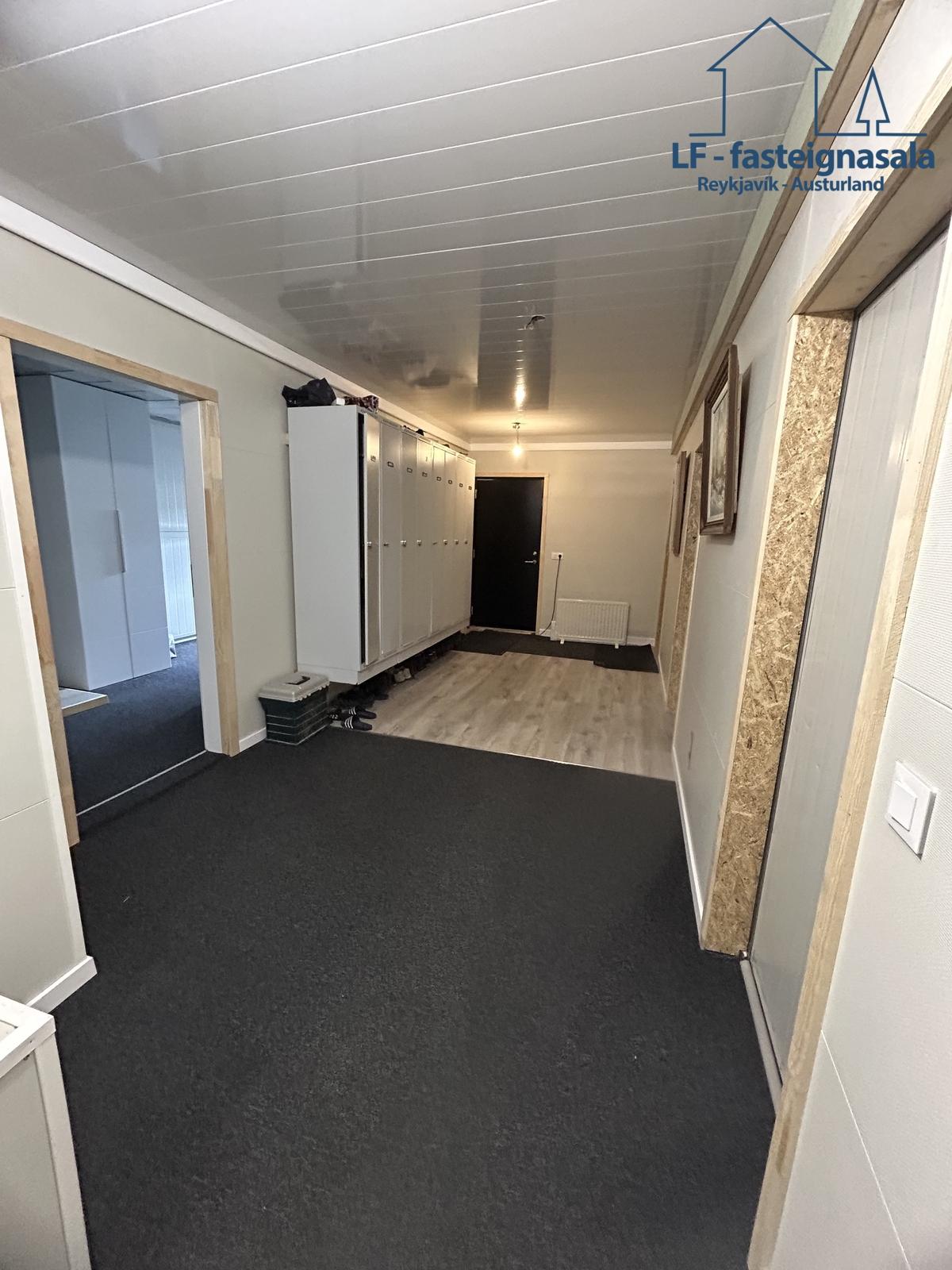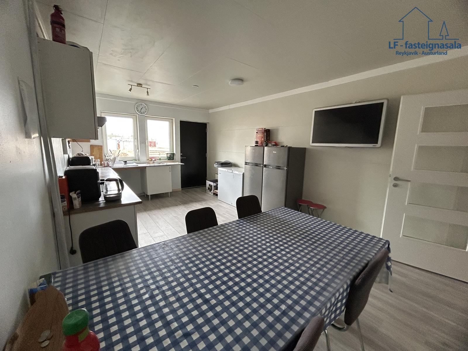 LF-fasteignasala/Lindin fasteignir s. 893-1319 og Þórdís Pála Reynisdóttir löggiltur fasteignasali thordis@lf-fasteignasala.is kynna: Búðareyri 29 og 29b, Reyðarfirði. *Stórt atvinnuhúsnæði með ýmsa möguleika. *Um er að ræða 2 sjálfstæðar fasteignir F2177112 og F2266689 *Stærð 1240,1m2 og í viðbót er ca. 200 m2 starfsmannahús með gildu stöðuleyfi á lóðinni og er það áfast SA enda húsanna. *Í starfsmanna-húsinu eru 7 herbergi með vaski og sturtu, einnig 2 minni herbergi, 2 salerni og 2 sturtur ásamt þvottavél og þurrkara. Rúmgott eldhús með langborði, frystikistu og tveim ísskápum. Sjónvarps-rými með sófum og sjónvarpi. *Húsin standa á stórri leigulóð sem nýbúið er að endurnýja til 25 ára og er möguleiki á að byggja meira á lóðinni. *Suður endinn er einangraður og raka varinn 206,5m2. Iðnaðarhurð og tvær göngu hurðar ásamt vatni og wc. Rýmið hefur verið í leigu. *Stóri salurinn er óeinangraður 557,6m2. Innangengt er inn í suðurenda, iðnaðarhurð og gönguhurð. Rýmið hefur verið leigt út fyrir húsbíla og hjólhýsi á veturna. *Möguleiki er á að gera salinn einangraðan og rakavarin sem og að hólfa niður í minni bil til útleigu. *4 iðnaðarbil, 2 100m2 bil og tvö 50m2 bil með varmadælum og vatni, gert er ráð fyrir salernum í tveimur minni bilunum, stærri bilin eru með salerni. Öll bilin eru með iðnaðarhurðum og eru í útleigu með leigusamningum. *2 íbúðir hafa verið útbúnar þar sem skrifstofur og kaffistofa voru áður. Hvor íbúð er 50m2, 2 svefnherbergi, alrými með eldhúsi, salerni með sturtu og þvottavélatengli. Íbúðirnar eru í útleigu. *Hægt er að kaupa hvorn eignarhluta fyrir sig eða allt húsið í einu lagi ásamt starfsmannahúsinu.
