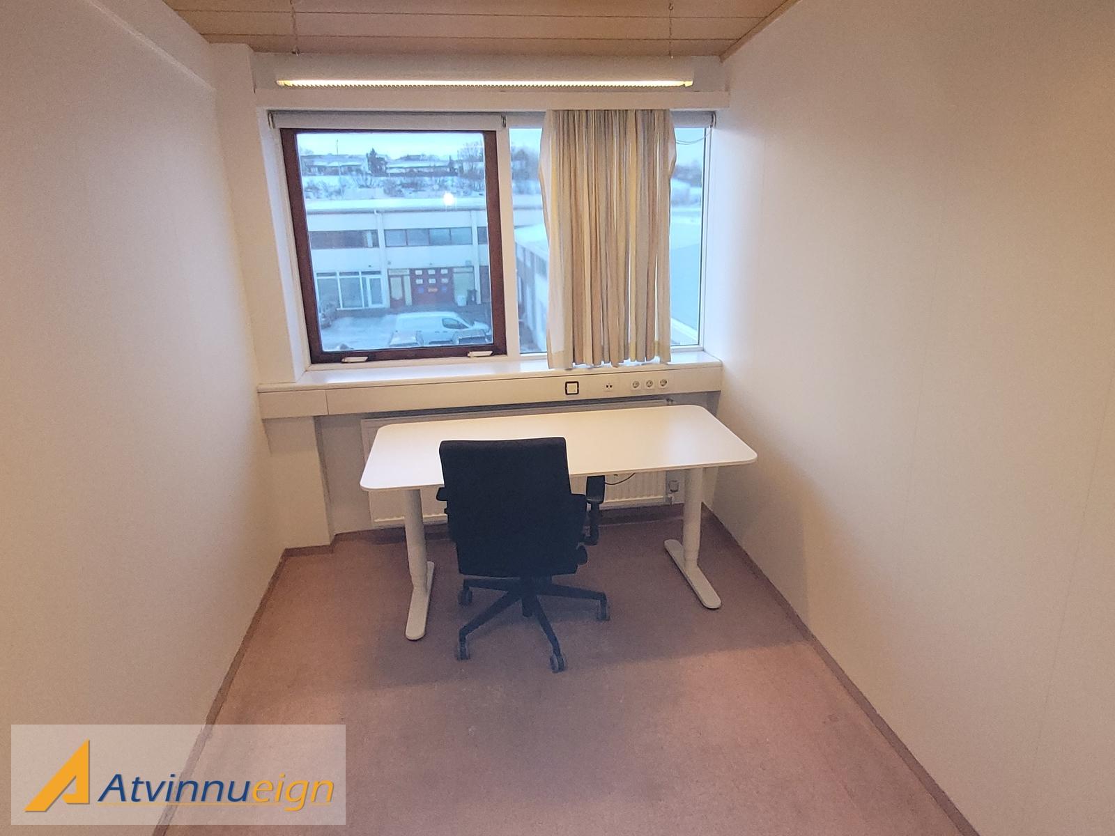 Skrifstofa númer 10 á teikningu er laus, verð 120 þkr. á mánuði með hita, rafmagni og hússjóð inniföldum.