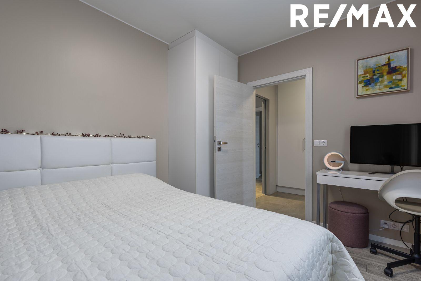 Andyri : er með hvítum fataskáp, parket á gólfi og gler rennihurð.