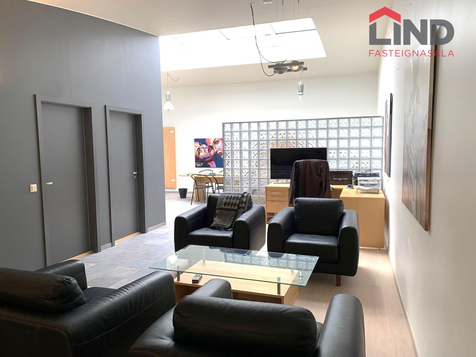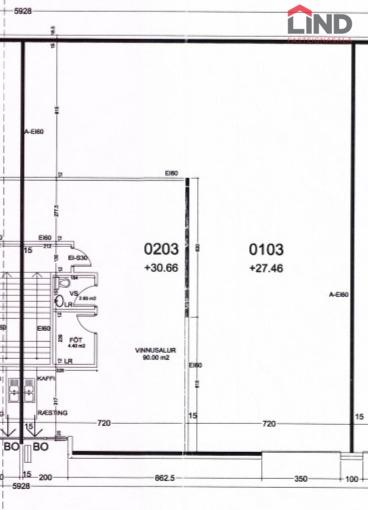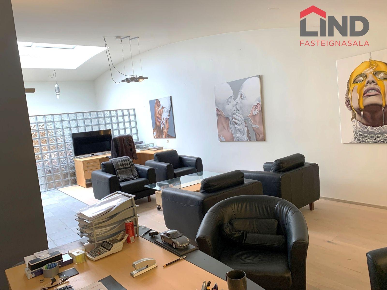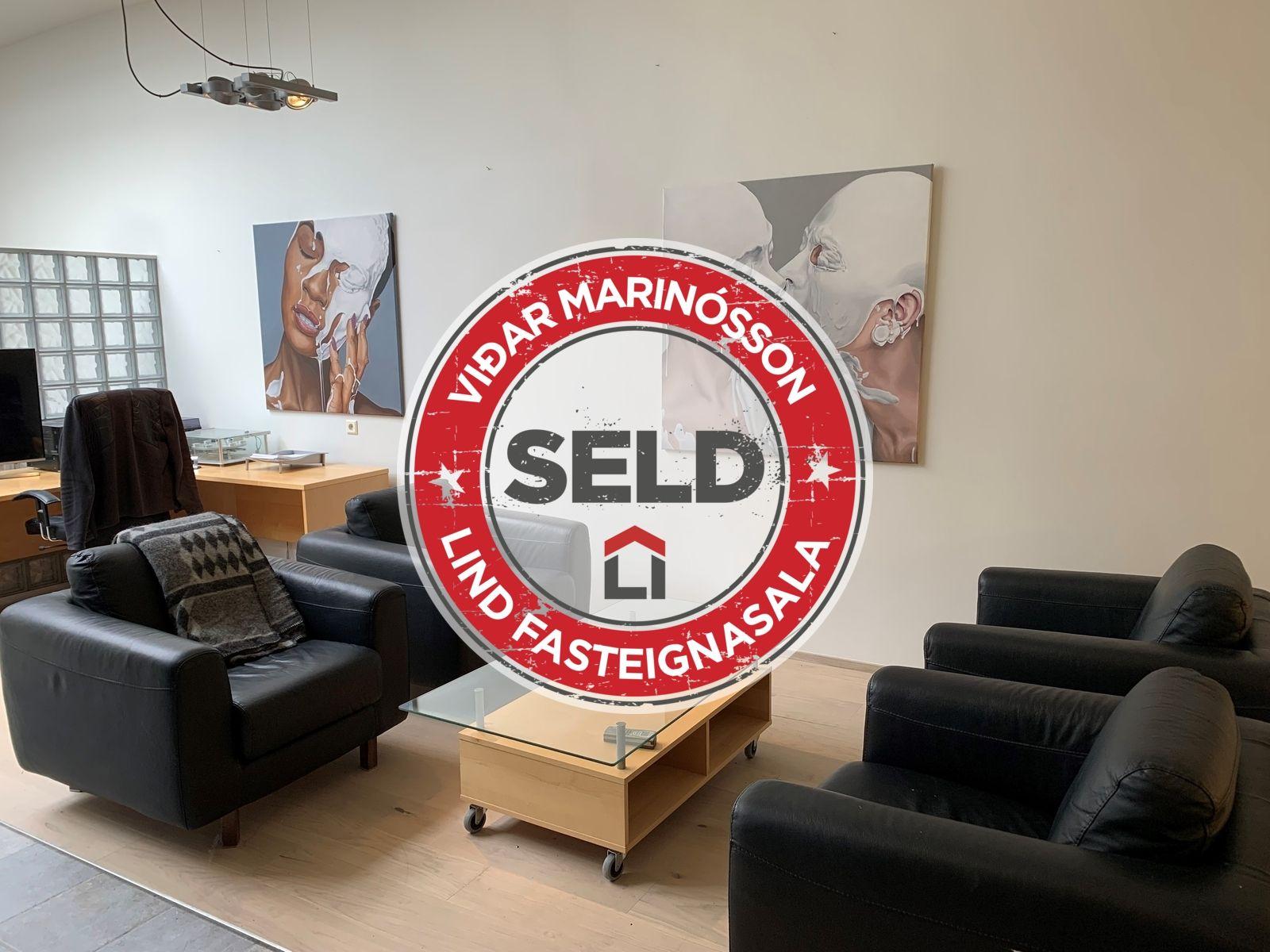 Mjög vandað Atvinnuhúsnæði á tveimur hæðum, salur með stórum innkeyrsludyrum 276,9 fm. og milliloft/skrifstofa 88,6 fm. samtals 365,5 fm. Neðri hæð 276,9 fm. skiptist: Forstofa með hurð inní vinnslusal og stigi upp á eftir hæð, flísar á gólfi Vinnslusalur með sér styrktu gólfi, hiti í gólfi, epoxy á gólfi. Stór innkeyrsluhurð 360 cm. á breidd og 400 cm. á hæð. Baðherbergi með salerni og sturtu, flísar í hólf og gólf Skiptiaðstaða fyrir starfsfólk. Geymsla og lítil skrifstofa. Efri hæð 88,6 fm. skiptist: Steyptu stigi milli hæða með flísum á gólfi Eldhús með ljósri eikarinnréttingu með stórum ísskáp, mjög góð mataraðstaða, flísar á gólfi Salerni með eikarinnréttingu, flísar í hólf og gólf Skrifstofa með parketi á gólfi. Yfir skrifstofu/eldhúsi er þakgluggi. Mjög vandað staðsteypt hús, einangrað að utan og klætt með litaðri klæðningu. Lóðin er snyrtilega frágengin með malbikuðum bílastæðum meðfram húsinu.