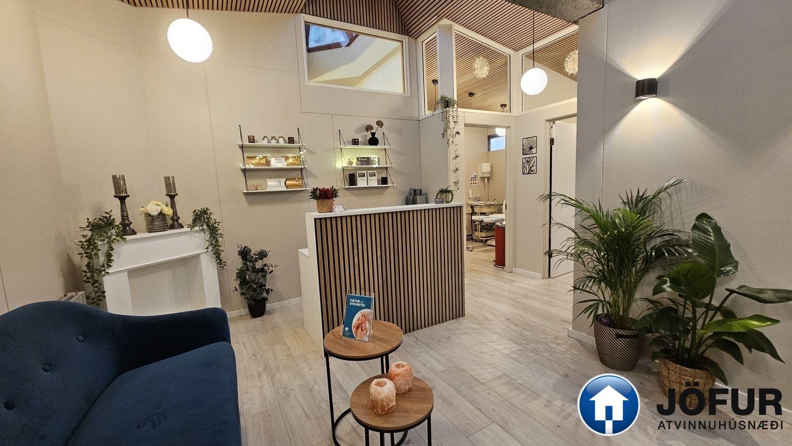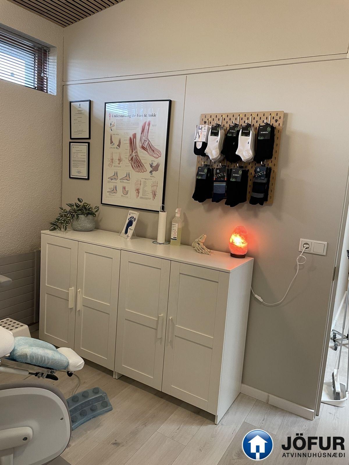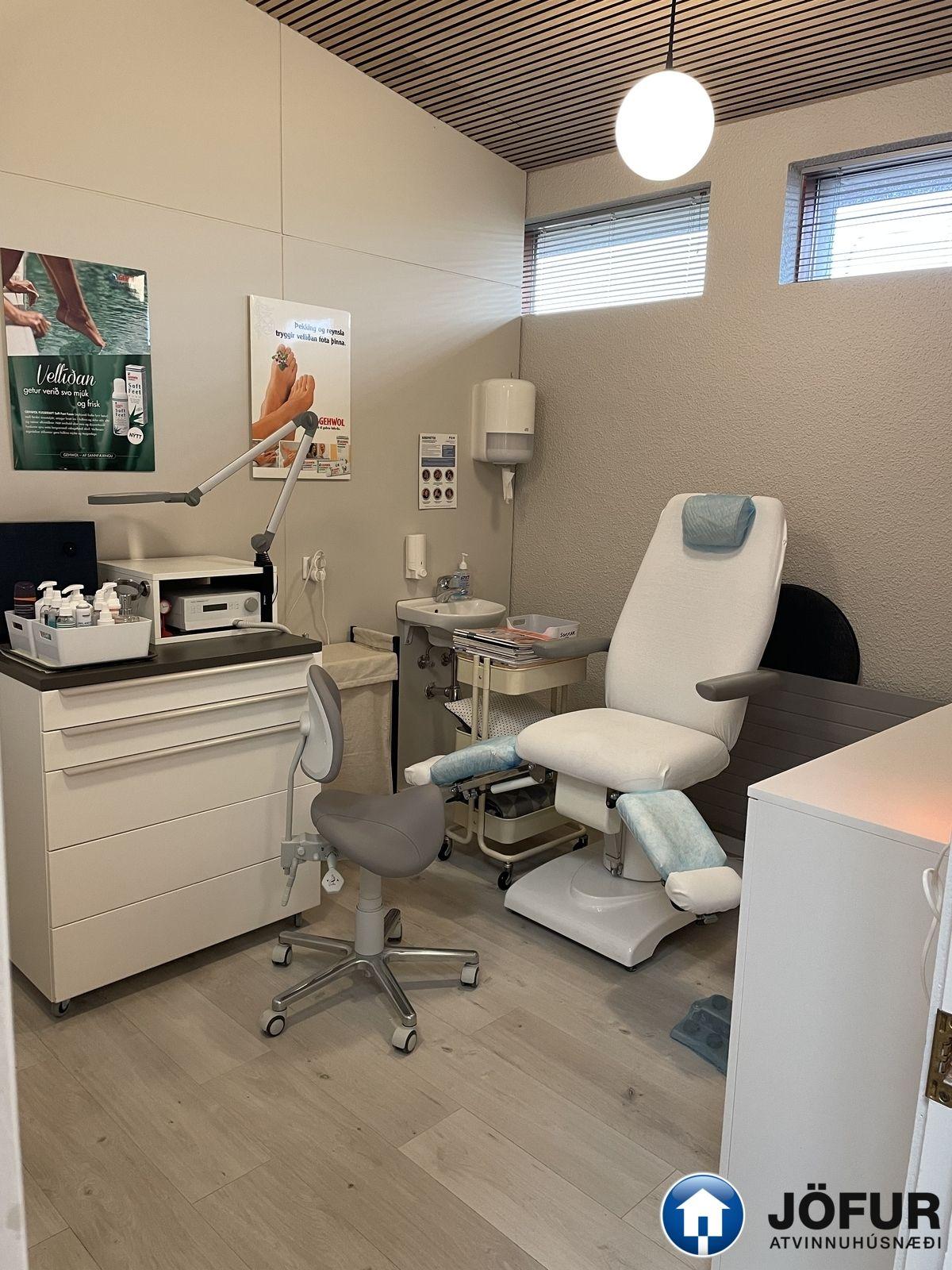 Húsnæðið skiptist í mjög gott meðferðarherbergi og svo móttöku, kaffistofu, wc og þvottaaðstöðu í sameign sem deilt er með einu öðru meðferðarherbergi.