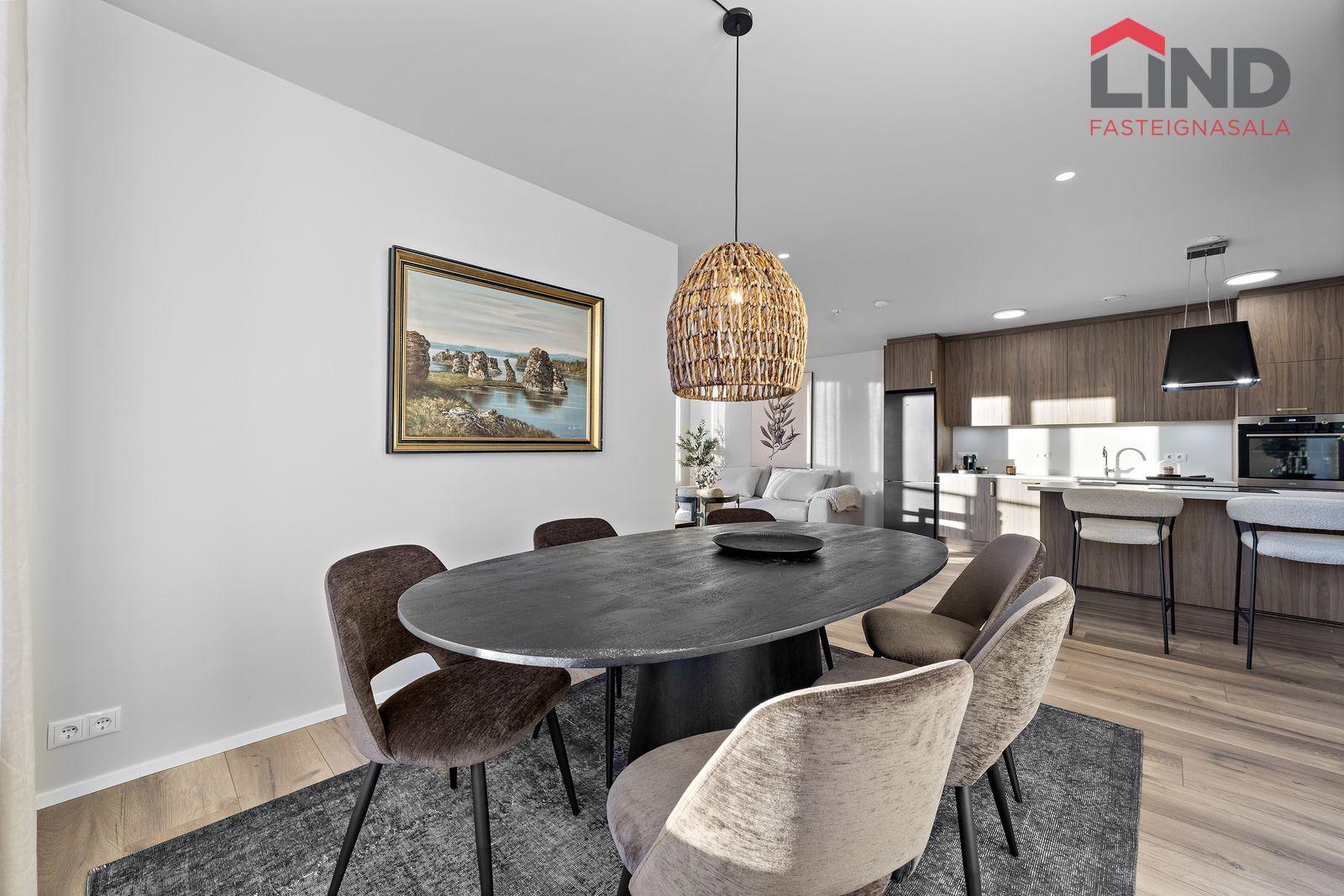 Baðherbergi: Baðinnrétting kemur frá Axis. Hreinlætistæki og handklæðaofn eru frá Byko. Salernið er upphengt og innbyggt. Hitastýrð blöndunartæki verða við sturtu. Gólf eru flísalögð og veggir að hluta upp í loft