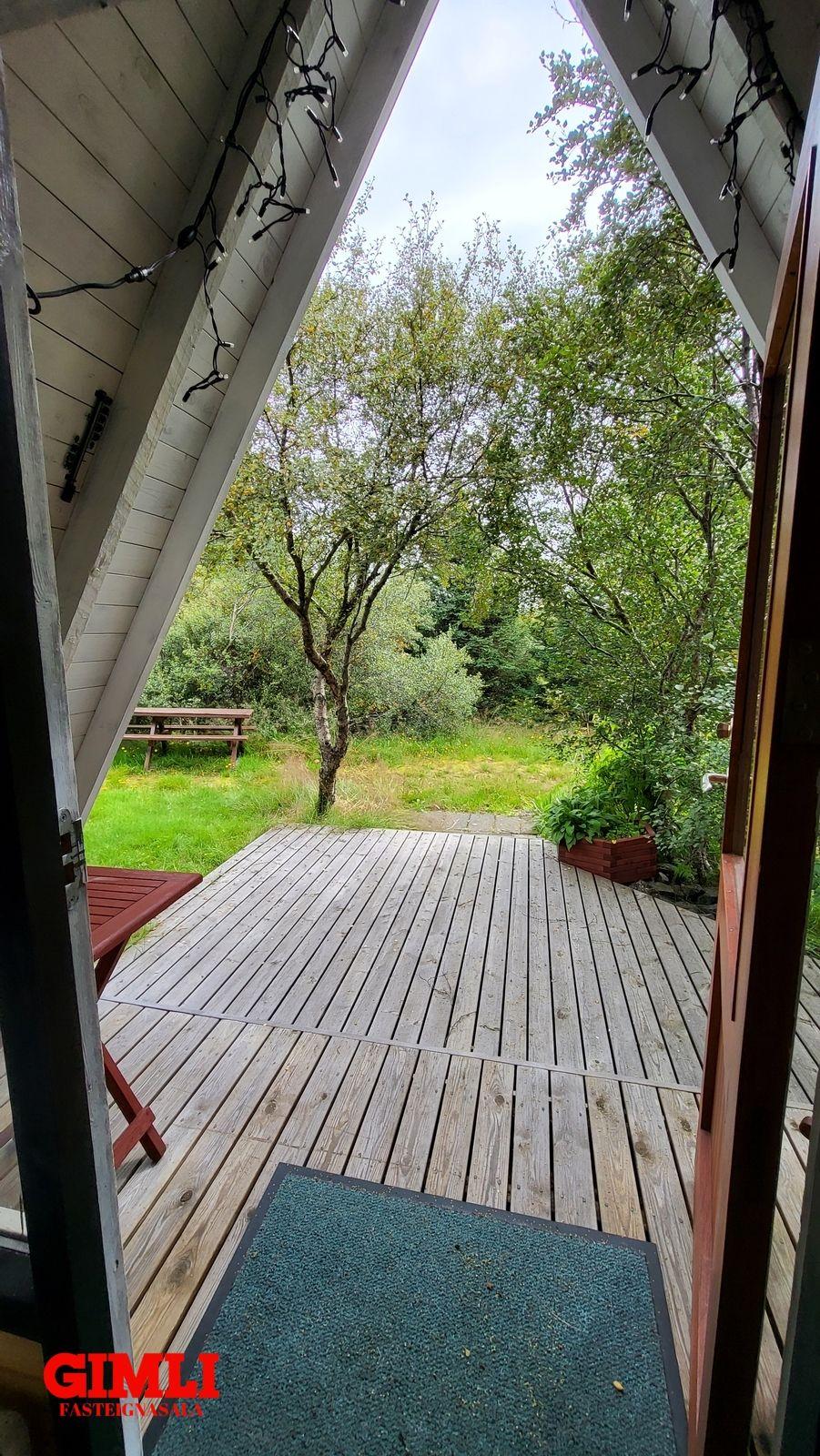 Til viðbótar aðalhúsinu fylgir plássgóður mjög góður A bústaður með svefnrými fyrir 3-4, snyrting, rafmagn og rennandi vatn.Húsið er óskráð.