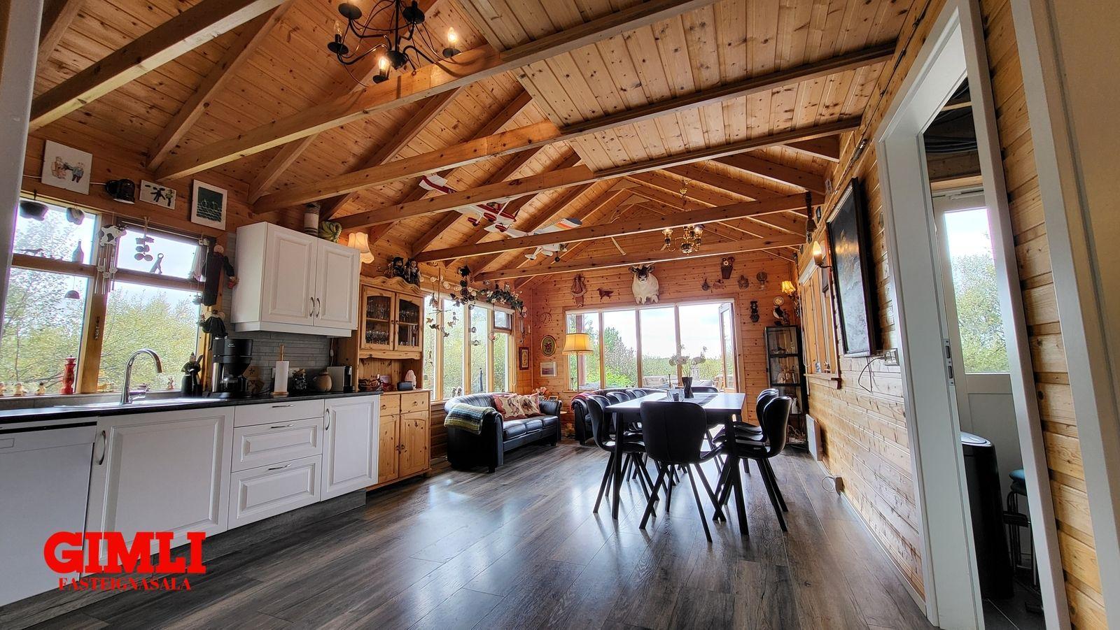 Að auki fylgir aðalhúsinu óskráð mjög gott gestahús og tvær útigeymslur.