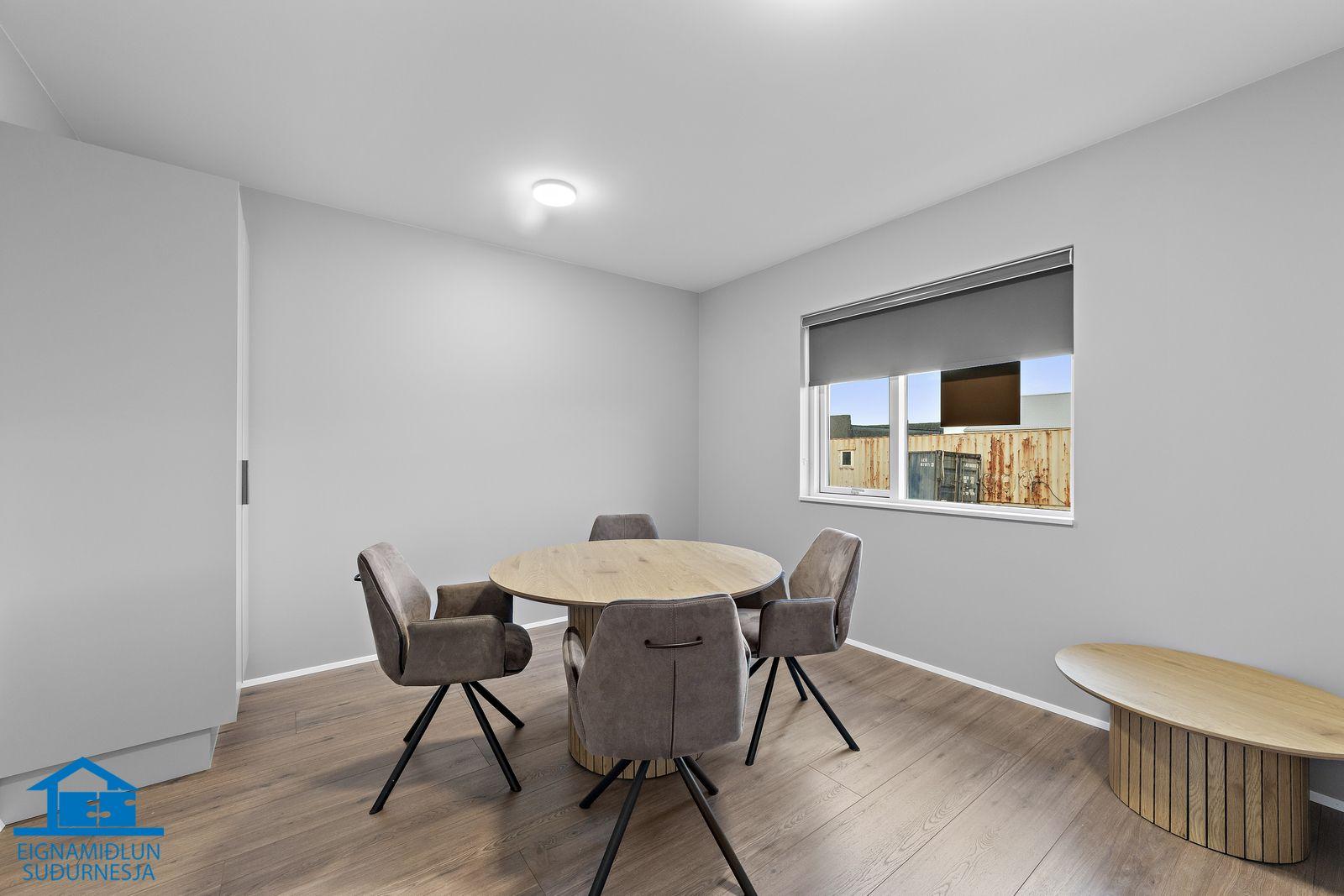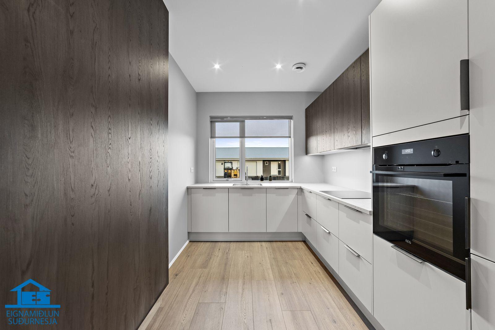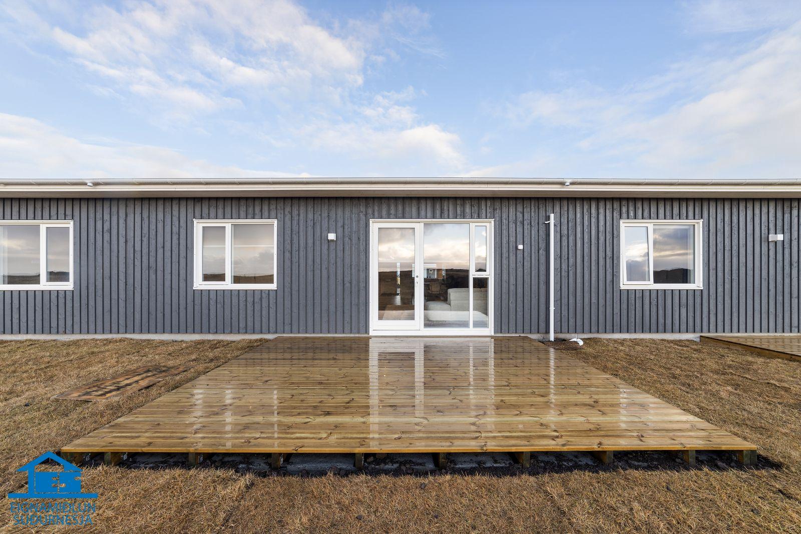 Íbúðin skilast fullgerð, með sólpalli til suð-vesturs, stétt fyrir framan með snjóbræðslu.