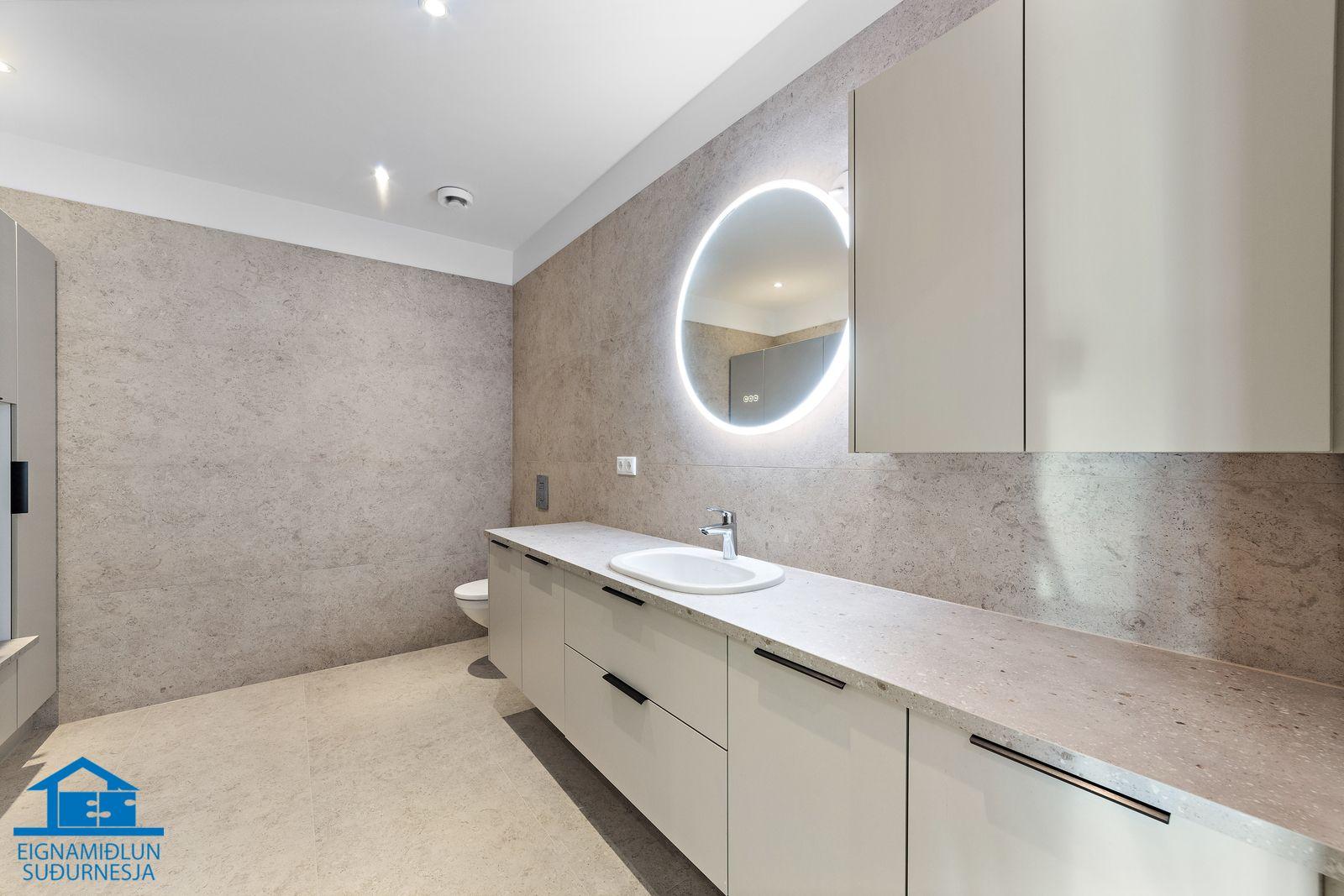 Í loftum er innfelld LED lýsing. Eignin er með tengjum fyrir tölvu og síma ásamt hitastilli í hverju rými fyrir gólfhitakerfi frá Rehau.