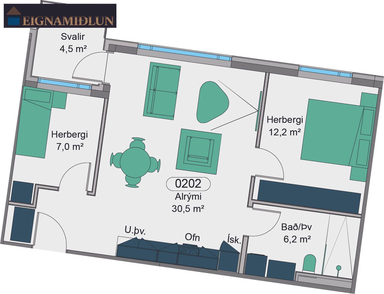 NÁNARI UPPLÝSINGAR GEFUR: Gunnar Bergmann Jónsson, Löggiltur fasteignasali í síma 839-1600 eða gunnarbergmann@eignamidlun.isOpinber skráning eignar: Íbúð merkt 02-02 er vönduð 3 herbergja íbúð. Fastanúmer eignar: