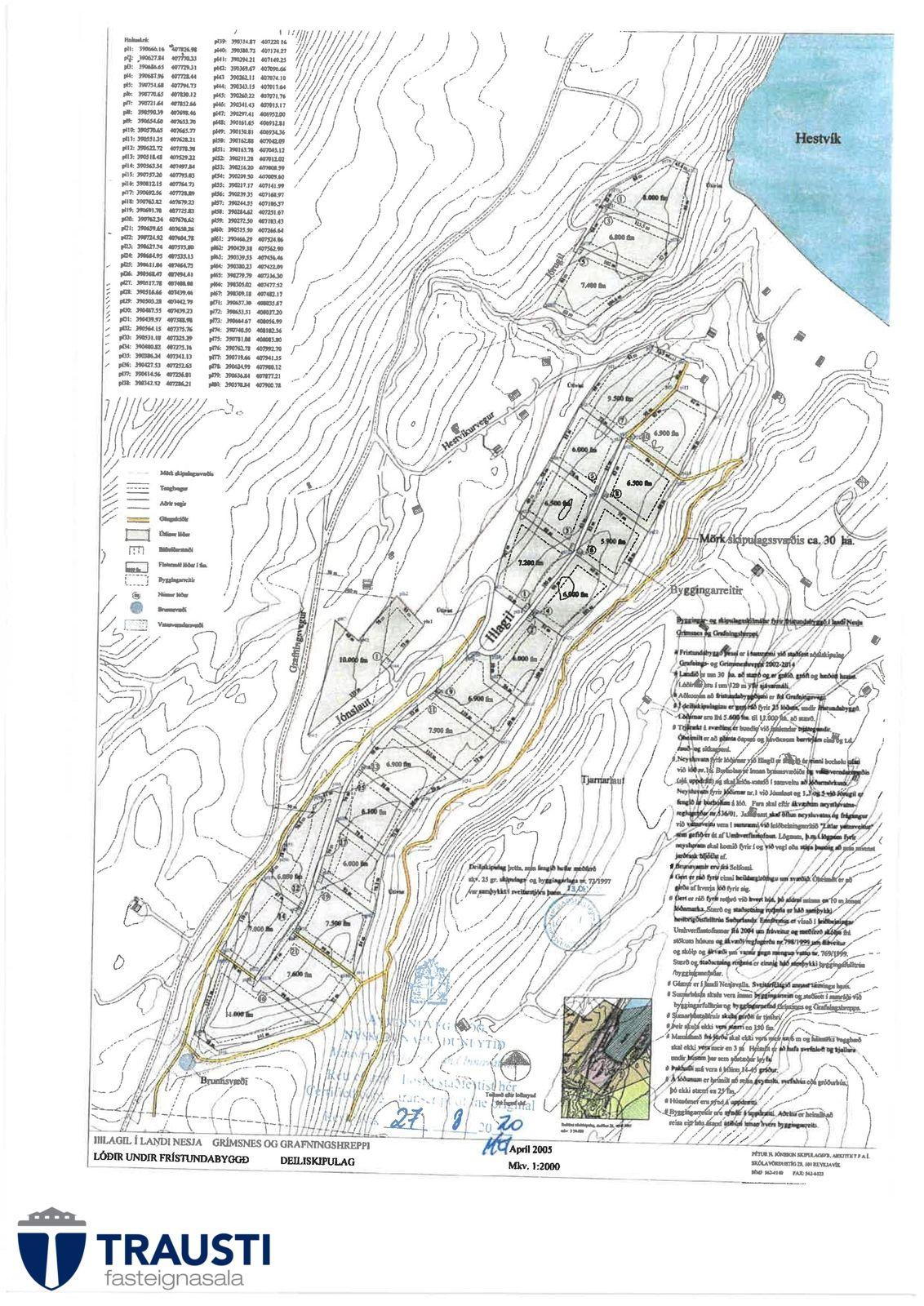 Illagil 15 og 13, 805 Selfoss Trausti fasteignasala og Hallgrímur Hólmsteinsson löggiltur fasteignasali kynna einstaka perlu á Þingvöllum, lóðirnar Illagil 15 og 13. Um er að ræða tvær samliggjandi lóðir 15 og 13 á einum fallegasta útsýnisstað við suðurenda Þingvallavatns þar sem þjógarðurinn, Skjaldbreið, Ármannsfell og Hrafnabjörg blasa við. Aðkoma að svæðinu er í gegnum lokað bómuhlið og lóðunum fylgir aðgangur að Hestvík og réttur til bátahalds. Teikning, verkfræðihönnun, og byggingarréttur að stóru og glæsilegu húsi fylgir lóðunum, en gert er ráð fyrir að það sé reist á lóð 15 og er búið að grafa grunn á lóðinni til að koma því fyrir. Húsið er hannað af Arkiteó arkitektum og hefur hönnun þess miðað að því að hámarka útsýni frá því, þægindi og aðgengi um leið og það fellur að landinu á einstaklega smekklegan hátt. Hér eru á ferðinni einar síðustu útsýnislóðirnar við Þingvallavatn, í einungis 30 mínútna fjarlægð frá höfuðborginni. Lóðirnar seljast einungis allar saman. Allar nánari upplýsingar veitir Hallgrímur Hólmsteinsson löggiltur fasteignasali í síma 896-6020 eða á netfanginu hallgrimur@trausti.is.