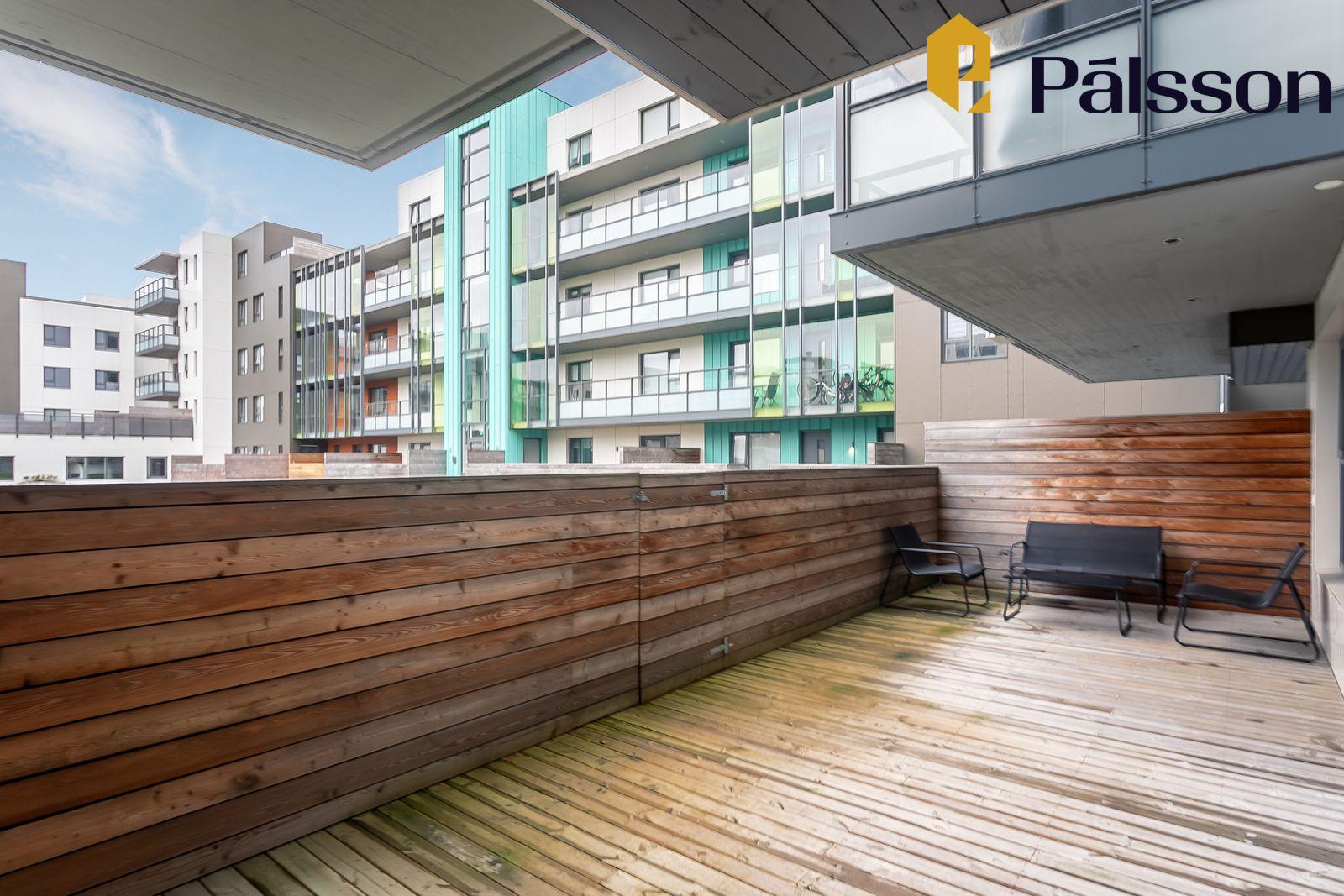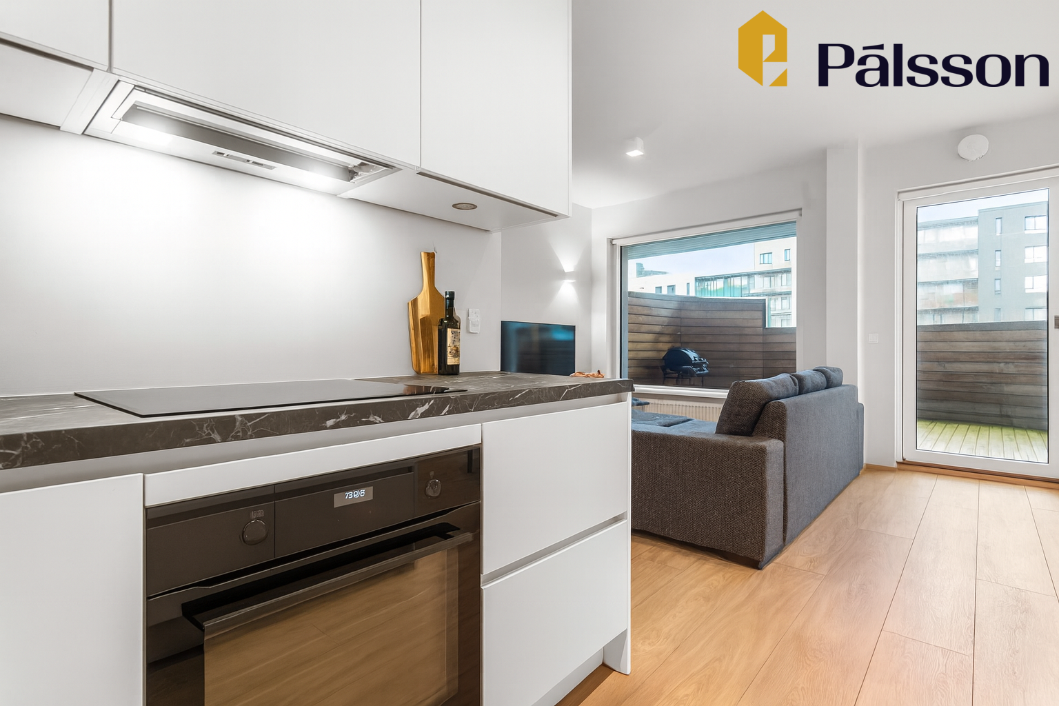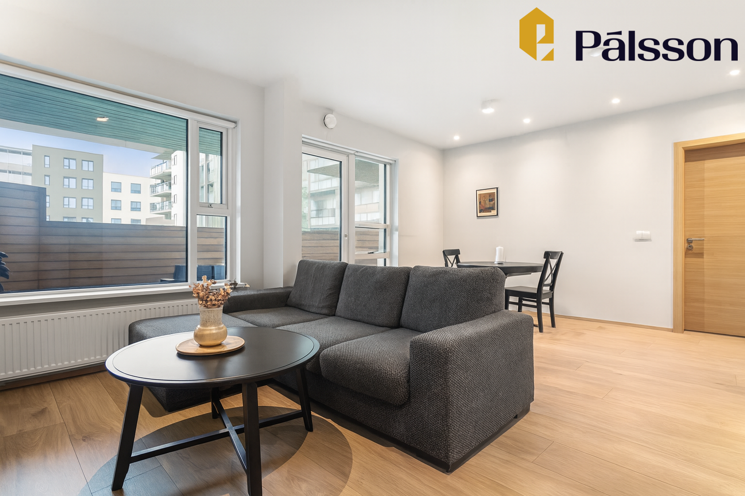 Björt og falleg 2ja herbergja íbúð á jarðhæð með bílstæði í bílageymslu og rúmgóðum suðursólpalli við Smyrilshlíð á HlíðarendaVið Smyrilshlíð á Hlíðarenda stendur björt og vel skipulögð tveggja herbergja íbúð á fyrstu hæð með sérstæði í lokuðum bílakjallara og stórum, afgirtum sólpalli til suðurs. Frábær staðsetning í göngufæri frá Öskjuhlíð, háskólunum og miðbæ Reykjavíkur, með alla helstu þjónustu í næsta nágrenni.