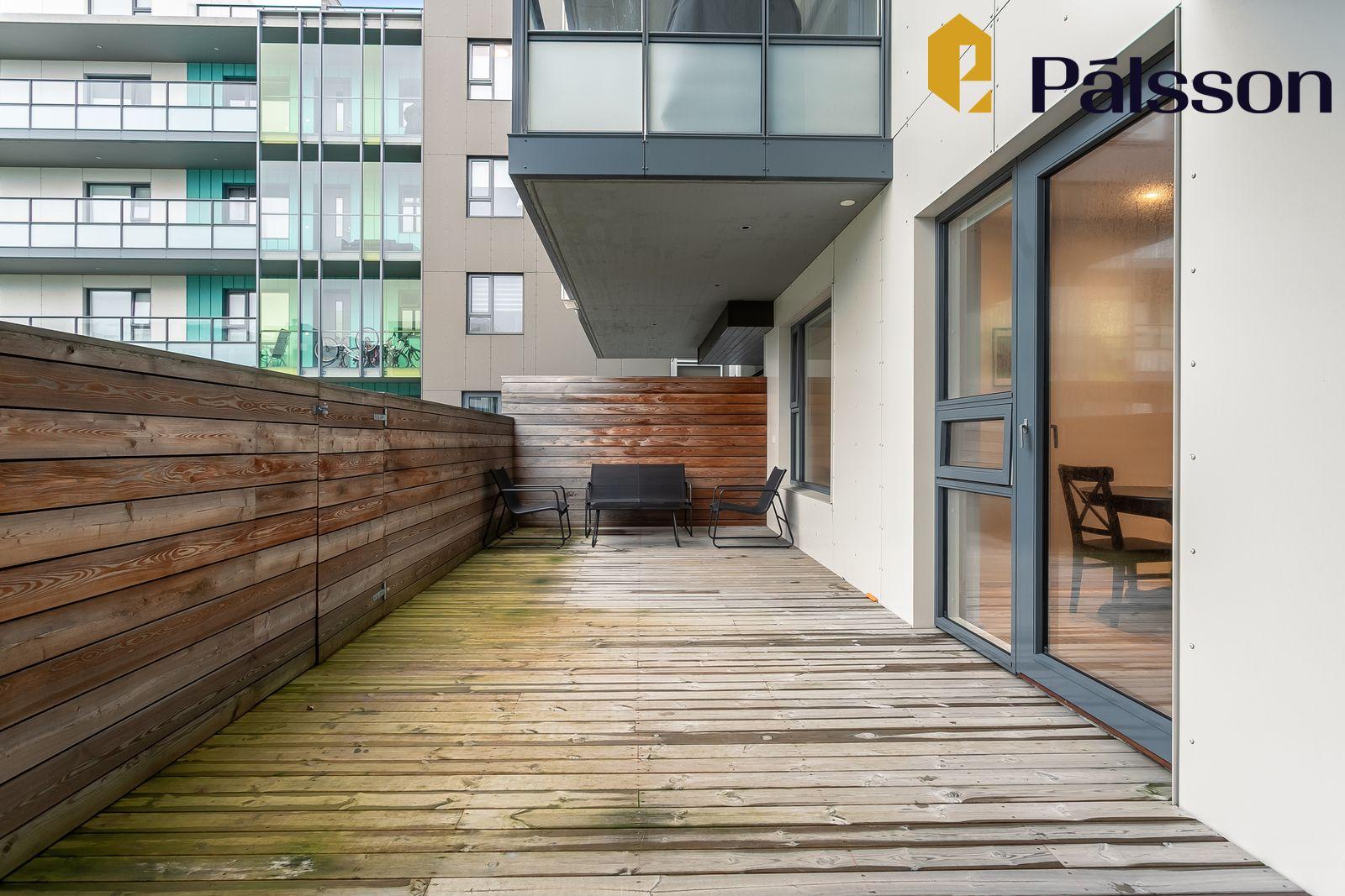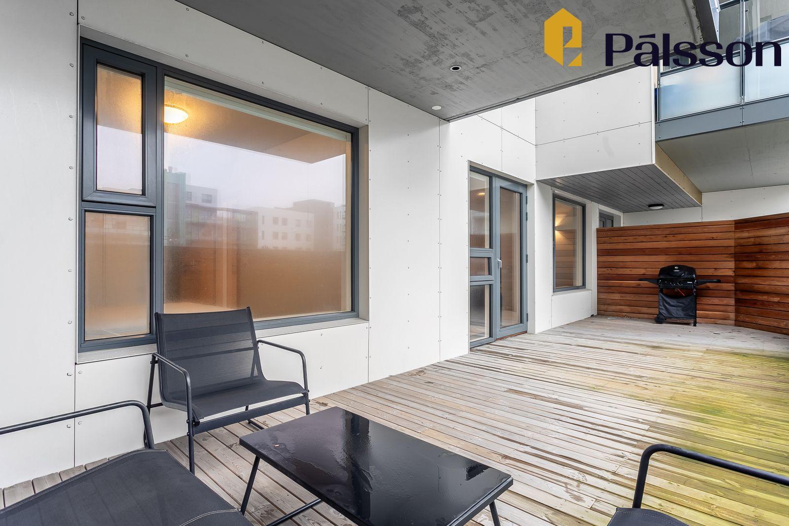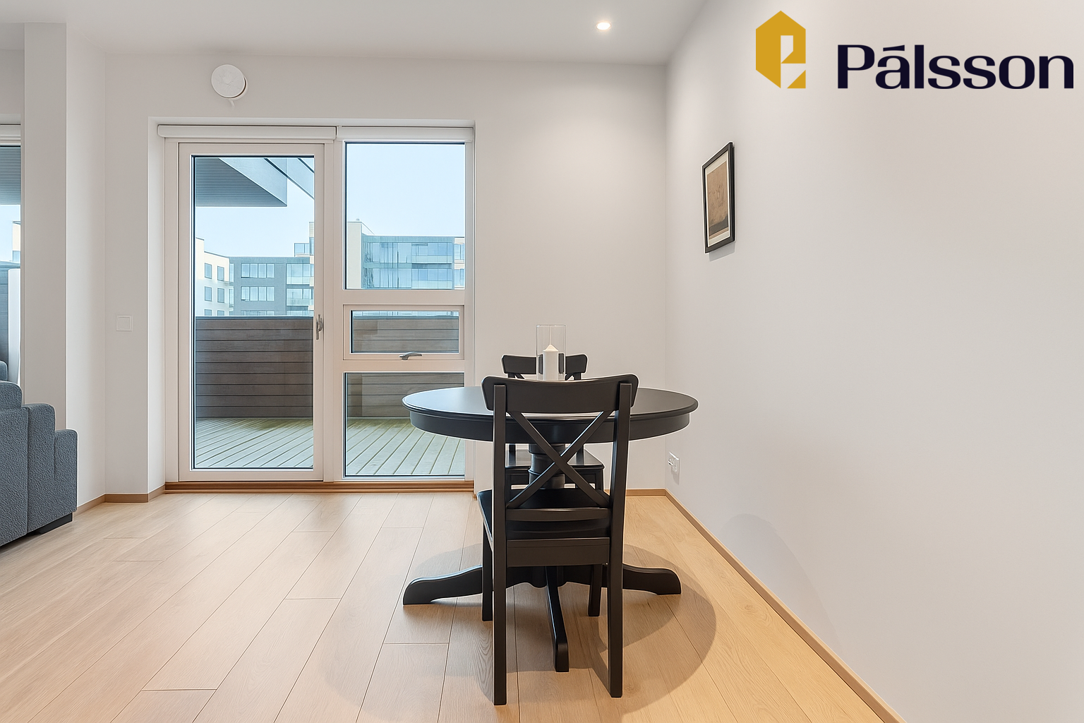Björt og falleg 2ja herbergja íbúð á jarðhæð með bílstæði í bílageymslu og rúmgóðum suðursólpalli við Smyrilshlíð á HlíðarendaVið Smyrilshlíð á Hlíðarenda stendur björt og vel skipulögð tveggja herbergja íbúð á fyrstu hæð með sérstæði í lokuðum bílakjallara og stórum, afgirtum sólpalli til suðurs. Frábær staðsetning í göngufæri frá Öskjuhlíð, háskólunum og miðbæ Reykjavíkur, með alla helstu þjónustu í næsta nágrenni.