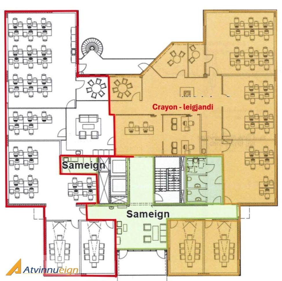 Skrifstofurýmið er einstaklega bjart og býður upp á stórbrotið útsýni, óhindrað til sjávar og fjalla. Frábær staðsetning í einu helsta viðskiptaumhverfi Reykjavíkur með afbragðs almenningssamgöngum, mikið af veitingastöðum og öll þjónusta í nágrenninu. Laust strax. VSK bætist við leiguverð.