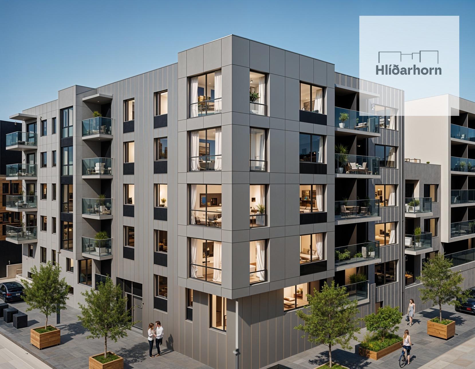 Hlíðarhorn er glæsileg 3-5 hæða nýbygging með 10 stigahúsum sem mynda hring um opinn innri garð. Í Hlíðarhorni verða 195 einstaklega vandaðar og fjölbreyttar íbúðir, 2-5 herbergi að stærð. Hver íbúð er með svölum, þaksvölum eða sérafnotareit í innri garði og hönnuð til að hámarka náttúrulega birtu og nýtingu fermetra. Íbúðirnar eru sérstaklega vandaðar í alla staði, hvað varðar hönnun, innréttingar og tæki. Einungis er unnið með bestu fáanlegu lausnir og efni og umhverfisvernd höfð að leiðarljósi. Hver íbúð hefur sérstæða loftræsingu með varmaendurvinnslu og lögð er sérstök áhersla á hljóðvist. Byggingin er staðsteypt, einangruð og klædd með mismunandi lituðum álklæðningum og við, með gluggum úr ál/við og undir byggingu er bílakjallari með fyrirkomulagi samnýtingarar. Hlíðarhorn er miðsvæðis í Reykjavík, í póstnúmeri 102, á jaðri Hlíðahverfis og Þingholta, við fætur Öskjuhlíðar. Öll helsta þjónusta er því í göngu/hjólafæri, samgöngur, skólar, íþróttaaðstaða, iðandi mannlíf og stórir vinnustaðir.