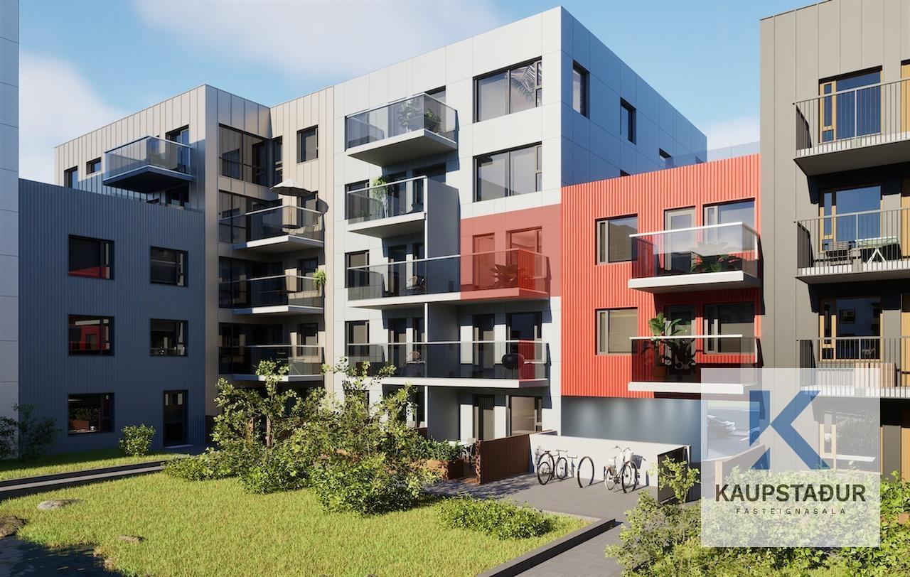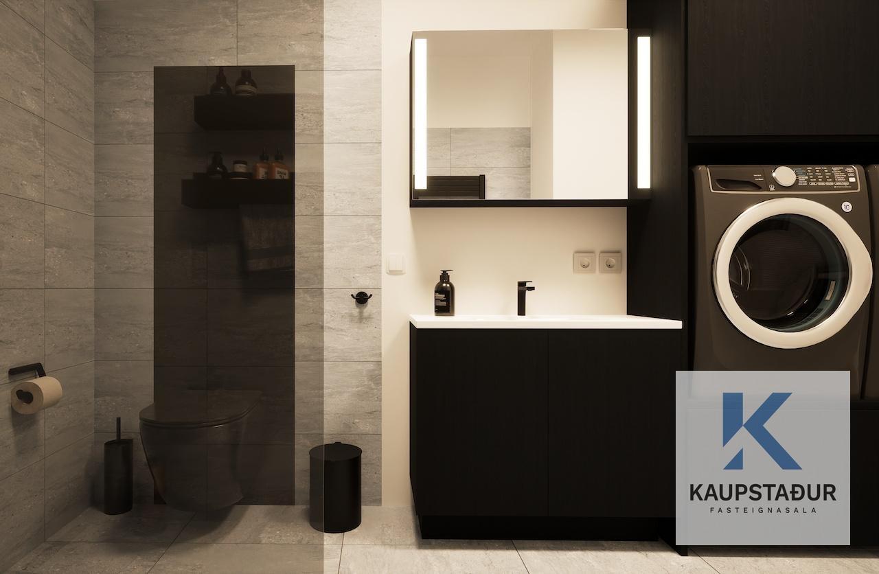 Stórglæsileg og vönduð 4ja herbergja endaíbúð á 3. hæð. Birt stærð er 113,6 fm þar af 11,4 fm geymsla í kjallara. Íbúðin skiptist í anddyri, eldhús með eyju og stofu/borðstofu í opnu rými með útgengi á svalir, 3 svefnherbergi, þar af eitt með útgengi á svalir, baðherbergi og þvottaherbergi. Íbúðin afhendist með hágæða sérsmíðuðum innréttingum frá Nobilia/GKS, raftækjum frá Siemens og Witt í hæsta gæðaflokki, vönduðum ítölskum blöndunartækjum frá Mariner Rubinetterie, og sterku og vönduðu gólfefni frá Álfaborg. Íbúðin er útbúin sér loftræstikerfi með varmaendurvinnslu.