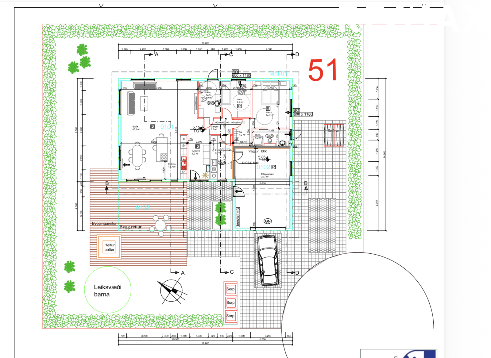 Mögulegt er að útbúa stúdíó íbúð í bílskúrnum, allar lagnir eru til staðar.
