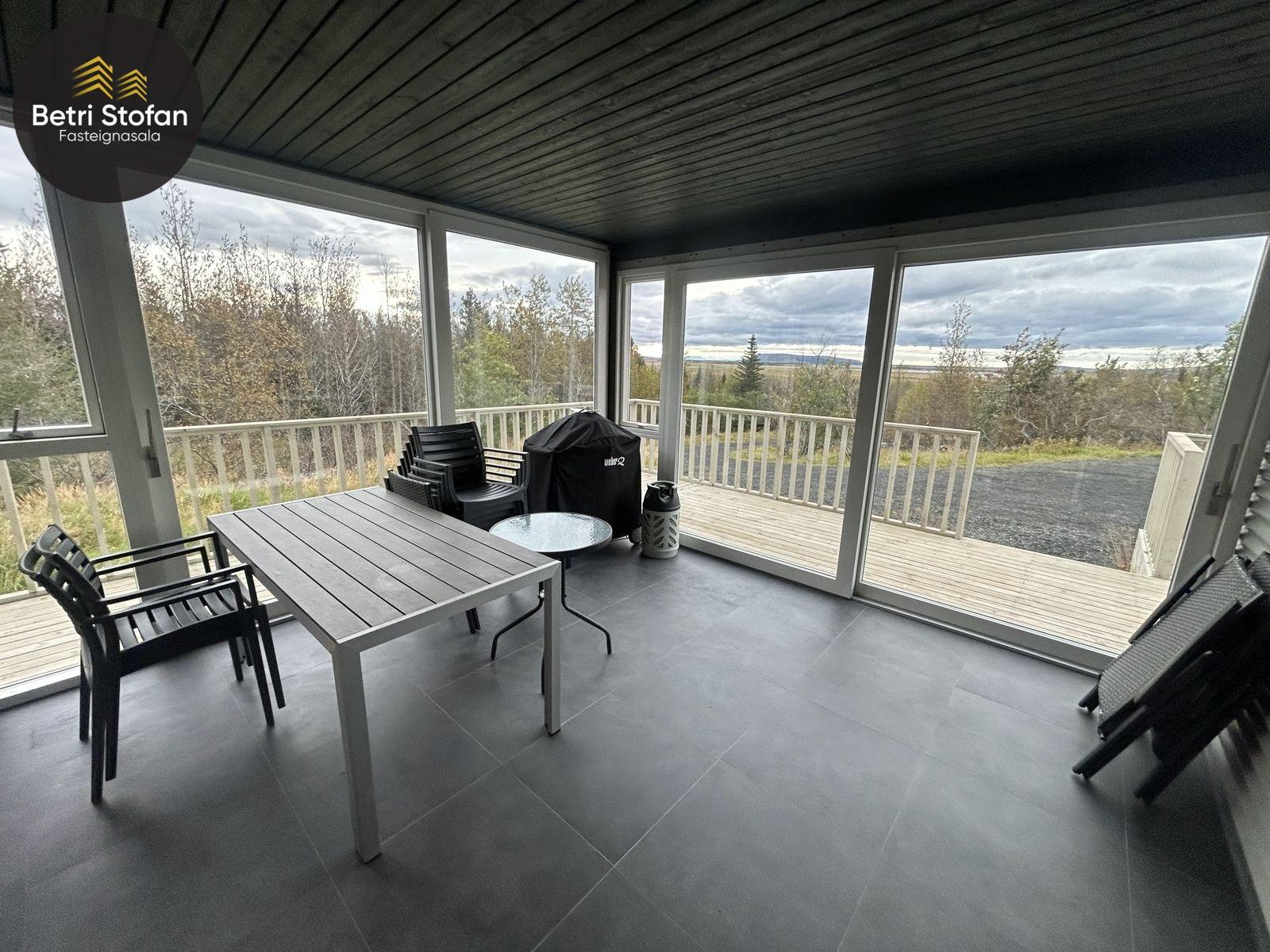 Ægisból, nýjasta húsið er samtals 108 fermetrar, byggt árið 2020, skiptist í 3 svefnherbergi, rúmgóð stofa og eldhús, stofa og borðstofa. Tvö baðherbergi með sturtuaðstöðu. Glæsilegt hús með gólfhita.