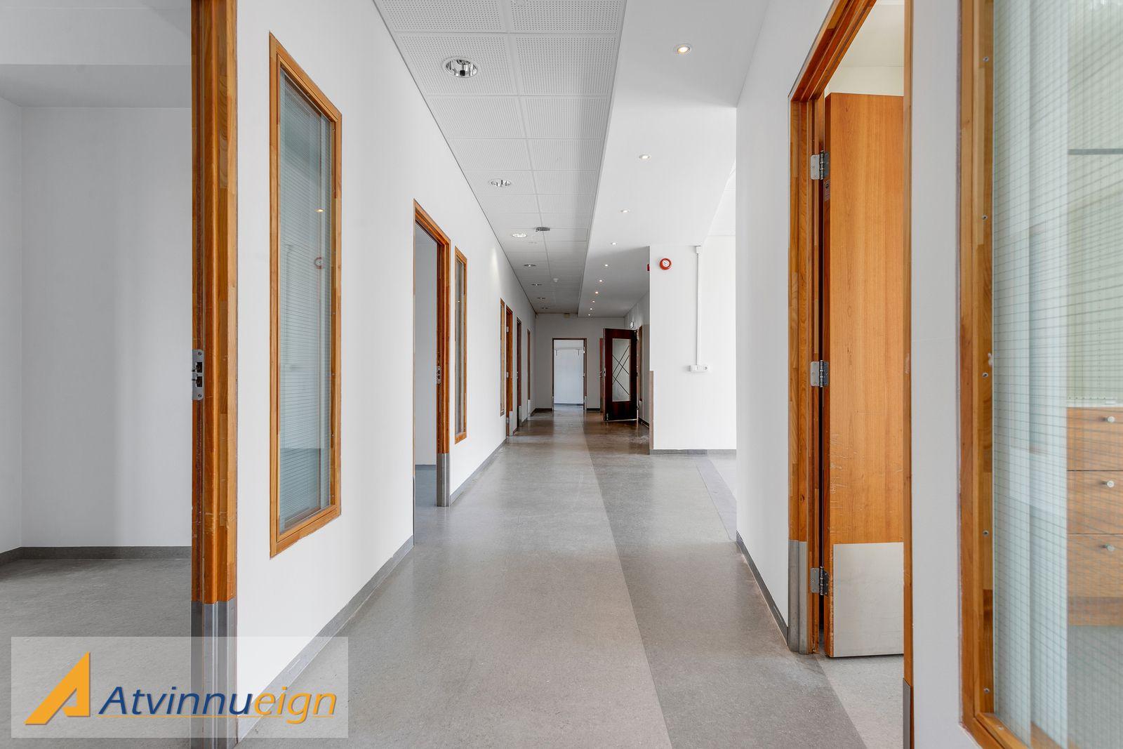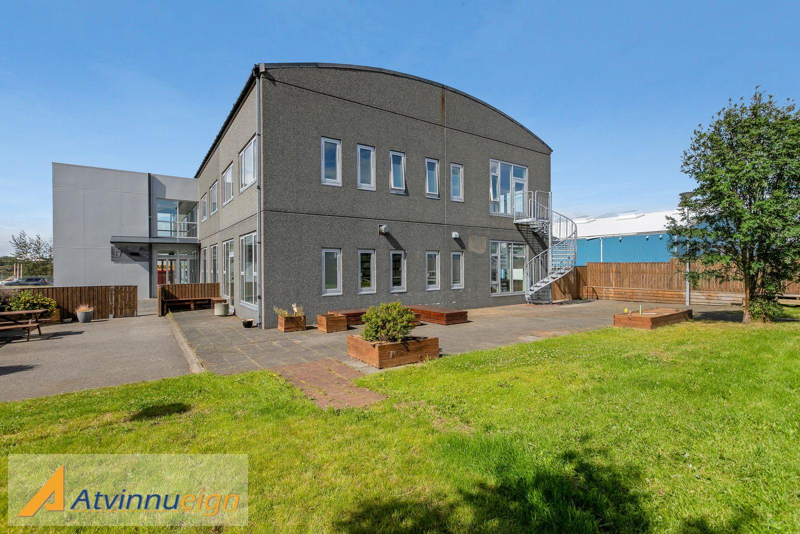 Atvinnueign ehf. kynnir: 957,6 fm heila húseign á tveimur hæðum með lyftu á milli hæða. Eignin hentar undir ýmsa starfsemi þar á meðal t.d. sem höfuðstöðvar fyrirtækis, sem barnaheimili, heilsutengda starfsemi eða sem skrifstofur. Á jarðhæð er eldhús og borstofa og 11 skrifstofur. Á 2. hæð eru þrjú um 40-50 fm vinnurými og 8 vinnurými/skrifstofur með glugga. Húsnæðið hentar afar vel mtt. aðgengis og staðsetningar. Eigandi er tilbúinn að aðlaga húsnæðið að þörfum leigutaka. Á lóðinni er afgirtur garður sem hægt er að stækka eftir þörfum. Fjöldi bílastæða er á malbikuðu bílaplani við húsið. Enginn virðisaukaskattur leggst ofan á húsaleigu.