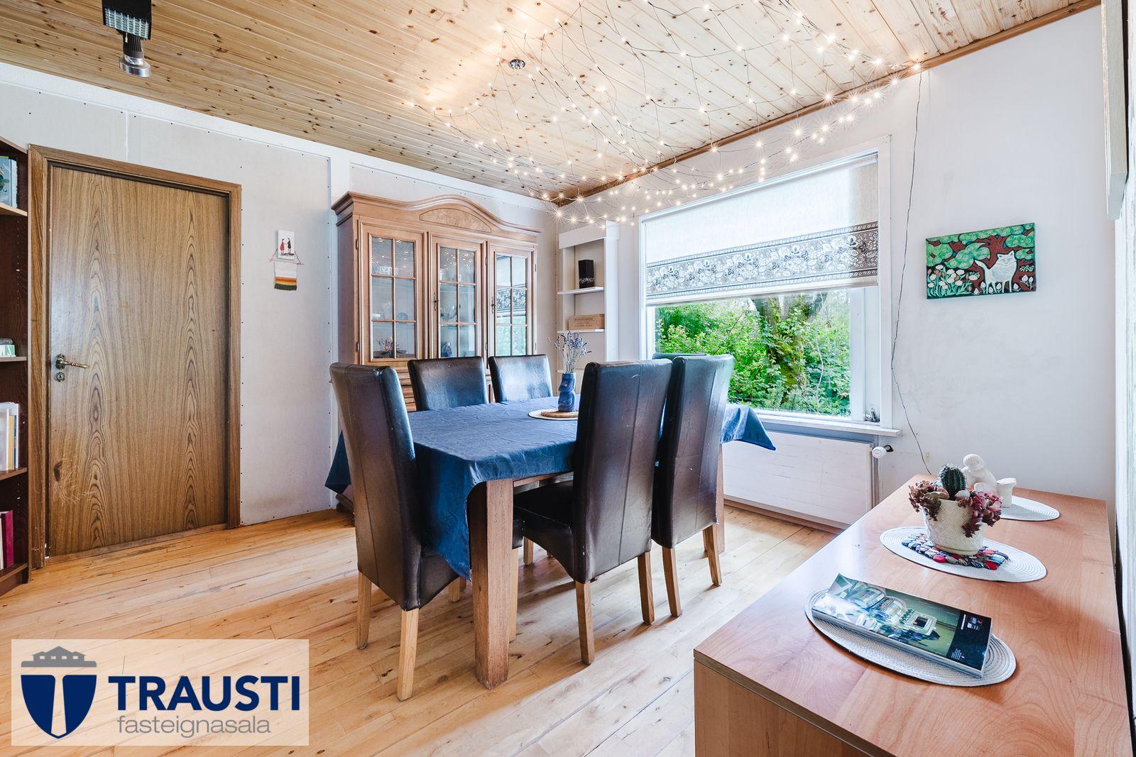 Nánari lýsing eignaEinbýlishúsið er timburhús byggt 1960 og er 164,4 fm samkvæmt skráningu HMS.