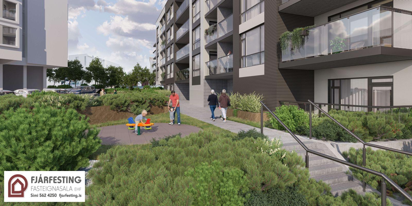 Stæði í lokaðri bílageymslu fylgir.SöluvefurÍbúðin er öll hin glæsilegasta með fallegum innréttingum frá Axis. Vönduð AEG eldhústæki. Baðherbergi verður flísalagt gólf og veggir. Íbúðin er með gólfhita. Rúmgóðar svalir út frá stofu..