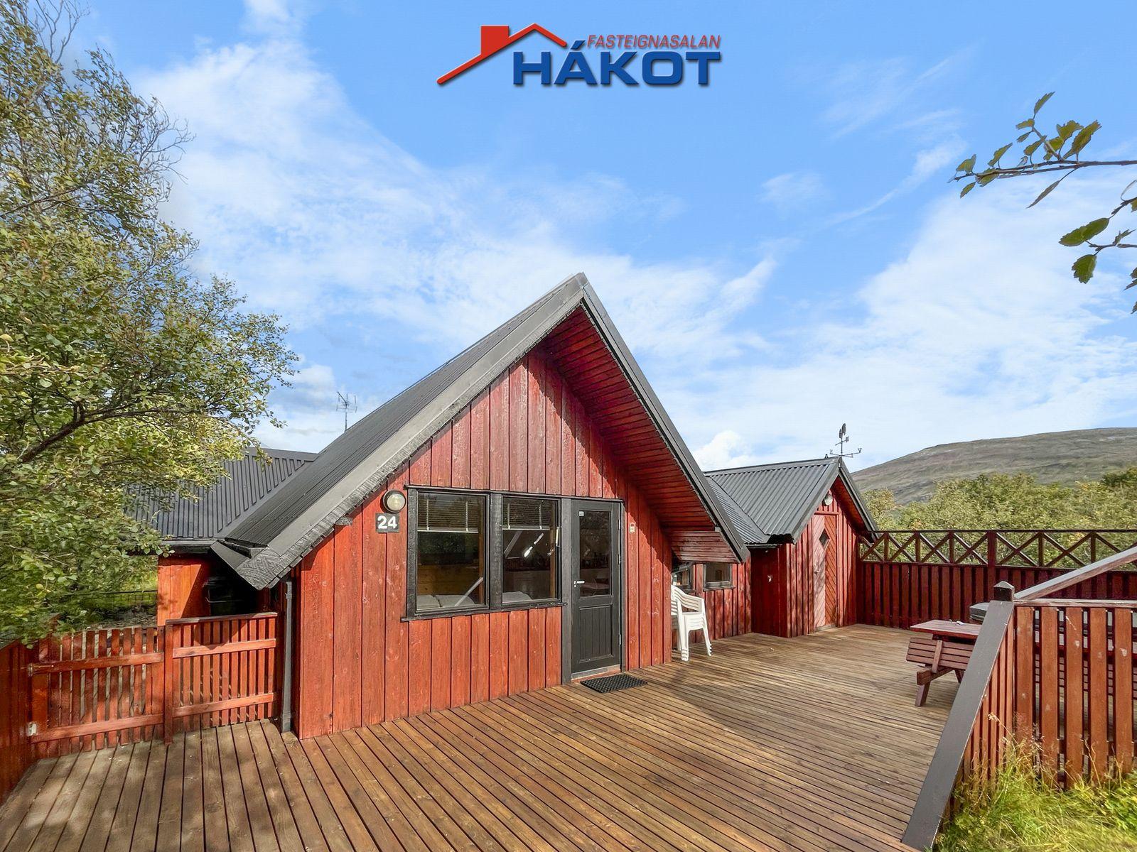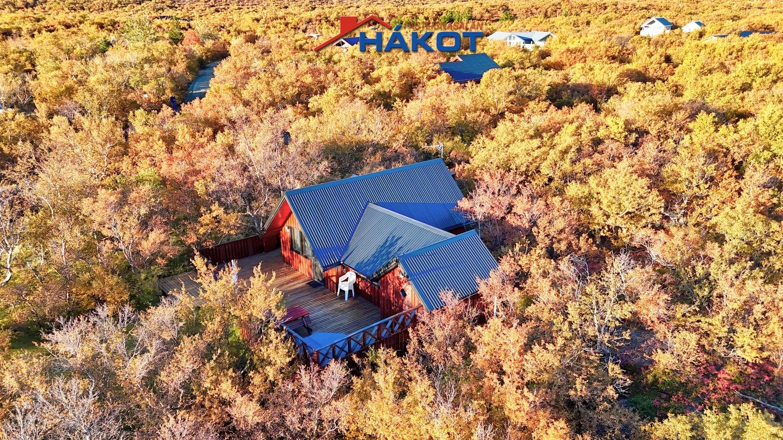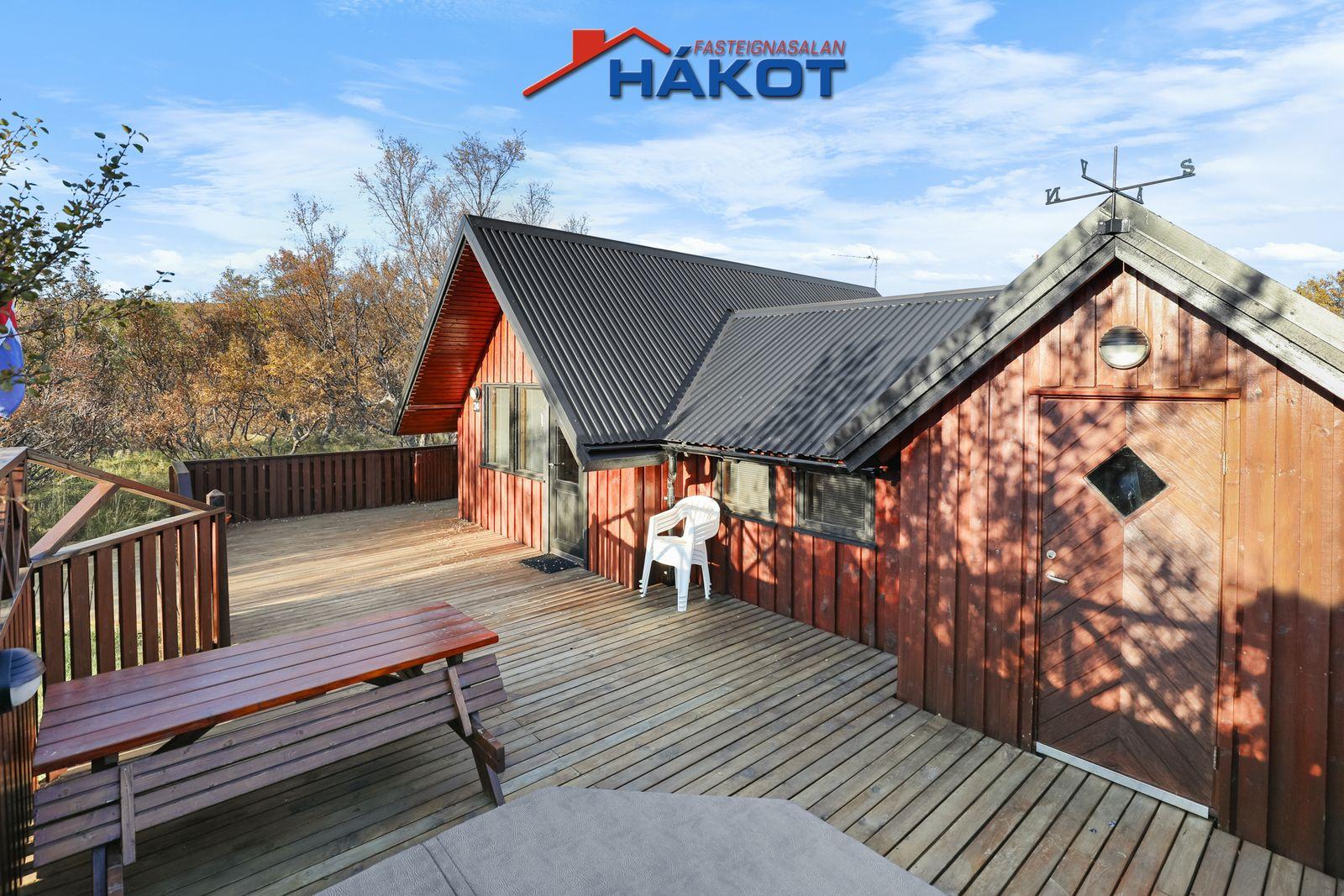 Annað: Bústaðurinn stækkaður 2014. Frístandandi gestahús byggt 2010. Panelklædd loft og niður á veggi. Innihurðar ljós viður. Stór verönd með heitum pott. Kynt með hitaveitu. Allt innbú fylgir bústaðnum (undanskilið persónulegir munir). Staðsett stutt frá sundlaug, hóteli og veitingarstað.