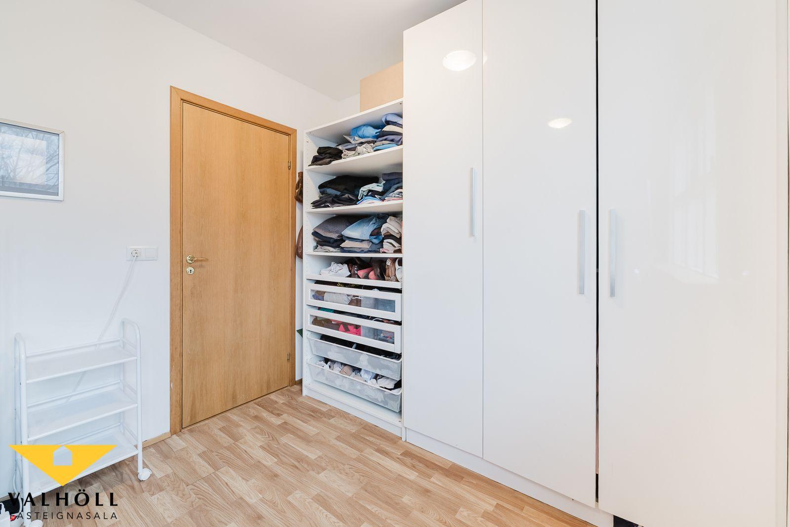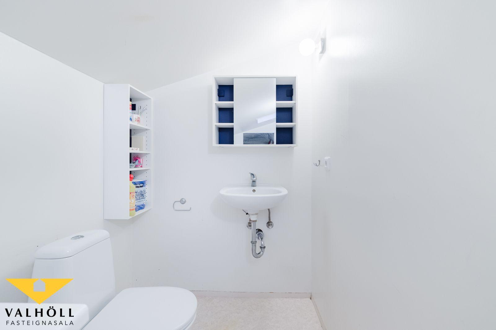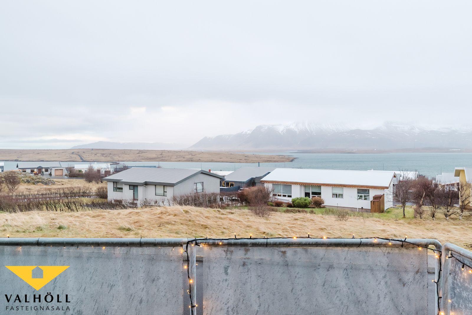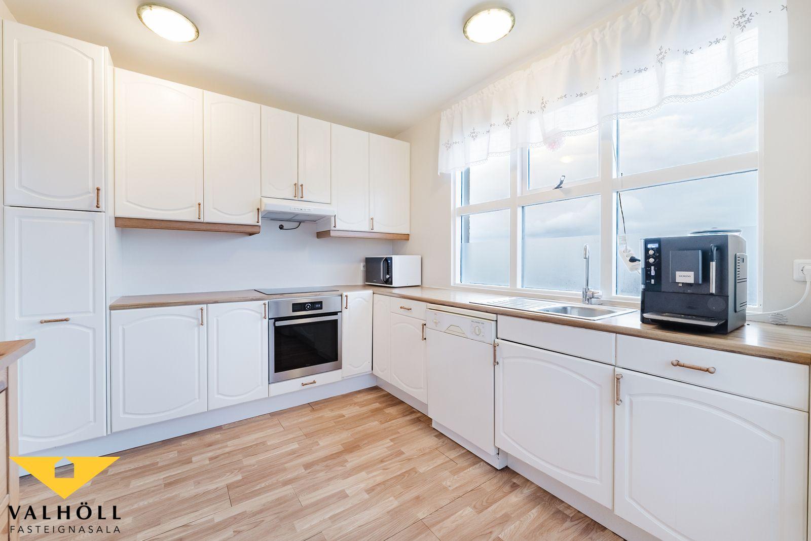 JARÐHÆÐ: Forstofa með hvítum fulninga skáp. Innangengt í bílskúr sem er með hillum og sjálfvirkum opnara. Hol, borðstofa og stofa með útgengt útá góða suður verönd. Geymsluskýli / skúr á endagaflinum, síðan rúmgóður garður. Eldhús með eldri Ikea innréttingu sem komin er á tíma. Hægt að taka niður vegg milli eldhús og borðstofu sem opnar allt rýmið. (hefur verið gert í húsum í lengjunni). Baðherbergi flísalagt með sturtuklefa, upphengdu salerni, innréttingu, handklæðaofni og gólfhita. Rúmgott hjónaherbergi með hvítlökkuðum skápum. Timbrustigi milli hæða úr Límtré. 2.HÆÐ: Gangur. 3 svefnherbergi, skápur í einu þeirra. Úgengt úr einu herberginu á norður svalir með glæsilegu útsýni (Esjan, Akrafjall, Geldinganes, Sundin og fl.) Þvottaherbergi og snyrting í sama herbergi með velux glugga. þar innaf er svo ca 30 fm súðargeymsla. Gólfefni: Flísar á forstofu og baðherbergi. Plastparket á öðrum gólfum. Góð ruslatunnugeymsla við innganginn. Lagt fyrir rafhleðslustöð. Hellulagt bílaplan með hita og alls um 5 bílastæði við húsið og í enda götu.
