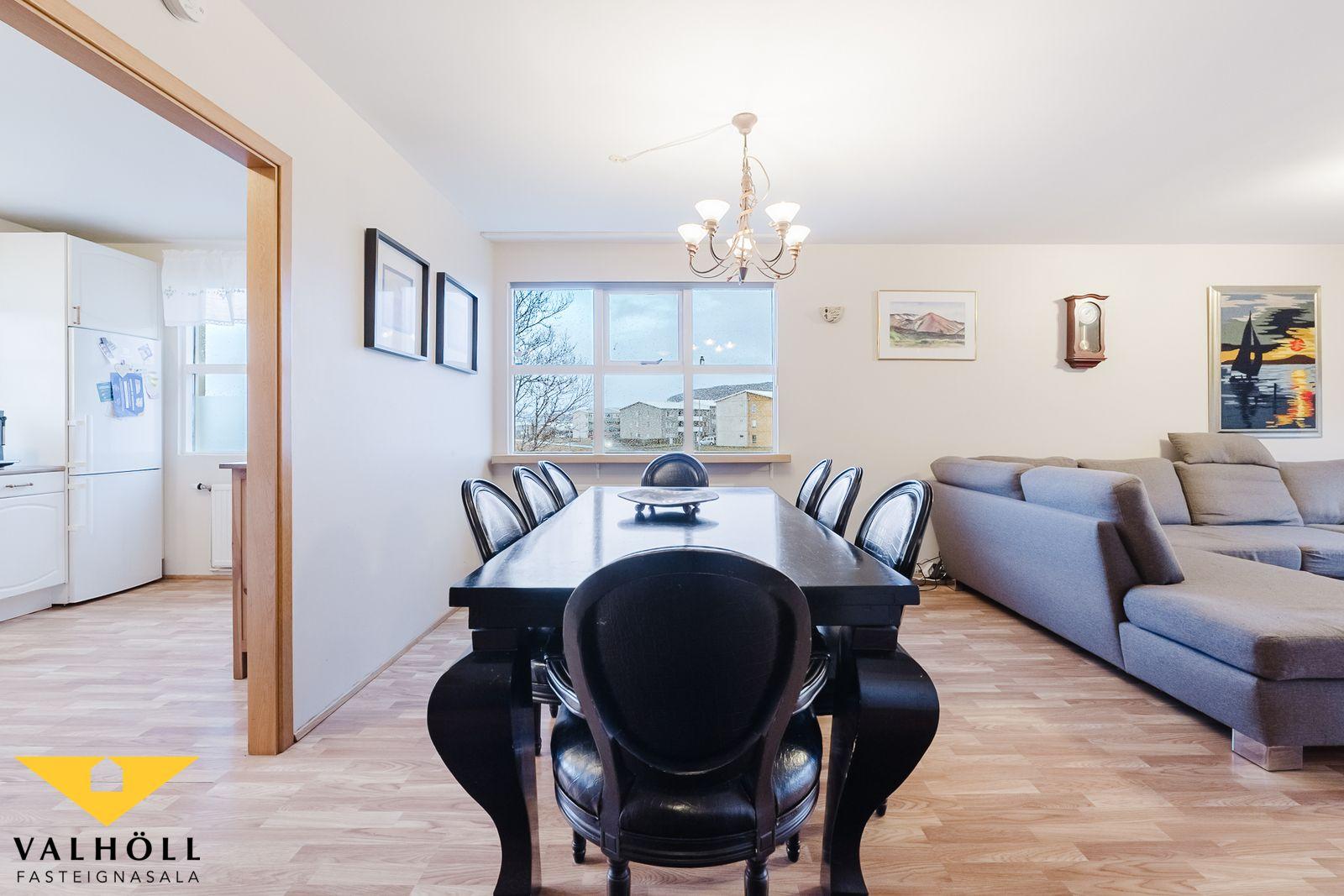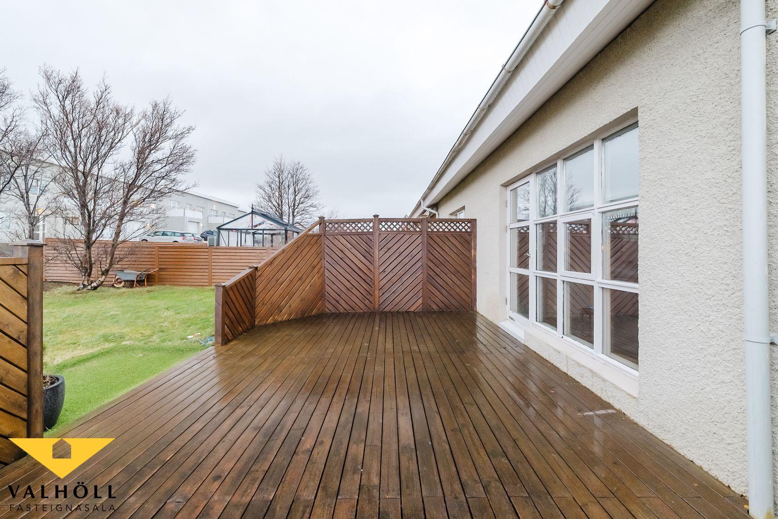 Valhöll fasteignasala, Síðumúla 27, sími:588-4477 og Ingólfur Gissurarson löggiltur Fasteignasali og leigumiðlari, síðan 1989, sími:896-5222, kynna: Einstaklega velskipulagt endaraðhús á tveimur hæðum með innbyggðum bílskúr, 161,3 fm á frábærum stað innst í lokaðri götu við óbyggt svæði. 4 svefnherbergi, góð suður verönd og líka norður svalir með frábæru útsýni yfir Esjuna, Akrafjall, Geldinganes, Sundinn og fl. Húsið er byggt 1997 og er í upprunalegu ástandi að innan. Komin er tími á m.a. eldhús, gólfefni, jafnvel bað og fl. Örstutt í leikskóla, Grunnskóla, Frammhaldsskóla, Egilshöllina og alla verslun+þjónustu í Spönginni. Húsið selst í núverandi ástandi en eins og áður segir er komin tími á endurnýjun einhverra hluta.