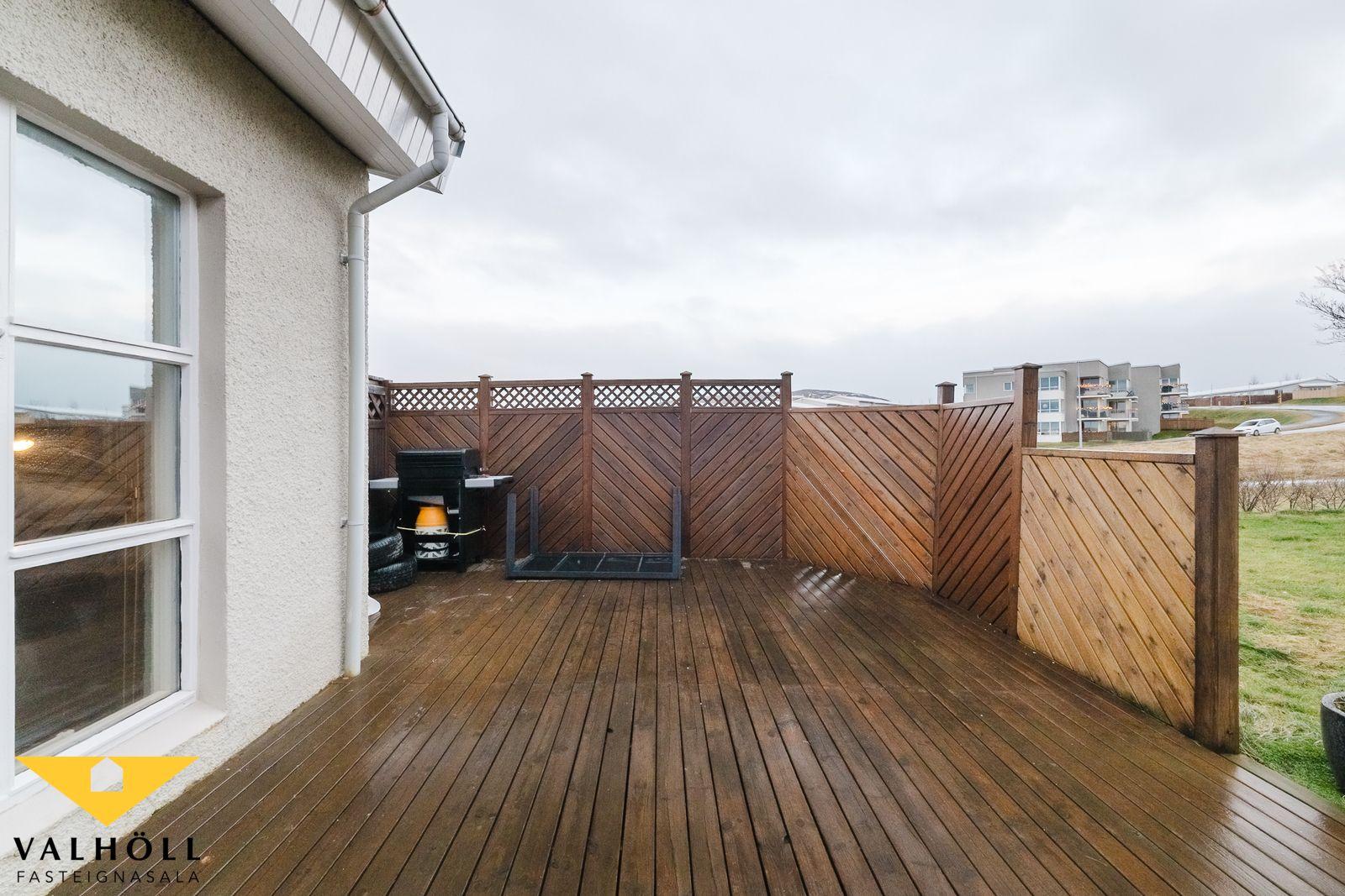 ANNAÐ: Eftirfarandi upplýsingar eru frá seljendum: Húsið er einangrað að utan og hraunað. Þá voru gluggar, þakkantur og þak málað fyrir ca 2,5 árum. Hver og einn eigandi í lengjunni hefur séð um að mála sína eign að utan. Nýleg ca 1 árs gömul bílskúrshurð. Þarf að huga að hurð útá veröndina sunnantil. Sláttuvél í geymsluskúr á lóðinni fylgir.