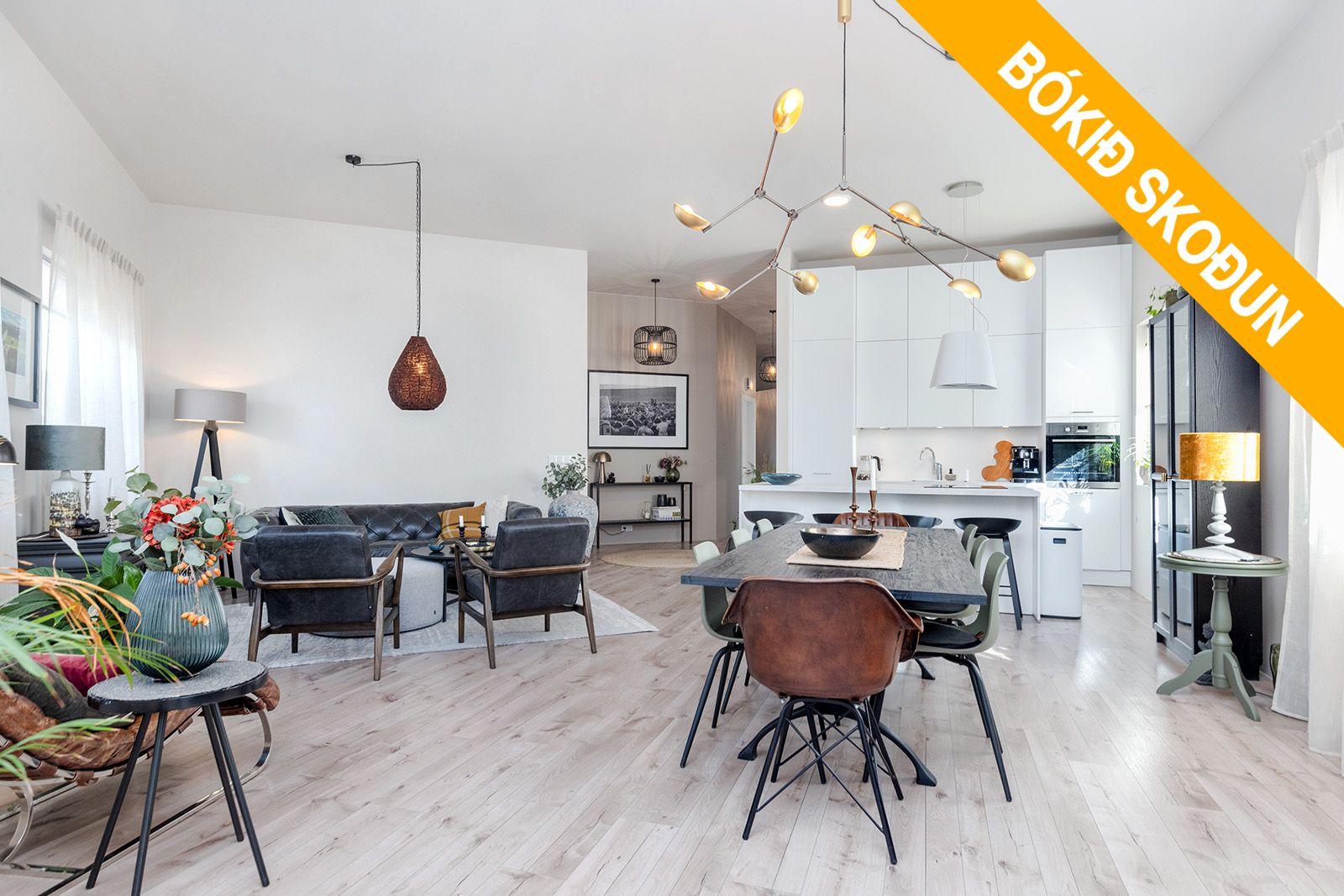 Nánari upplýsingar veitir Gunnar Bergmann Jónsson í síma 839-1600 eða gunnarbergmann@eignamidlun.isNánari lýsing:Gengið er inn í íbúðina af fyrstu hæð, stigalaust aðgengi. Íbúðin er með mikilli lofthæð en það setur mikinn svip á íbúðina. Forstofugangur með skápum. Tvö barnaherbergi, þvottahús og baðherbergi eru á gangi áður en komið er inn í stórt alrými eignarinnar. Parket á öllum gólfum nema votrýmum sem eru flísalögð. Fataskápar í öllum svefnherbergjum.