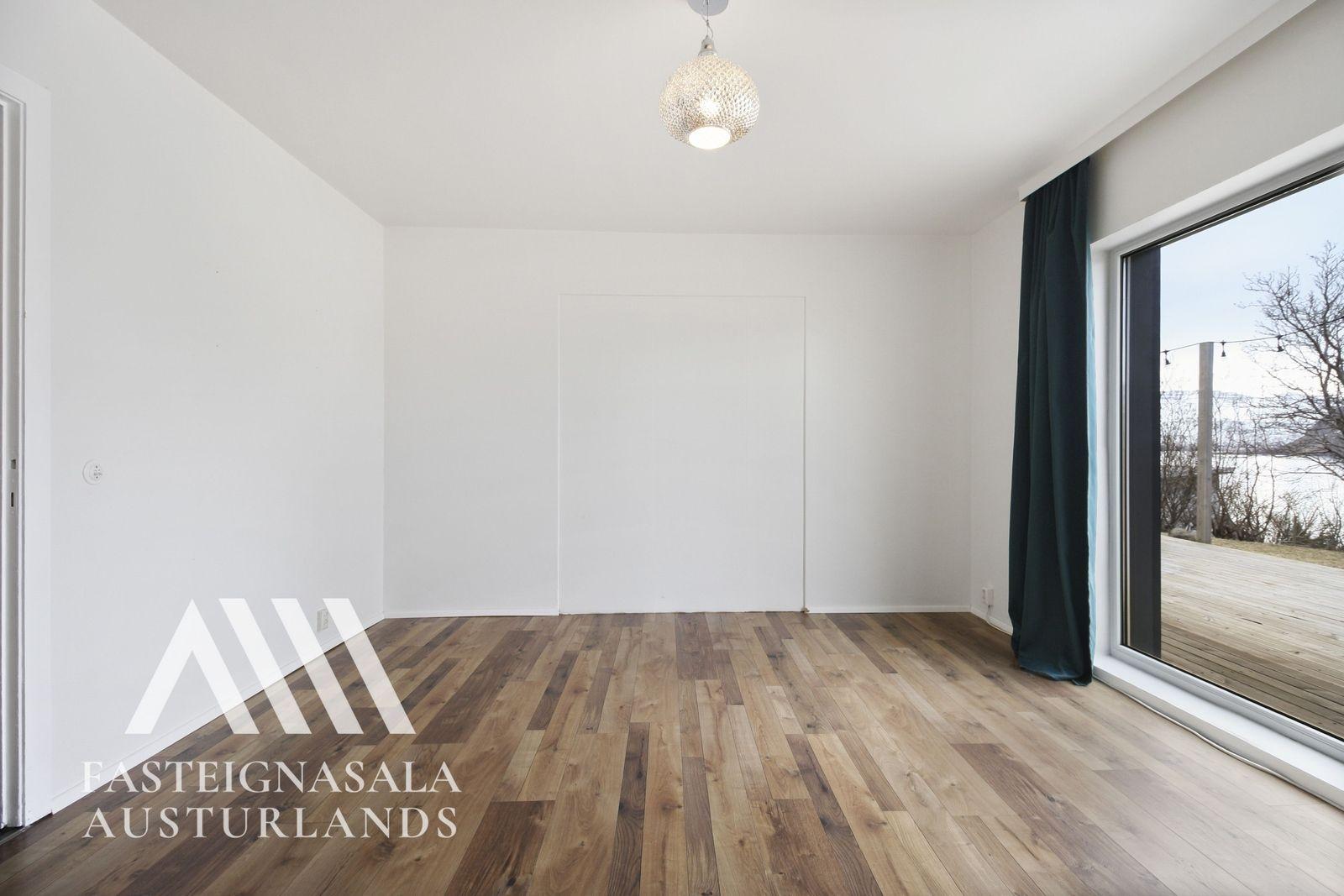 Stofa: Er parketlögð, stór gluggi er í stofunni og hurð út á sólpall að sunnanverðu. Fallegt útsýni yfir fjörðinn.