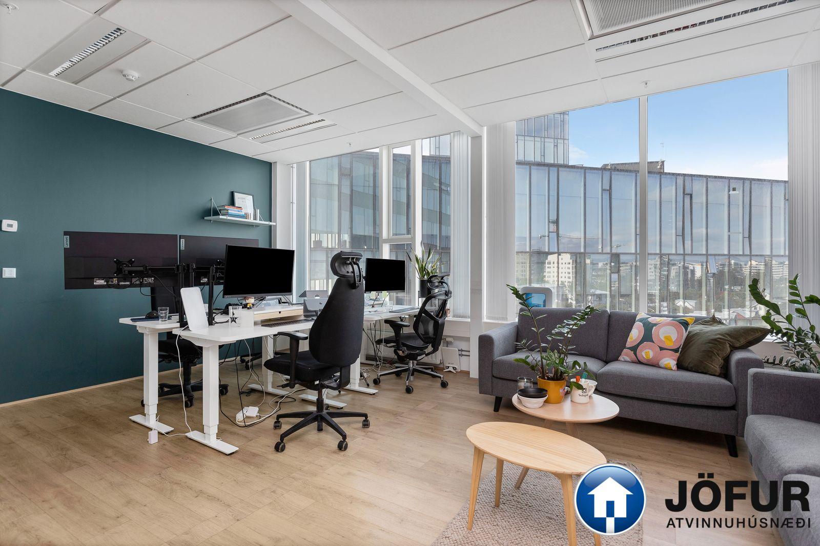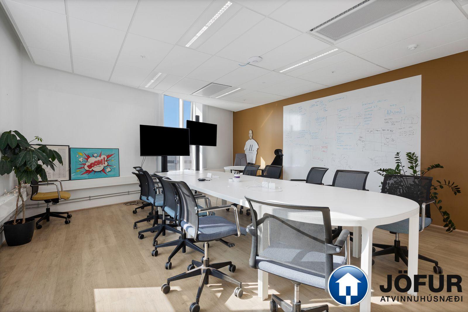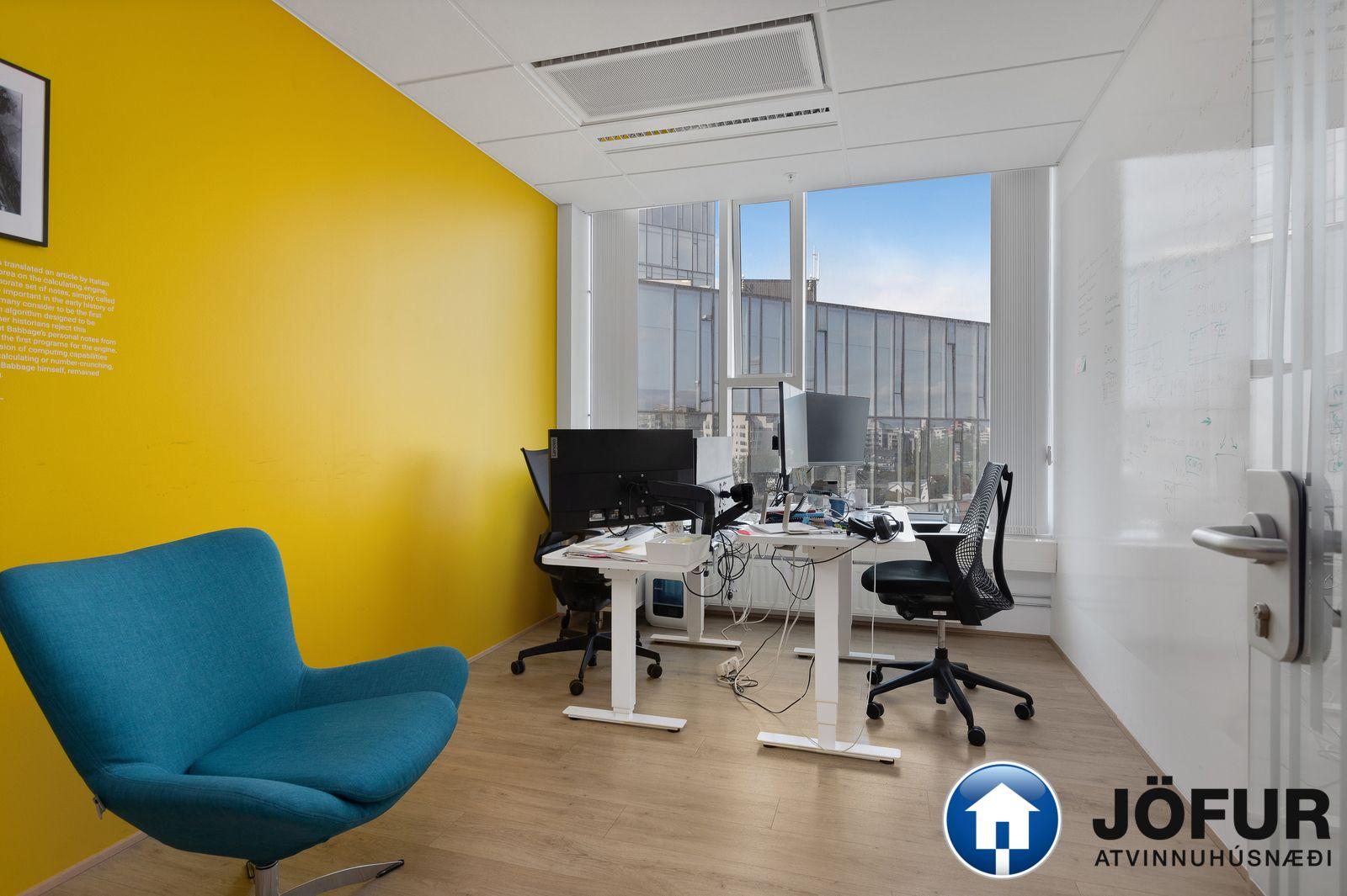 Skiptist upp í ca. 10 lokaðar skrifstofur, 2-3 stór fundaherbergi, um 8 mjög stórar skrifstofur/opin vinnurými, næðisrými, eldhús, snyrtingar. Frábært útsýni yfir borgina, út á sundin blá og til Esjunnar.