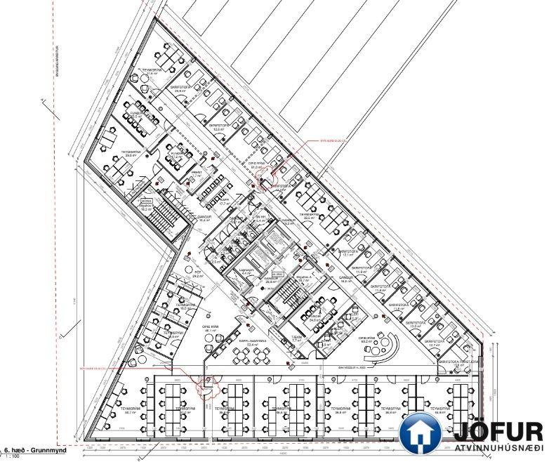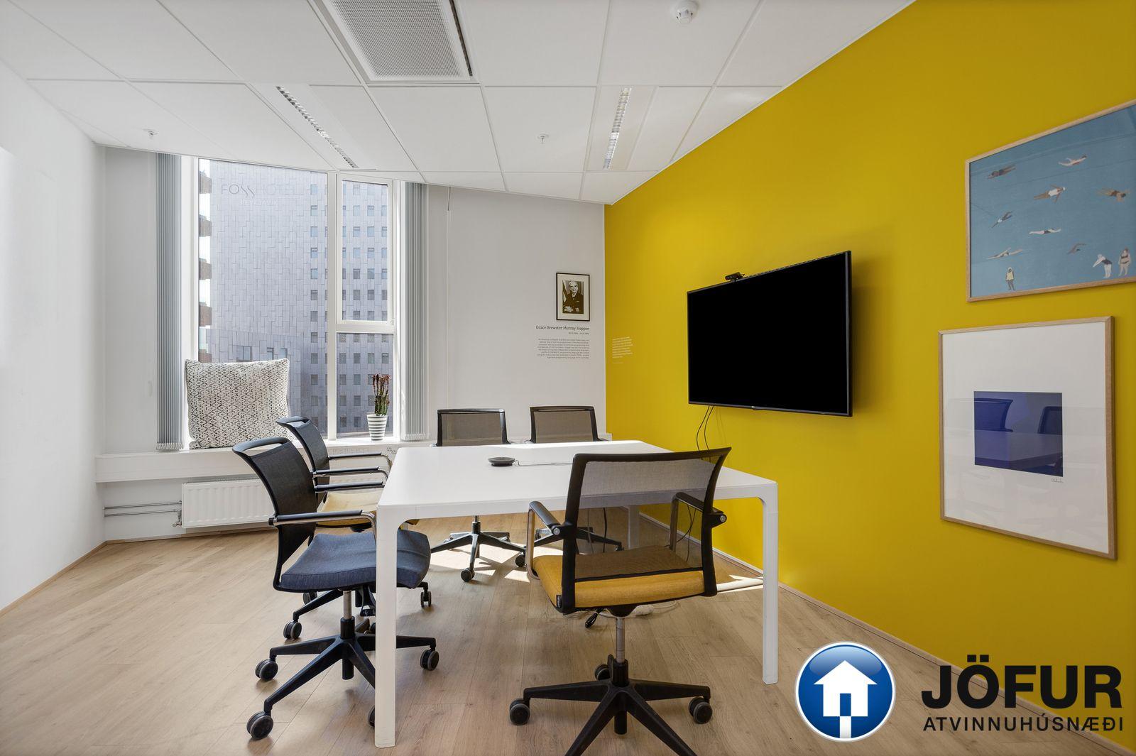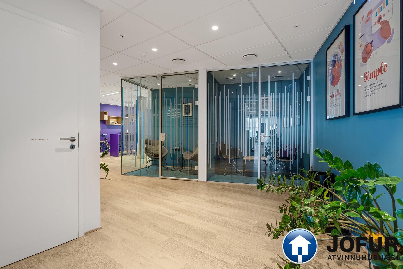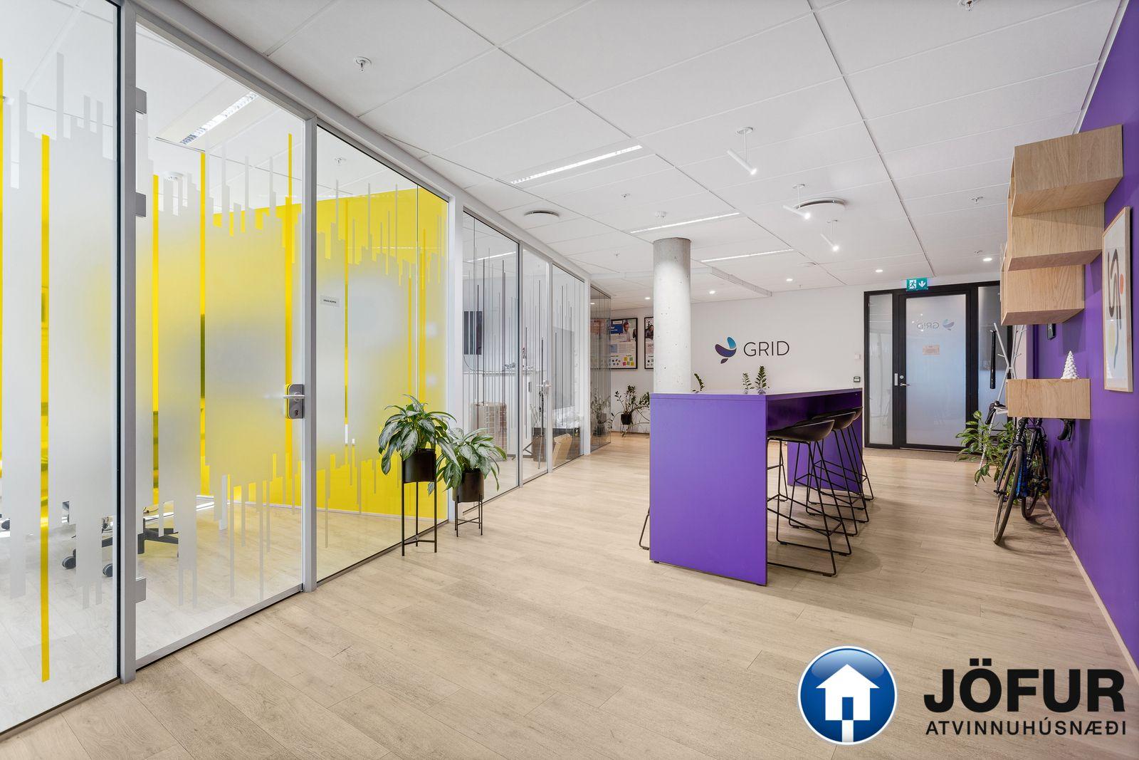 Skiptist upp í ca. 10 lokaðar skrifstofur, 2-3 stór fundaherbergi, um 8 mjög stórar skrifstofur/opin vinnurými, næðisrými, eldhús, snyrtingar. Frábært útsýni yfir borgina, út á sundin blá og til Esjunnar.