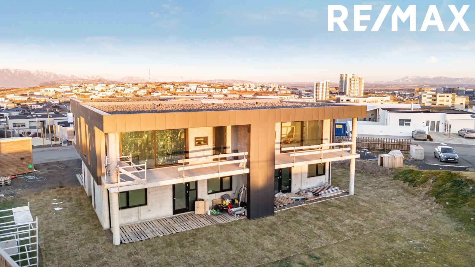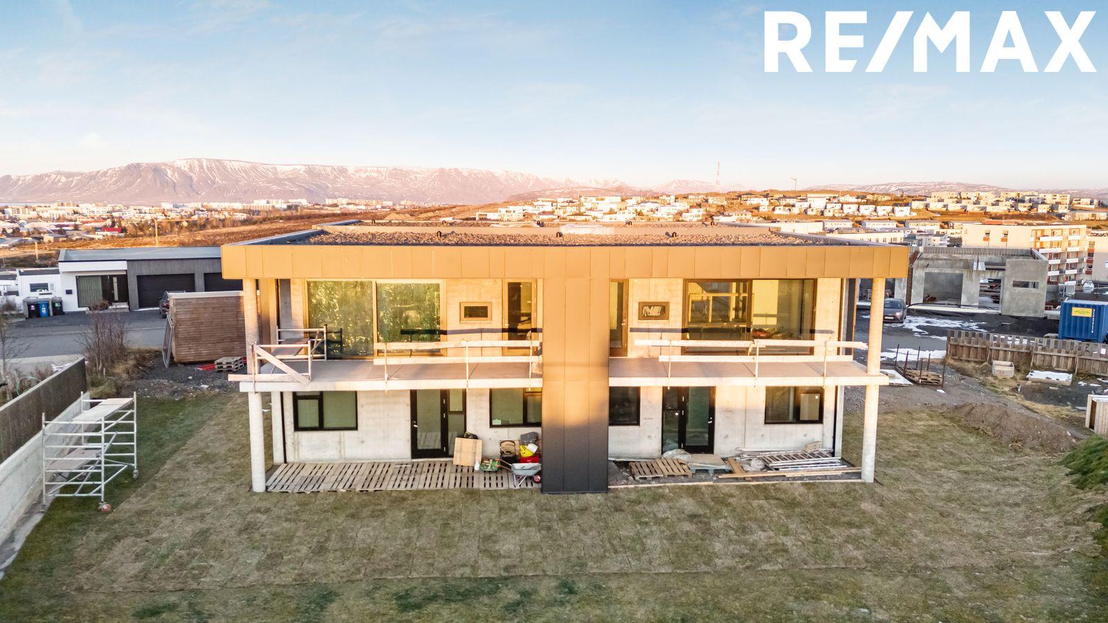 RE/MAX og Stefán Jarl kynna til sölu: Nýtt og vandað parhús á útsýnisstað við Akrakór 5A, 203 Kópavogi. Um er að ræða staðsteypt 220,6 fm glæsilegt parhús með sjónsteypuveggjum að hluta til að innan og að utan. Efri hæð er klædd og einangruð að utan að hluta með vandaðri 2 mm álklæðningu í Deep dark grey lit.
