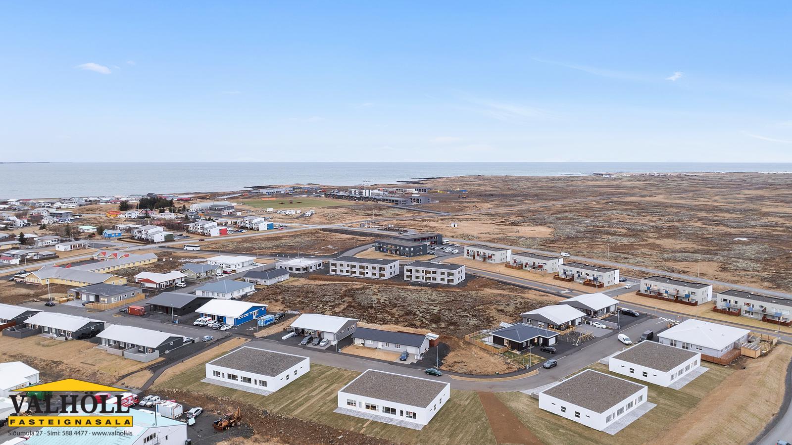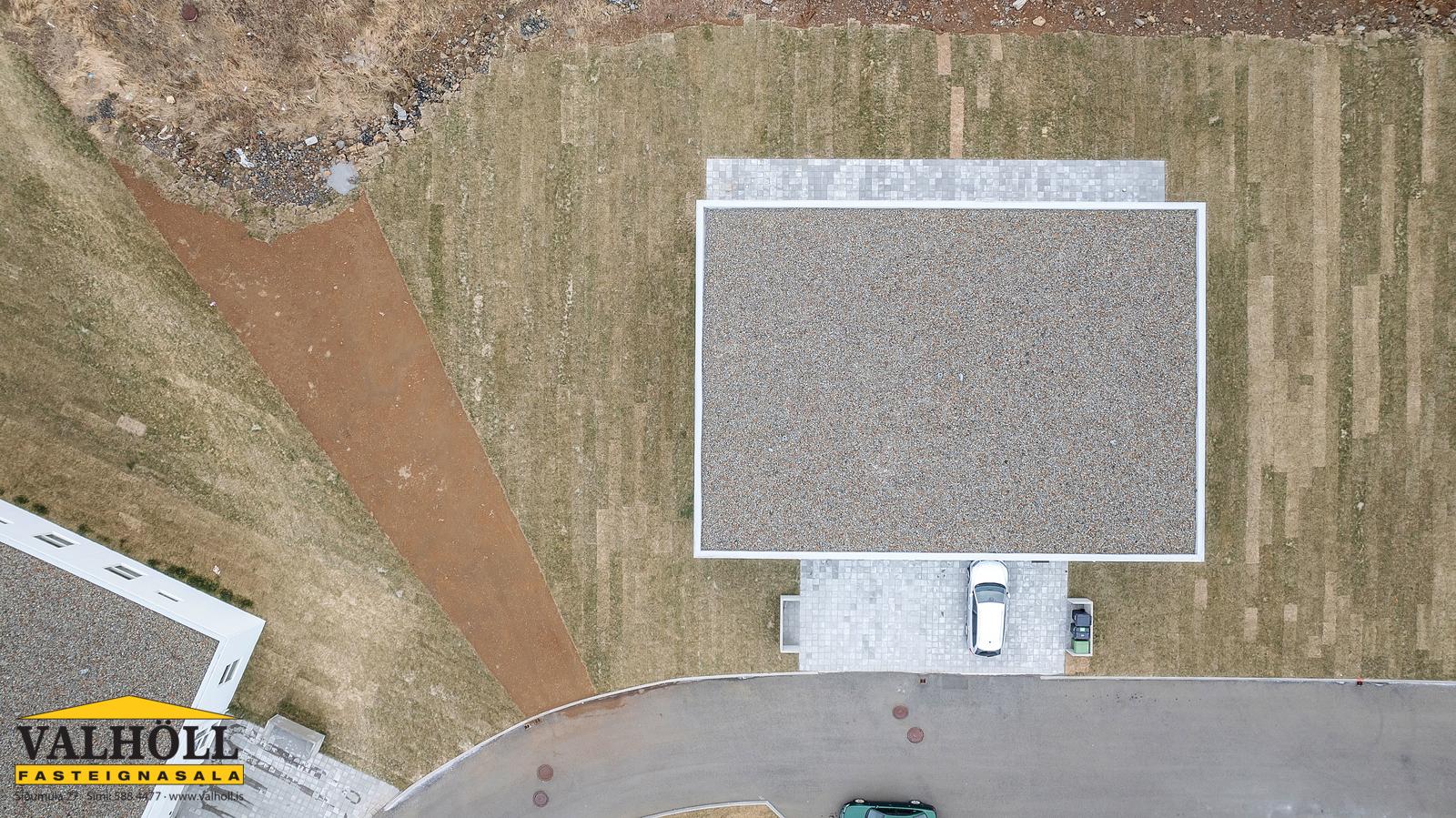 Lóð: hellulagt bílastæði fyrir framan hús með hitalögn. Fyrir aftan hús er hellulögð verönd. Að öðru leyti er lóðin tyrfð.