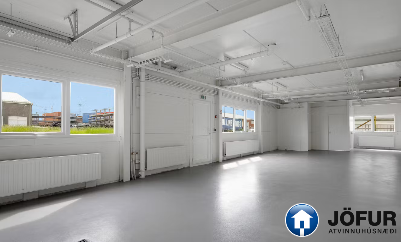 Um er að ræða endabil. Að iðnaðarrýminu er hefðbundin bílskúrshurð og lofthæð bilsins er tæplegir þrír metrar. Við leiguverð bætist virðisaukaskattur.