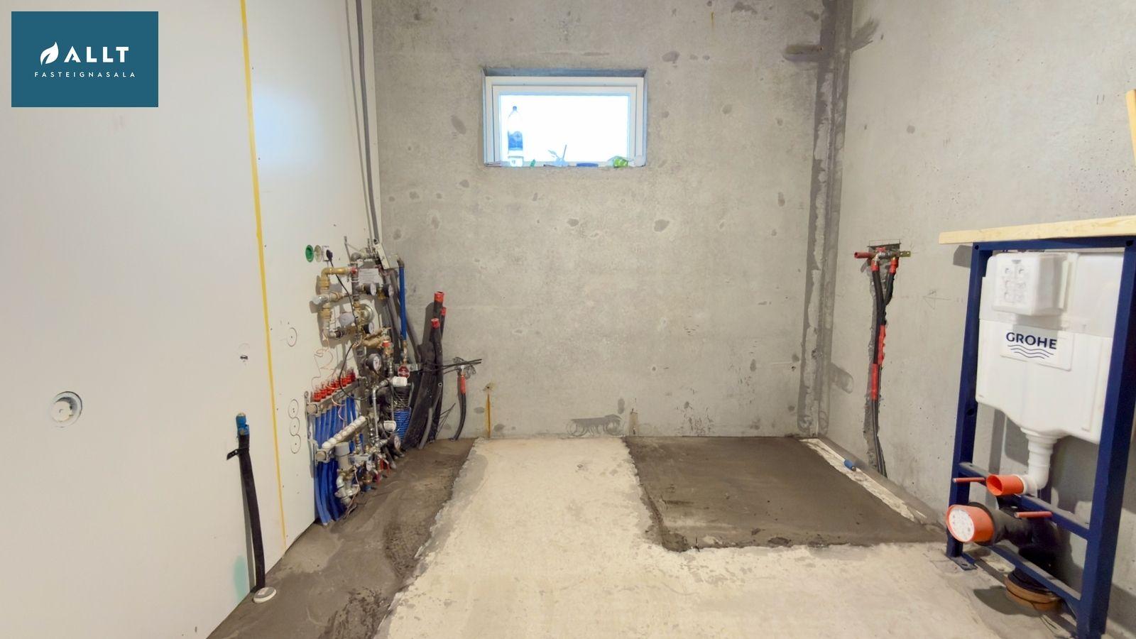 nýtanlegt sem íverurými.Húsið er hitað með gólfhita sem lagður er í steypta botnplötu. Innfelld LED lýsing er víðast hvar og gólfhitastýring er í hverju rými. Loftræsting er í baðherbergi, þvottarými, geymslu og eldhúsi.
