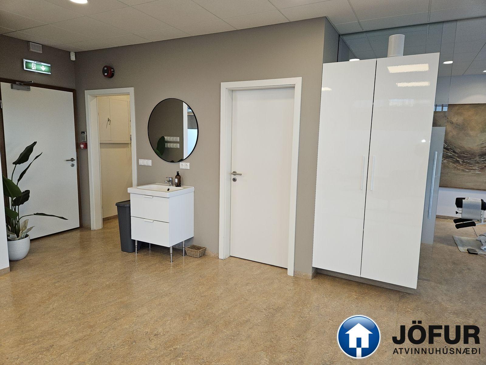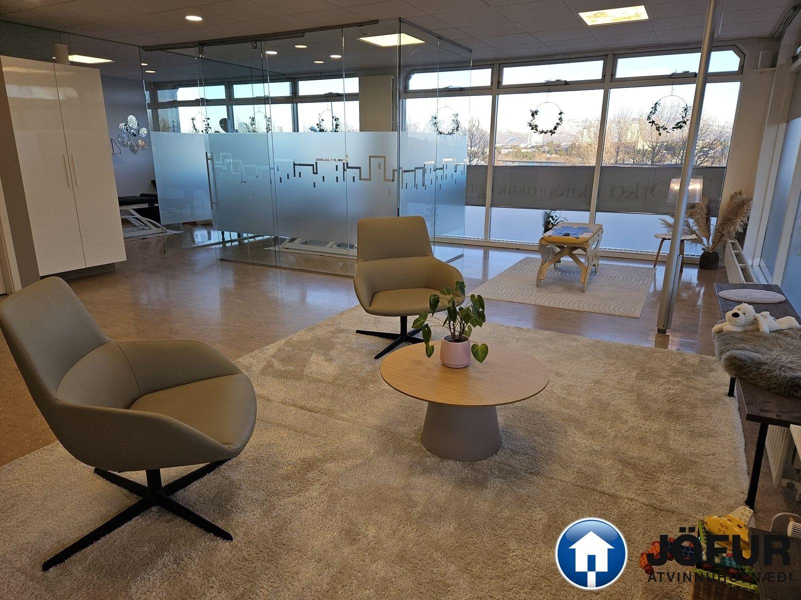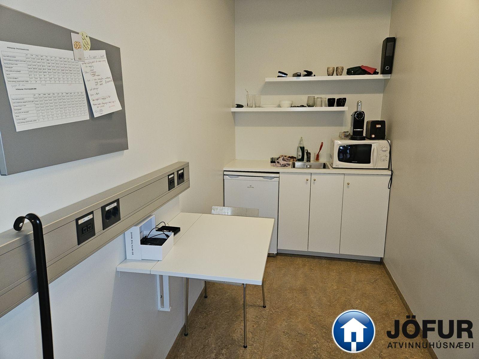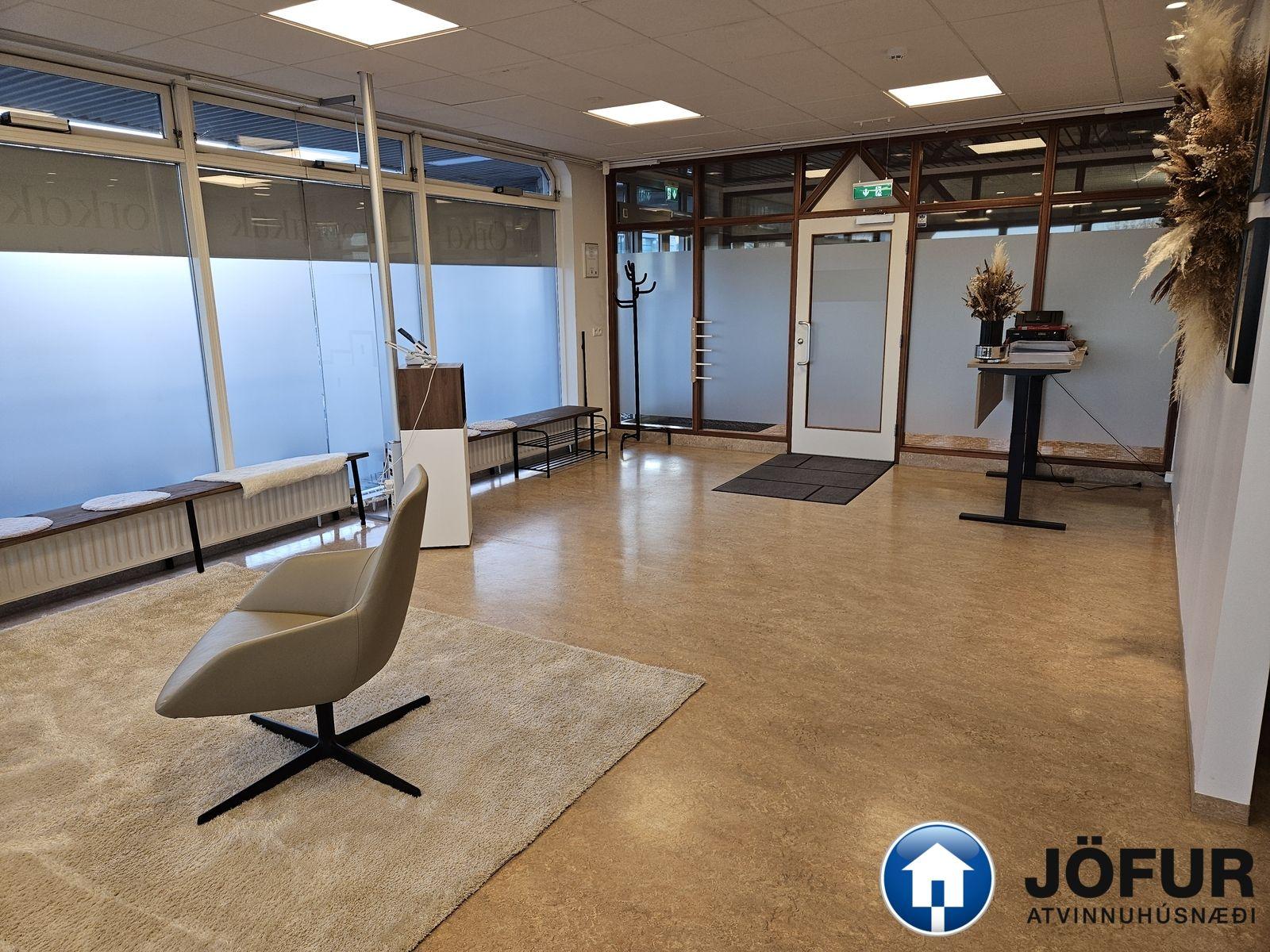Nánari lýsing: Húsnæðið er að stórum hluta opið vinnurými, eitt lokað fundarherbergi með glervegg, afstúkuð kaffiaðstaða með innréttingu ásamt Wc. Kerfisloft og lýsing í loftum. Fallegt útsýni í átt að Laugardal og Esju. VSK leggst við leigufjárhæðina.