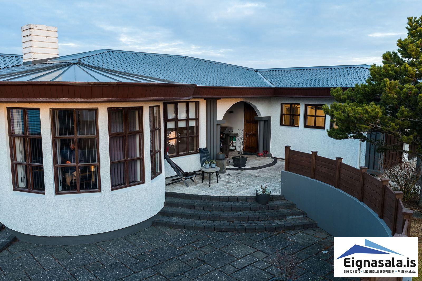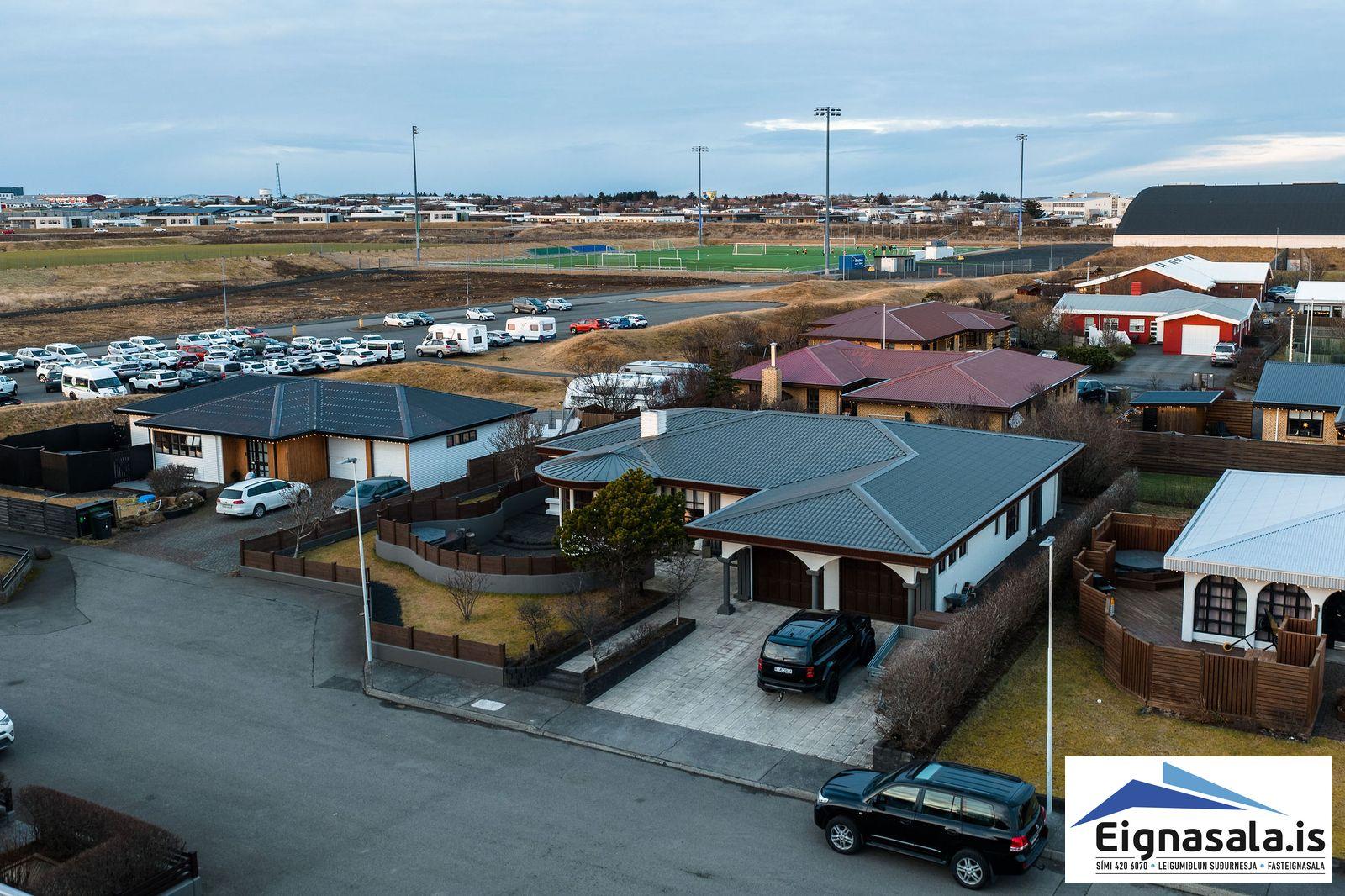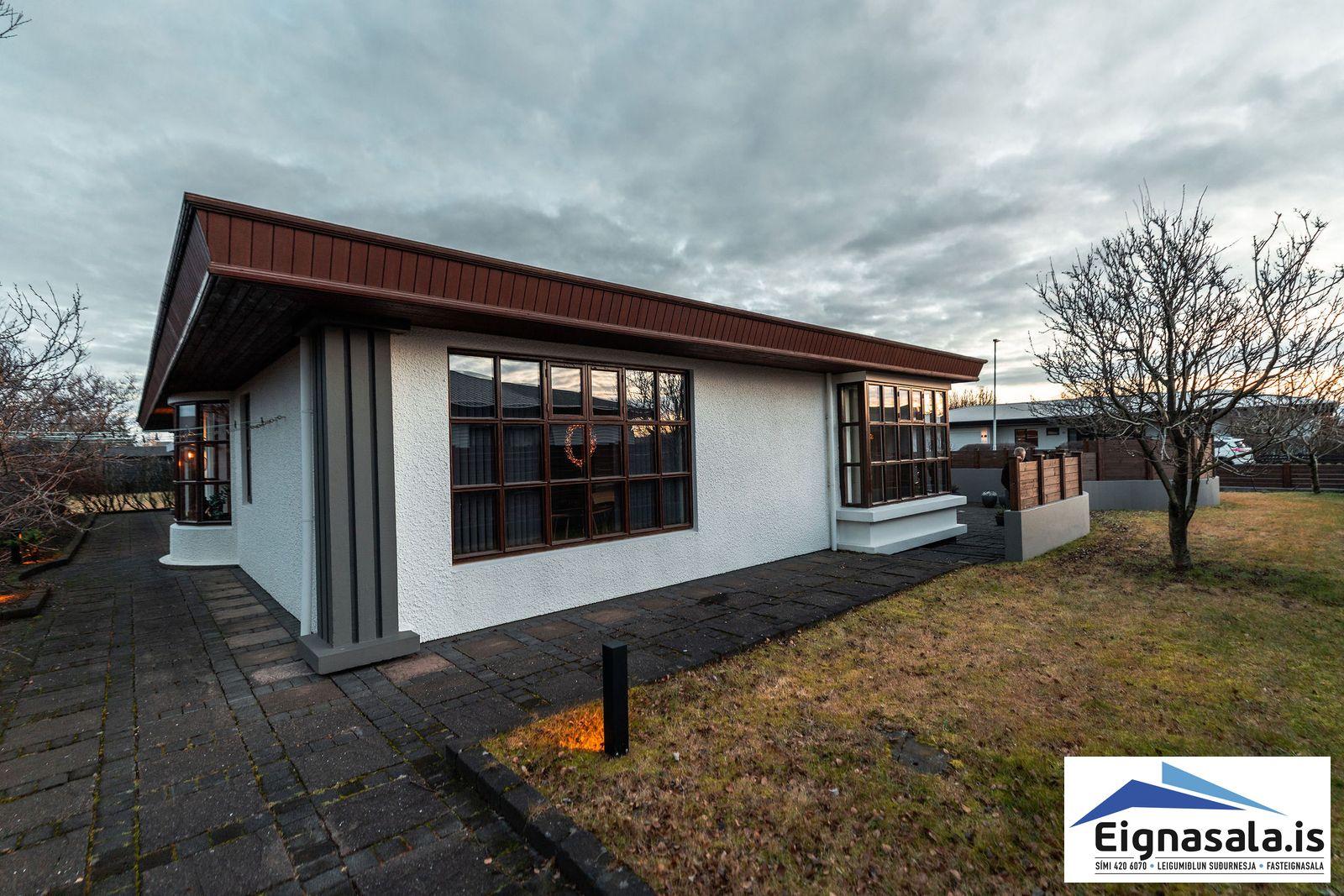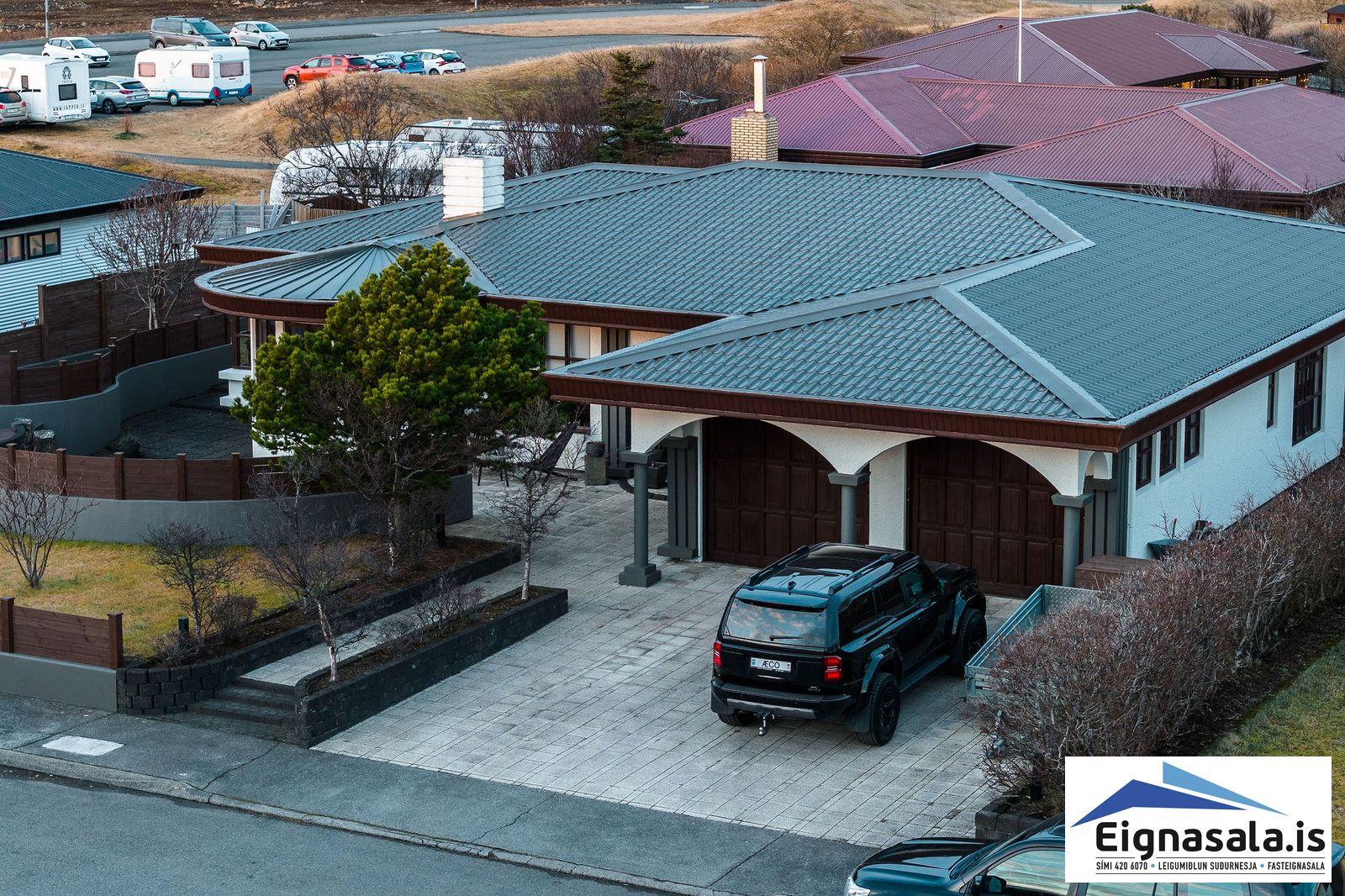 Eignasala.is kynnir eignina Lyngmói 16, 260 Reykjanesbær, nánar tiltekið eign merkt 01-01, fastanúmer 209-3943 ásamt öllu því sem eigninni fylgir, þar með talið tilheyrandi lóðar og sameignarréttindi. Eignin Lyngmói 16 er skráð sem hér segir hjá FMR: Eign 209-3943, birt stærð 255.2 fm. 1. Lýsing eignar Lyngmói 16 er vel skipulagt og rúmgott einbýlishús á einni hæð með bílskúr, staðsett á rólegum og fjölskylduvænum stað. Eignin er björt og hagnýt með alls fimm svefnherbergjum, tveimur baðherbergjum, góðu alrými og snyrtilegu útisvæði með heitum potti. Húsið hefur verið vel við haldið og fengið mikilvægar endurbætur, m.a. nýtt þak og endurnýjaðar innréttingar. 2. Skipulag eignarinnar Forstofa.Rúmgóð forstofa með flísalögðu gólfi. Góðir fataskápar. Eitt svefnherbergi við forstofu. Alrými – stofa og sjónvarpsstofa. Opið og bjart alrými. Parket á gólfi. Gólfhiti settur 2008 Stórir gluggar og gott rými fyrir bæði setu- og sjónvarpsrými. Svefnherbergisgangur. Fjögur svefnherbergi á gangi. Hjónaherbergi með sér baðherbergi (sturta, flísar á gólfi og veggjum). Þrjú önnur herbergi með góðum fataskápum. Aðalbaðherbergi. Rúmgott baðherbergi flísar á öllum veggjum og á gólfi snyrtileg innrétting og gott rými Bílskúr Bílskúr með miklum möguleikum Baðherbergi með sturtu inn af bílskúrnum Möguleiki á að nýta hluta bílskúrs sem auka svefnherbergi, vinnuaðstöðu, gestarými eða unglingaíbúð Lóð og útisvæði Snyrtileg framlóð með hellulögn og grasi Heitur pottur á framlóð Góð aðkoma og skjólgott rými 3. Endurbætur og viðhald Þak endurnýjað fyrir um 5 árum Innréttingar endurnýjaðar 2008 Gólfefni endurnýjuð 2008 Gólfhiti settur í alrými 2008 Húsið í heild sinni í mjög góðu viðhaldi 4. Möguleikar eignarinnar Mikið og hagnýtt rými fyrir fjölskyldur. Bílskúr með aukabaðherbergi sem hægt er að nýta á marga vegu. Fimm svefnherbergi – sjaldgæft og eftirsótt. Vel skipulögð rýmisnýting, bæði inni og úti. Heitur pottur sem bætir við lífsgæðum 5. Niðurstaða Lyngmói 16 er einstaklega vel við haldið og fjölskylduvænt heimili með góðu rými, mörgum svefnherbergjum og miklum möguleikum. Skipulagið er hagnýtt, alrýmið bjart og útisvæðið fallegt með heitum potti. Þetta er eign sem hentar vel bæði stórum og smærri fjölskyldum sem vilja gott, traust og vel við haldið heimili. Nánari upplýsingar á skrifstofu hafnagötu 90a í síma 4206070 eða julli@eignasala.is og joi@eignasala.is
