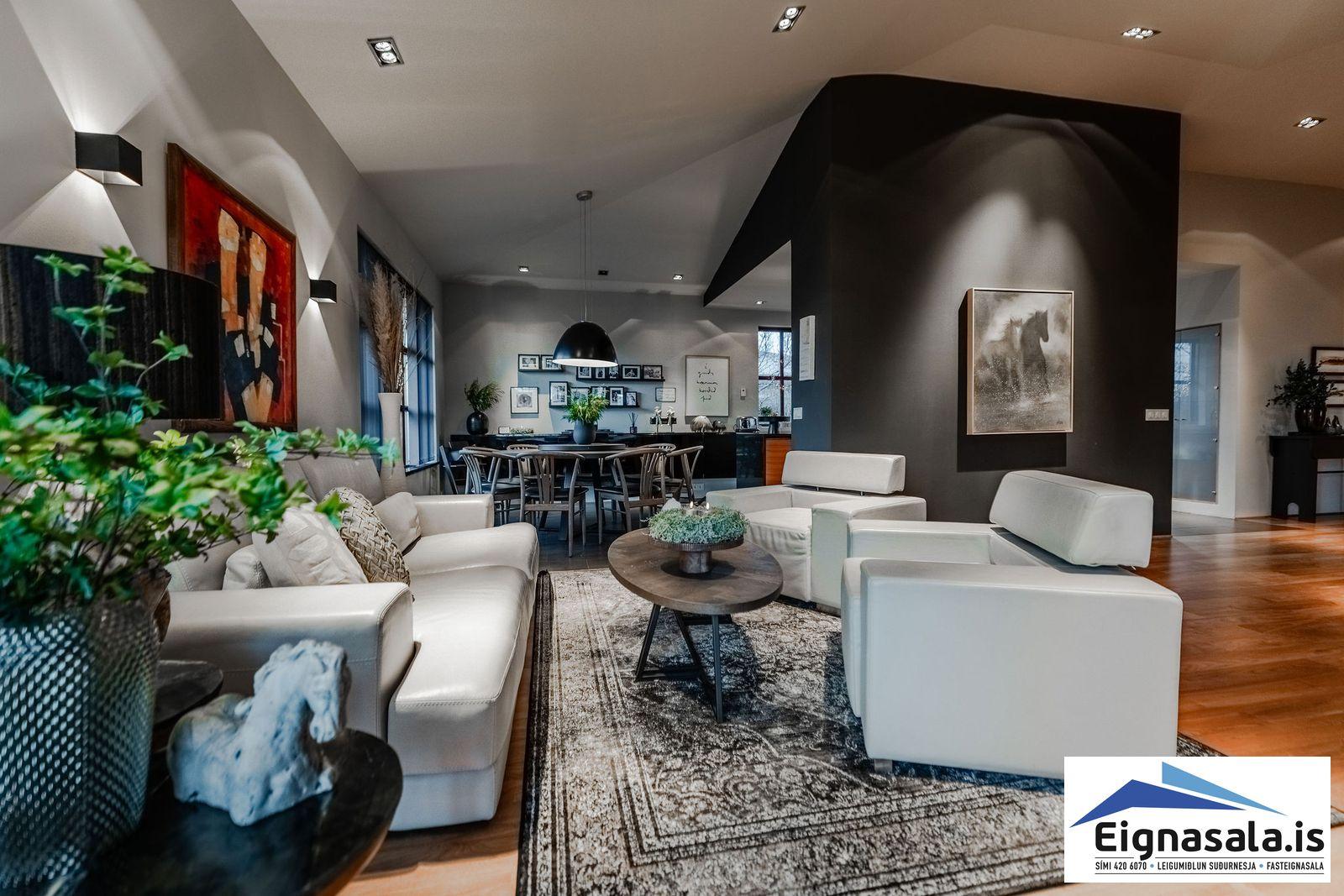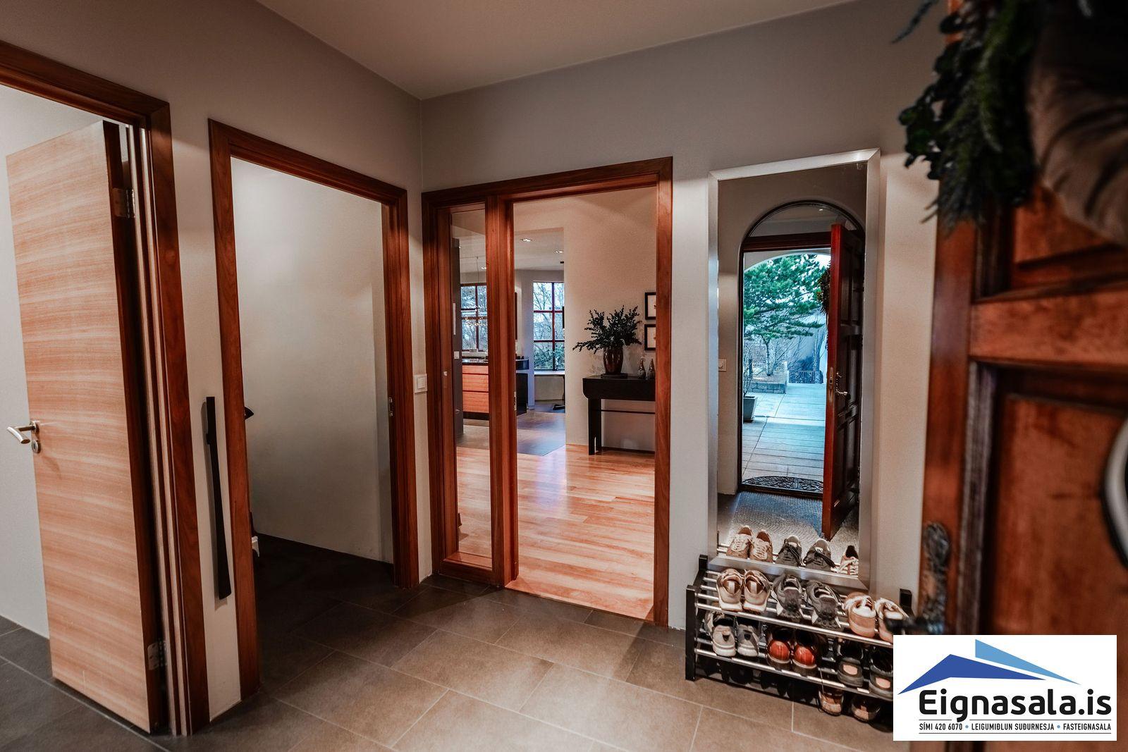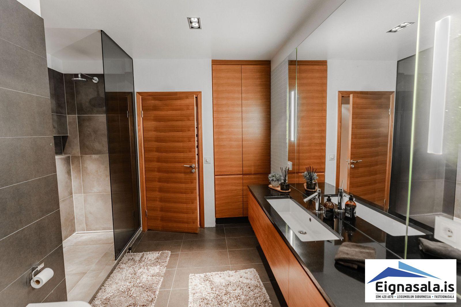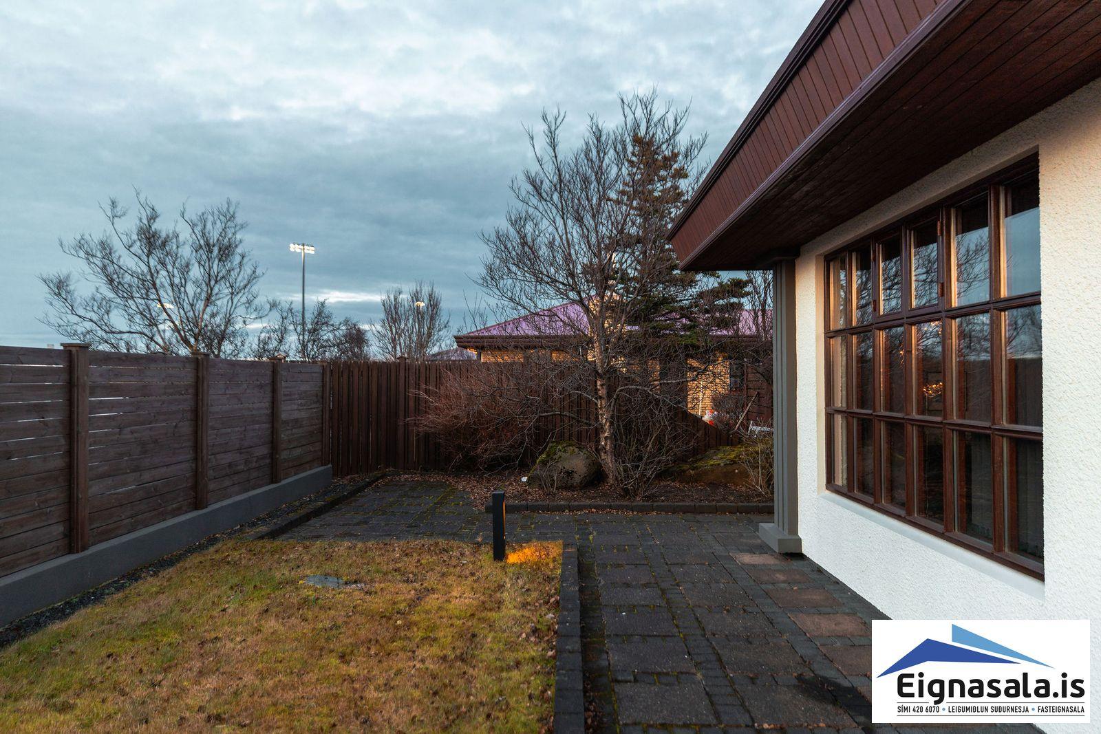 Eignasala.is kynnir eignina Lyngmói 16, 260 Reykjanesbær, nánar tiltekið eign merkt 01-01, fastanúmer 209-3943 ásamt öllu því sem eigninni fylgir, þar með talið tilheyrandi lóðar og sameignarréttindi. Eignin Lyngmói 16 er skráð sem hér segir hjá FMR: Eign 209-3943, birt stærð 255.2 fm. 1. Lýsing eignar Lyngmói 16 er vel skipulagt og rúmgott einbýlishús á einni hæð með bílskúr, staðsett á rólegum og fjölskylduvænum stað. Eignin er björt og hagnýt með alls fimm svefnherbergjum, tveimur baðherbergjum, góðu alrými og snyrtilegu útisvæði með heitum potti. Húsið hefur verið vel við haldið og fengið mikilvægar endurbætur, m.a. nýtt þak og endurnýjaðar innréttingar. 2. Skipulag eignarinnar Forstofa.Rúmgóð forstofa með flísalögðu gólfi. Góðir fataskápar. Eitt svefnherbergi við forstofu. Alrými – stofa og sjónvarpsstofa. Opið og bjart alrými. Parket á gólfi. Gólfhiti settur 2008 Stórir gluggar og gott rými fyrir bæði setu- og sjónvarpsrými. Svefnherbergisgangur. Fjögur svefnherbergi á gangi. Hjónaherbergi með sér baðherbergi (sturta, flísar á gólfi og veggjum). Þrjú önnur herbergi með góðum fataskápum. Aðalbaðherbergi. Rúmgott baðherbergi flísar á öllum veggjum og á gólfi snyrtileg innrétting og gott rými Bílskúr Bílskúr með miklum möguleikum Baðherbergi með sturtu inn af bílskúrnum Möguleiki á að nýta hluta bílskúrs sem auka svefnherbergi, vinnuaðstöðu, gestarými eða unglingaíbúð Lóð og útisvæði Snyrtileg framlóð með hellulögn og grasi Heitur pottur á framlóð Góð aðkoma og skjólgott rými 3. Endurbætur og viðhald Þak endurnýjað fyrir um 5 árum Innréttingar endurnýjaðar 2008 Gólfefni endurnýjuð 2008 Gólfhiti settur í alrými 2008 Húsið í heild sinni í mjög góðu viðhaldi 4. Möguleikar eignarinnar Mikið og hagnýtt rými fyrir fjölskyldur. Bílskúr með aukabaðherbergi sem hægt er að nýta á marga vegu. Fimm svefnherbergi – sjaldgæft og eftirsótt. Vel skipulögð rýmisnýting, bæði inni og úti. Heitur pottur sem bætir við lífsgæðum 5. Niðurstaða Lyngmói 16 er einstaklega vel við haldið og fjölskylduvænt heimili með góðu rými, mörgum svefnherbergjum og miklum möguleikum. Skipulagið er hagnýtt, alrýmið bjart og útisvæðið fallegt með heitum potti. Þetta er eign sem hentar vel bæði stórum og smærri fjölskyldum sem vilja gott, traust og vel við haldið heimili. Nánari upplýsingar á skrifstofu hafnagötu 90a í síma 4206070 eða julli@eignasala.is og joi@eignasala.is