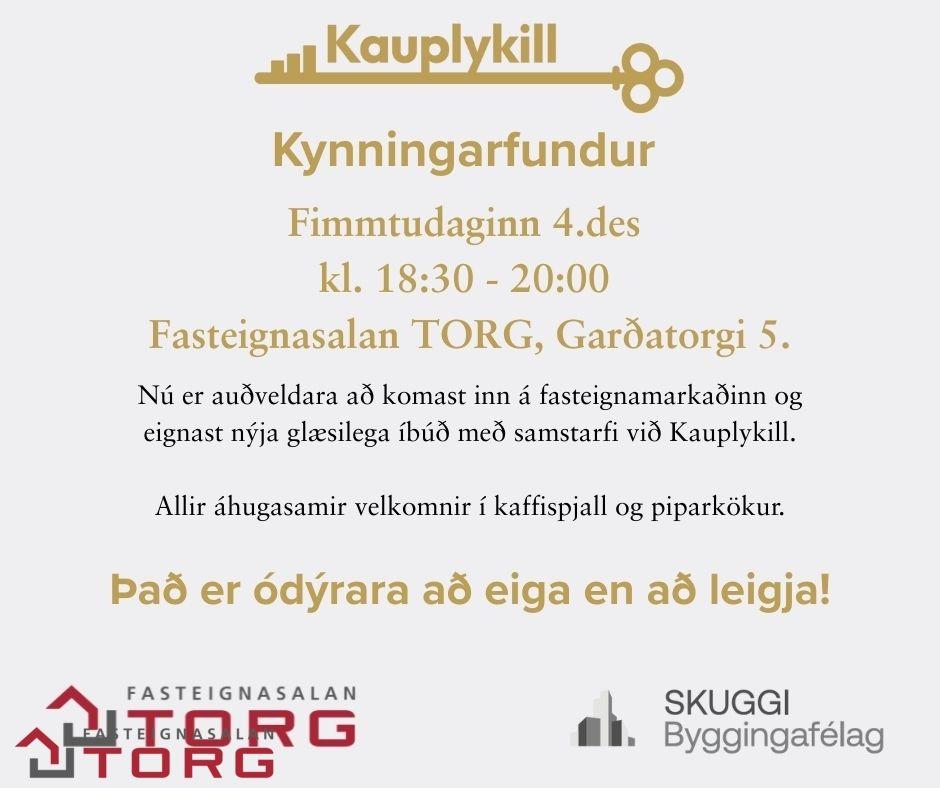 Kynnum nýja leið fyrir kaupendur og fyrstu kaupendur, inná fasteignamarkaðinn, 10% eigi fé, allt að 25% Kauplykill sem meðeigandi, og 65% húsnæðislán, KYNNTU þér málið hér KAUPLYKILL