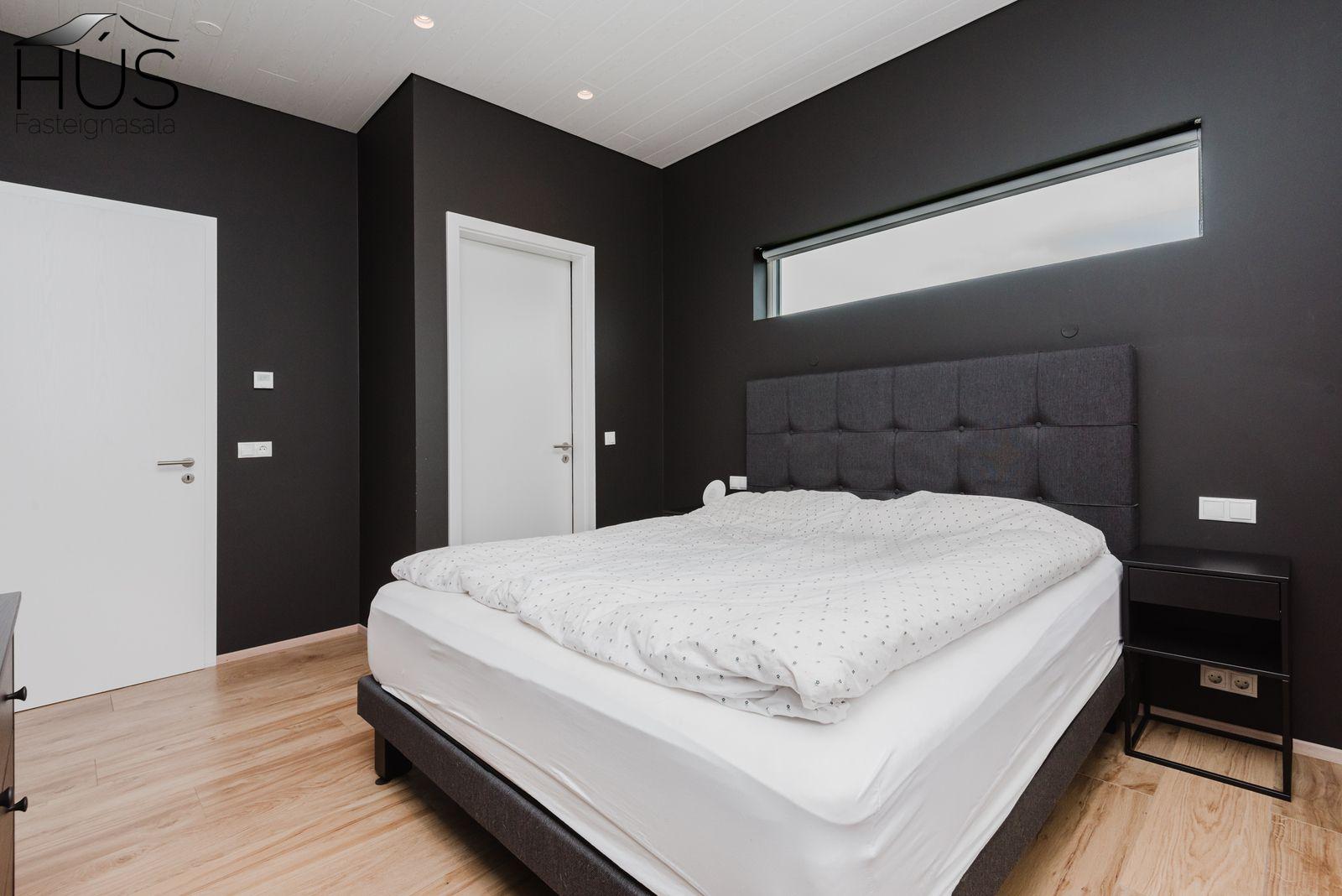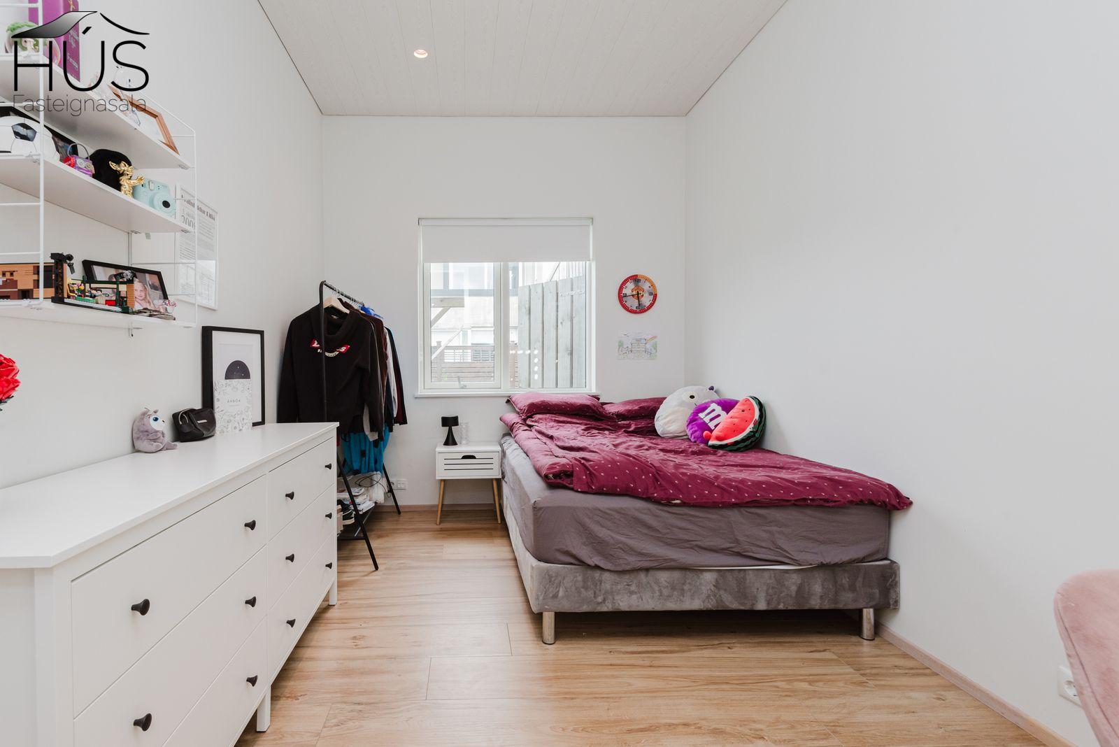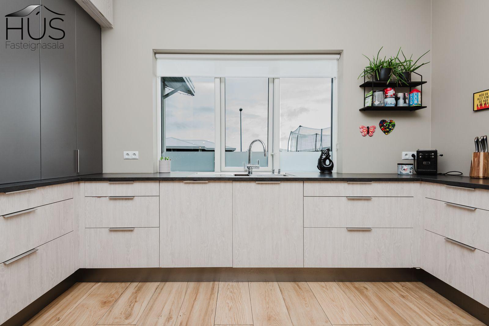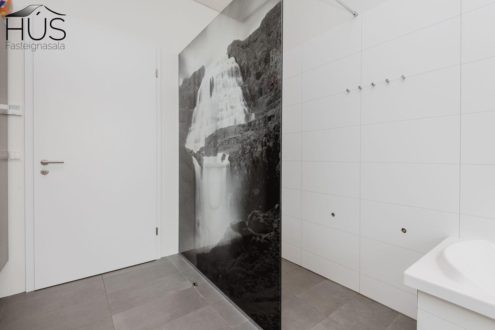 Flísalögð forstofa með stórum fataskáp sem nær til lofts. Fjögur rúmgóð svefnherbergi eru í húsinu og inn af hjónaherbergi er fataherbergi með góðri innréttingu. Rúmgott sjónvarpshol. Gangur sem hægt er að loka af með rennihurð og innst á honum er hljóðveggur. Bjart og stílhreint eldhús með góðri innréttingu með miklu skápa- og skúffuplássi. Í eldhúsi er veggföst eyja sem hægt er að sitja við á barstólum. Í stóru og opnu rými við eldhús er borðstofa og stofa þar sem m.a. er útgengt á sólpall. Í stofu er arinn. Snyrtilegt baðherbergi með innréttingu, upphengdu wc, baðkari, og "walk in" sturtu með glervegg. Annað gestasalerni er við forstofu. Þvottahús með innréttingu sem gerir ráð fyrir þvottavél/þurrkara í vinnuhæð og úr því er gönguhurð út á baklóð. Innangengt er í mjög rúmgóðan bílskúr með góðri lýsingu og stórri innkeyrsluhurð. Á gólfum eru annars vegar ljósar flísar á votrýmum en hins vegar parketflísar. Niðurtekin loft eru í húsinu sem er með aukna lofthæð og loftaþyljur í loftum. Digital stýringar fyrir gólfhita.