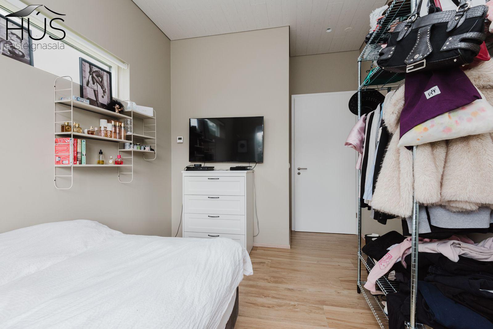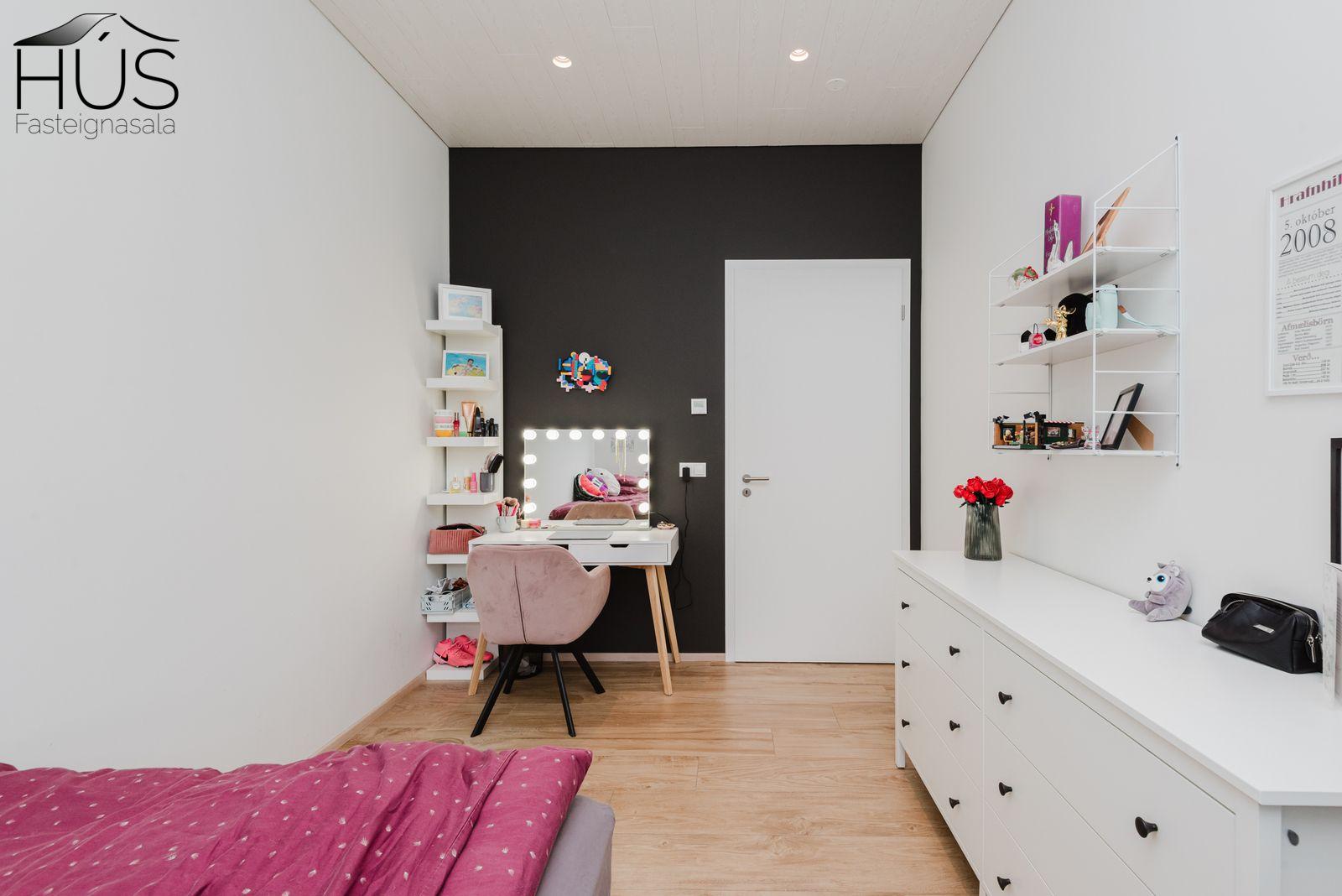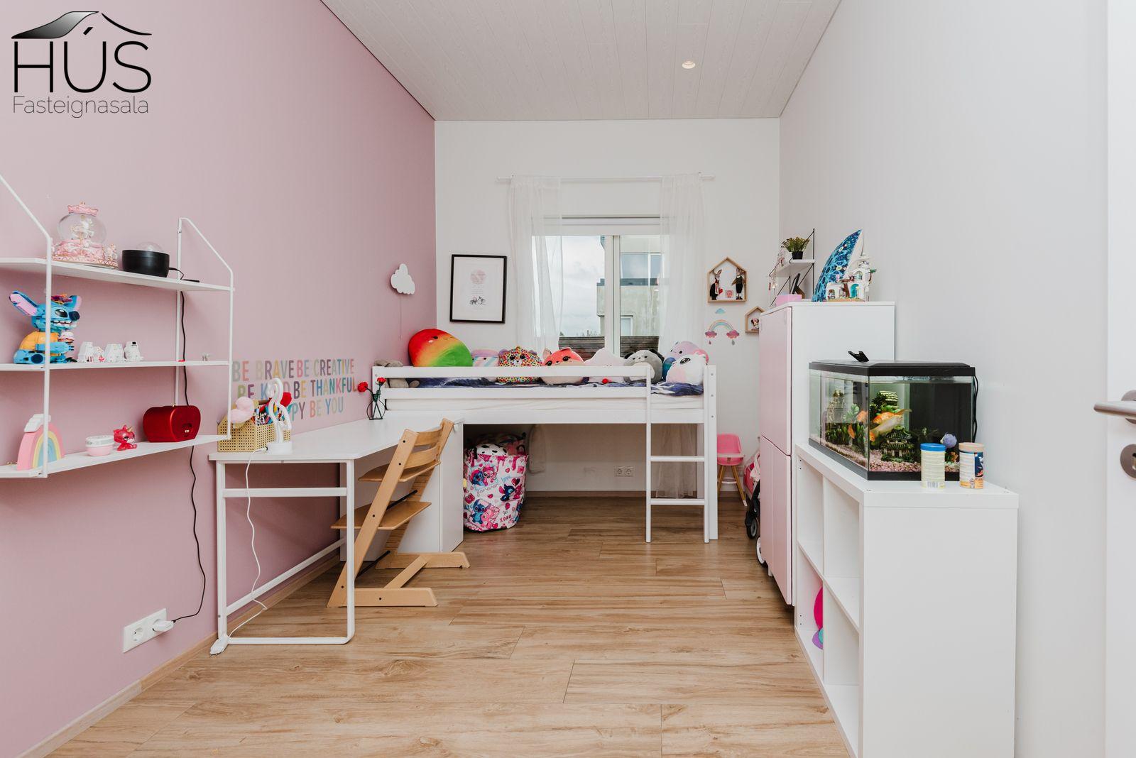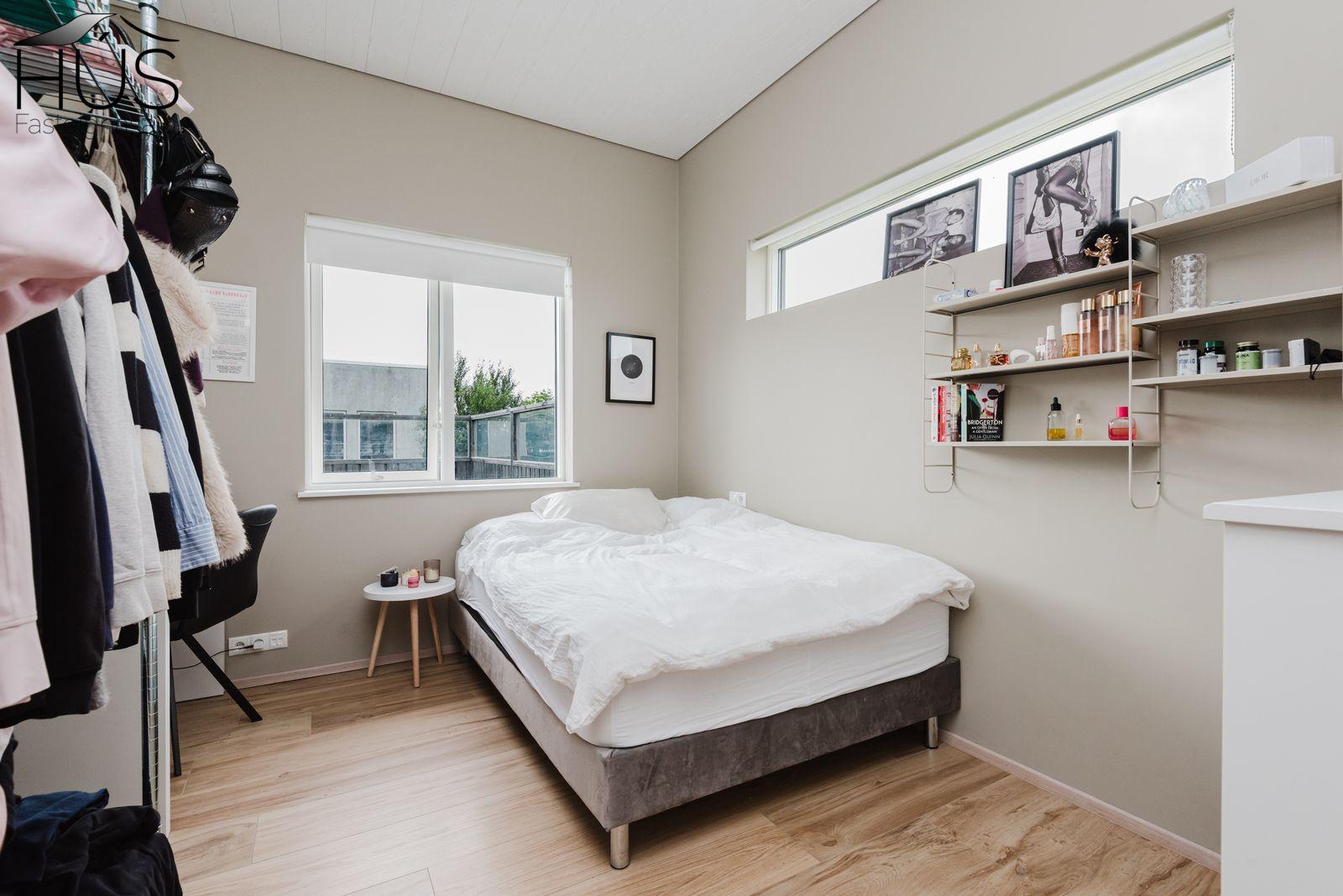 Flísalögð forstofa með stórum fataskáp sem nær til lofts. Fjögur rúmgóð svefnherbergi eru í húsinu og inn af hjónaherbergi er fataherbergi með góðri innréttingu. Rúmgott sjónvarpshol. Gangur sem hægt er að loka af með rennihurð og innst á honum er hljóðveggur. Bjart og stílhreint eldhús með góðri innréttingu með miklu skápa- og skúffuplássi. Í eldhúsi er veggföst eyja sem hægt er að sitja við á barstólum. Í stóru og opnu rými við eldhús er borðstofa og stofa þar sem m.a. er útgengt á sólpall. Í stofu er arinn. Snyrtilegt baðherbergi með innréttingu, upphengdu wc, baðkari, og "walk in" sturtu með glervegg. Annað gestasalerni er við forstofu. Þvottahús með innréttingu sem gerir ráð fyrir þvottavél/þurrkara í vinnuhæð og úr því er gönguhurð út á baklóð. Innangengt er í mjög rúmgóðan bílskúr með góðri lýsingu og stórri innkeyrsluhurð. Á gólfum eru annars vegar ljósar flísar á votrýmum en hins vegar parketflísar. Niðurtekin loft eru í húsinu sem er með aukna lofthæð og loftaþyljur í loftum. Digital stýringar fyrir gólfhita.