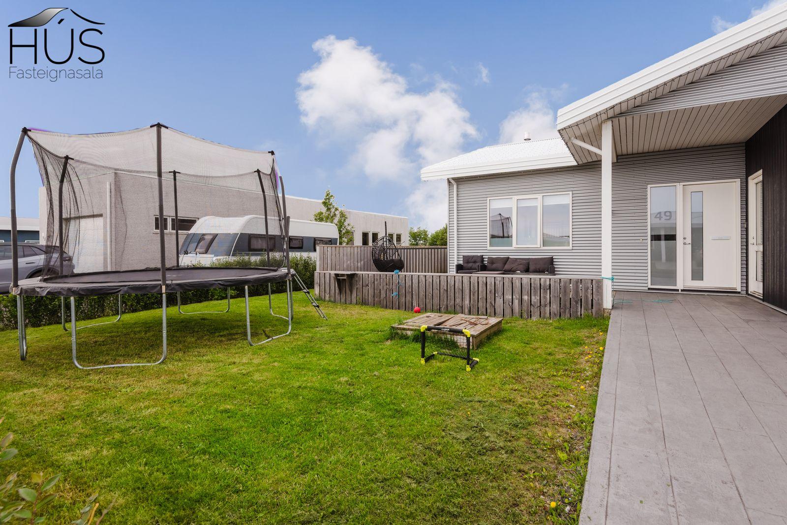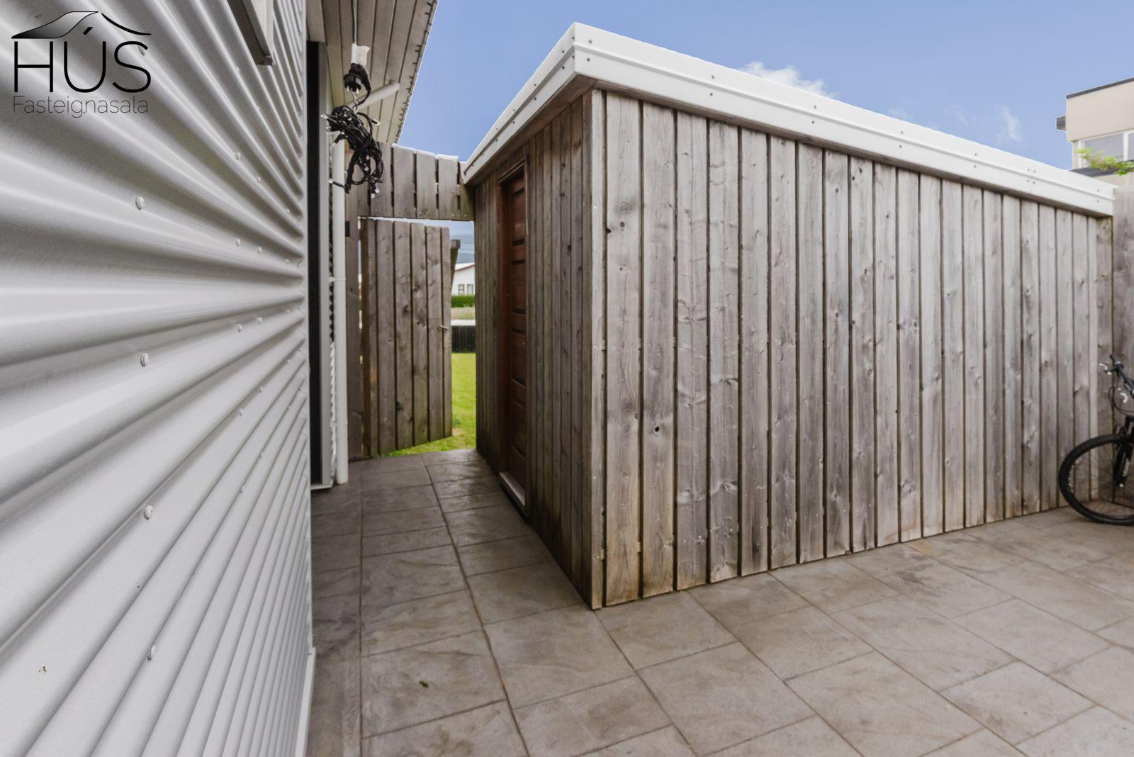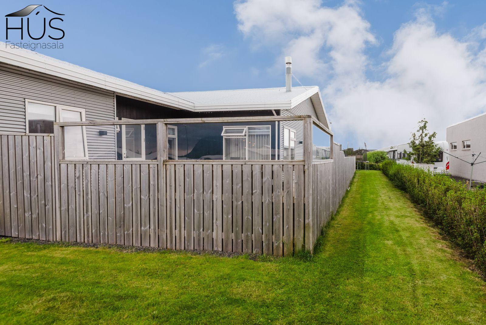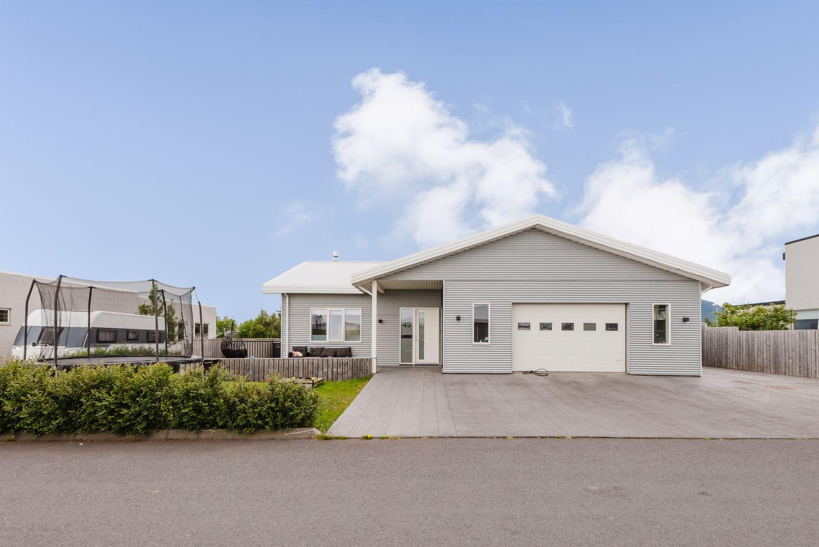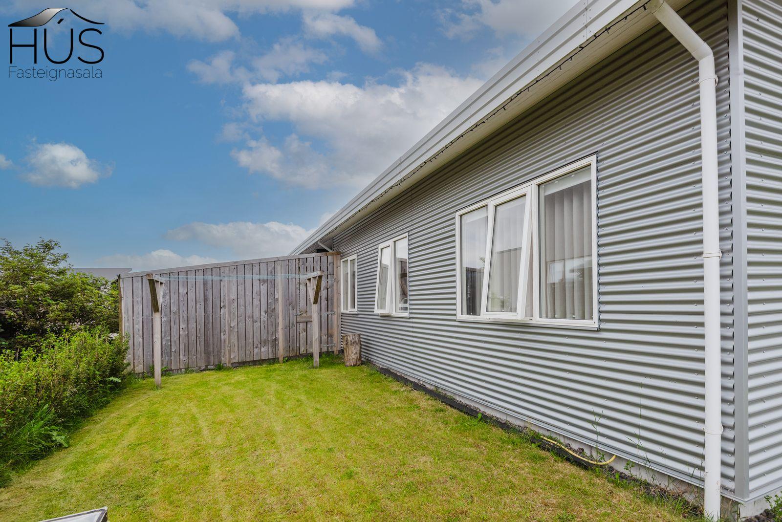Garðurinn er fallegur, gróinn og skjólsæll. Bílastæði er stimpilsteypt og snjóbræðsla í gangstétt frá götu og að inngangi.