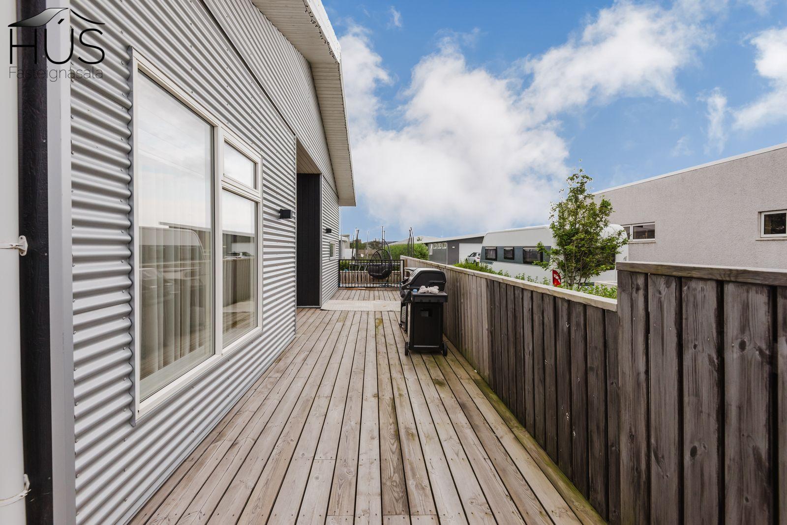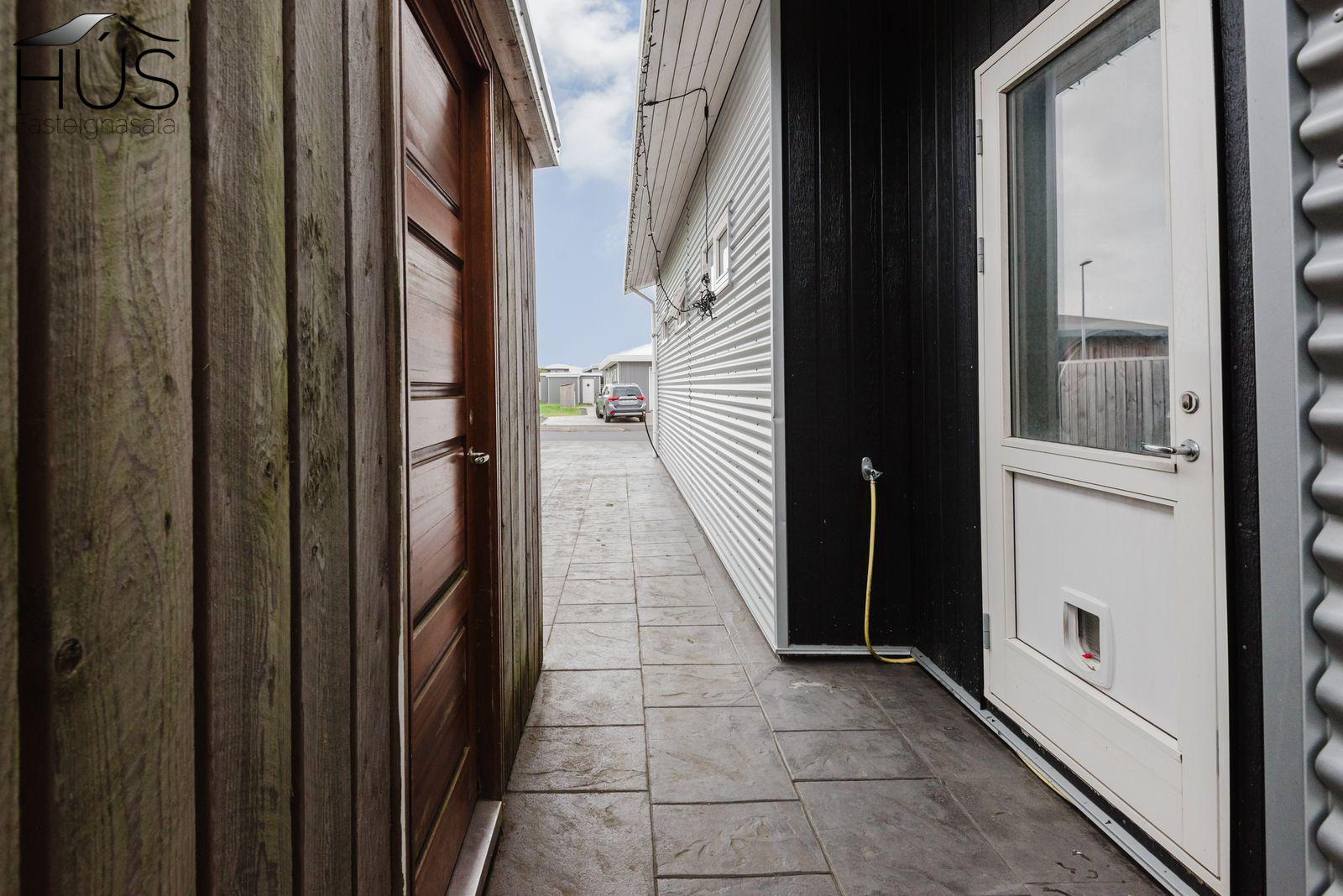 Hafsteinn Þorvaldsson fasteignasali og HÚS fasteignasala kynna í einkasölu: Virkilega snyrtilegt, stórt og rúmgott 5 herbergja einbýlishús 187,9 fm ásamt sambyggðum 74,2 fm bílskúr, samtals 262,1 fm. Húsið er byggt árið 2017 úr timbri og að utan er húsið klætt með bárustáli í bland við svarta canexel klæðningu. Vindskeiðar eru klæddar með áli. Frábær staðsetning innarlega í botnlanga í rólegu og eftirsóttu hverfi á Selfossi. Sólpallur með skjólgirðingu og heitum potti. Frágengin garður og bílaplan steypt. Nýlegt og rúmgott hús.