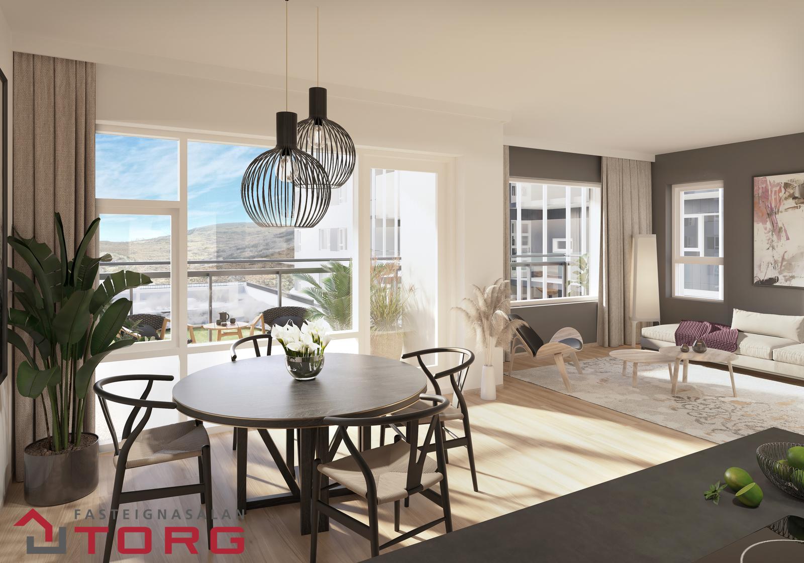 Fasteignasalan TORG kynnir: Glæsileg 4ra herbergja enda-íbúð með suðursvalir. Íbúð merkt:0302 ásamt bílastæði merkt05-B23, sem skilast fullbúin með gólfefnum. Íbúðin er alls 119,7 fm að stærð á 3. hæð í góðu lyftuhúsi , sjá hér slóð inná heimasíðu verkefnisins Íbúðin sjálf er skráð 103,3 fm og skiptist í anddyri, alrými með eldhúsi með eyju og stofu með útgengi út á svalir, 3 svefnherbergi, baðherbergi með þvottaaðstöðu og sér geymslu í sameign, skráð 16,4 fm. Allar nánari upplýsingar, teikningar, og skilalýsingu er hægt að nálgast hjá Skúla lgfs. Fasteignasala í síma 869-7014 eða skuli@fstorg.is