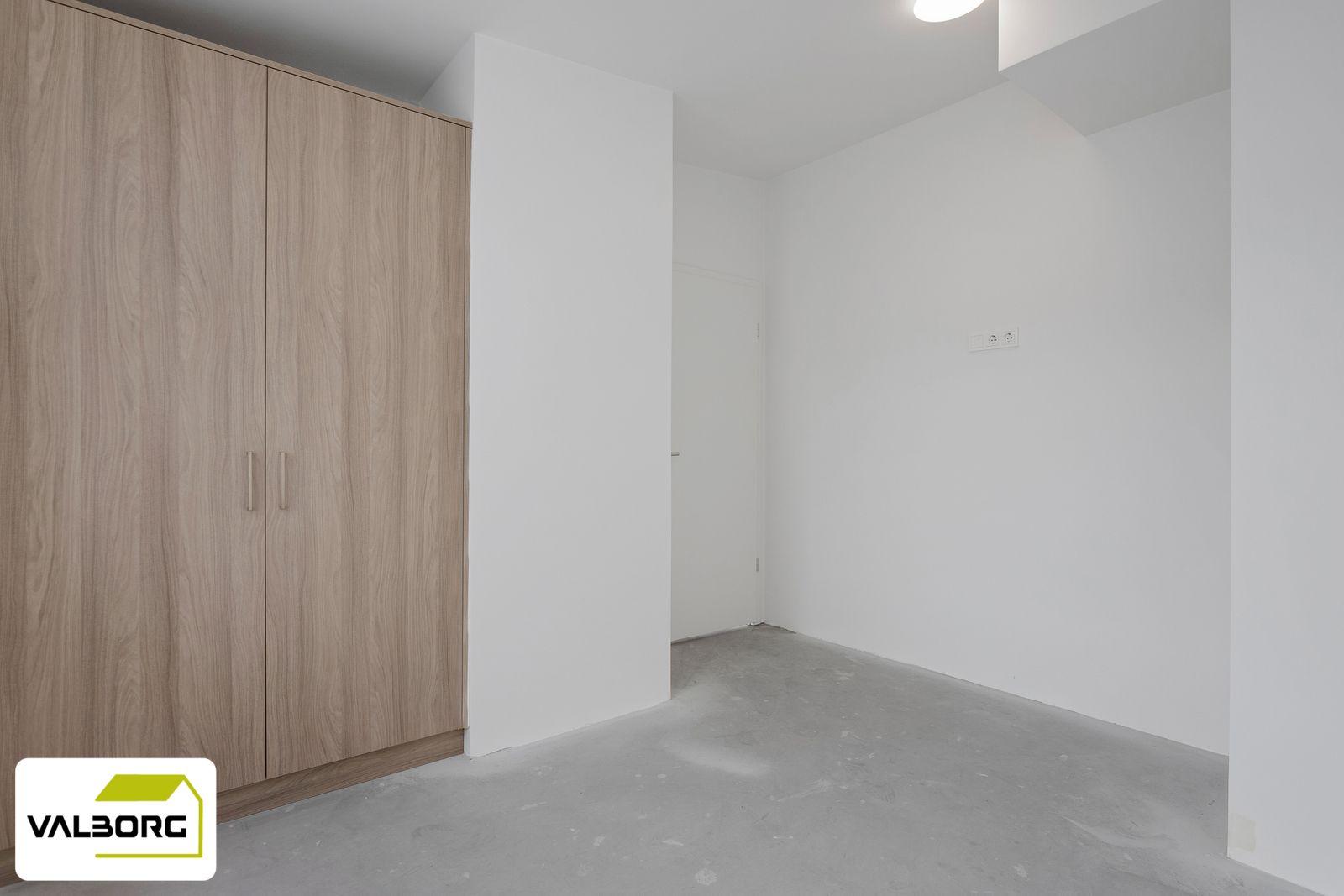 Eldhús: falleg, ljós innrétting með bakarofni í vinnuhæð, spanhelluborð, vifta, innbyggð uppþvottavél og innbyggður kæliskápur með frysti.