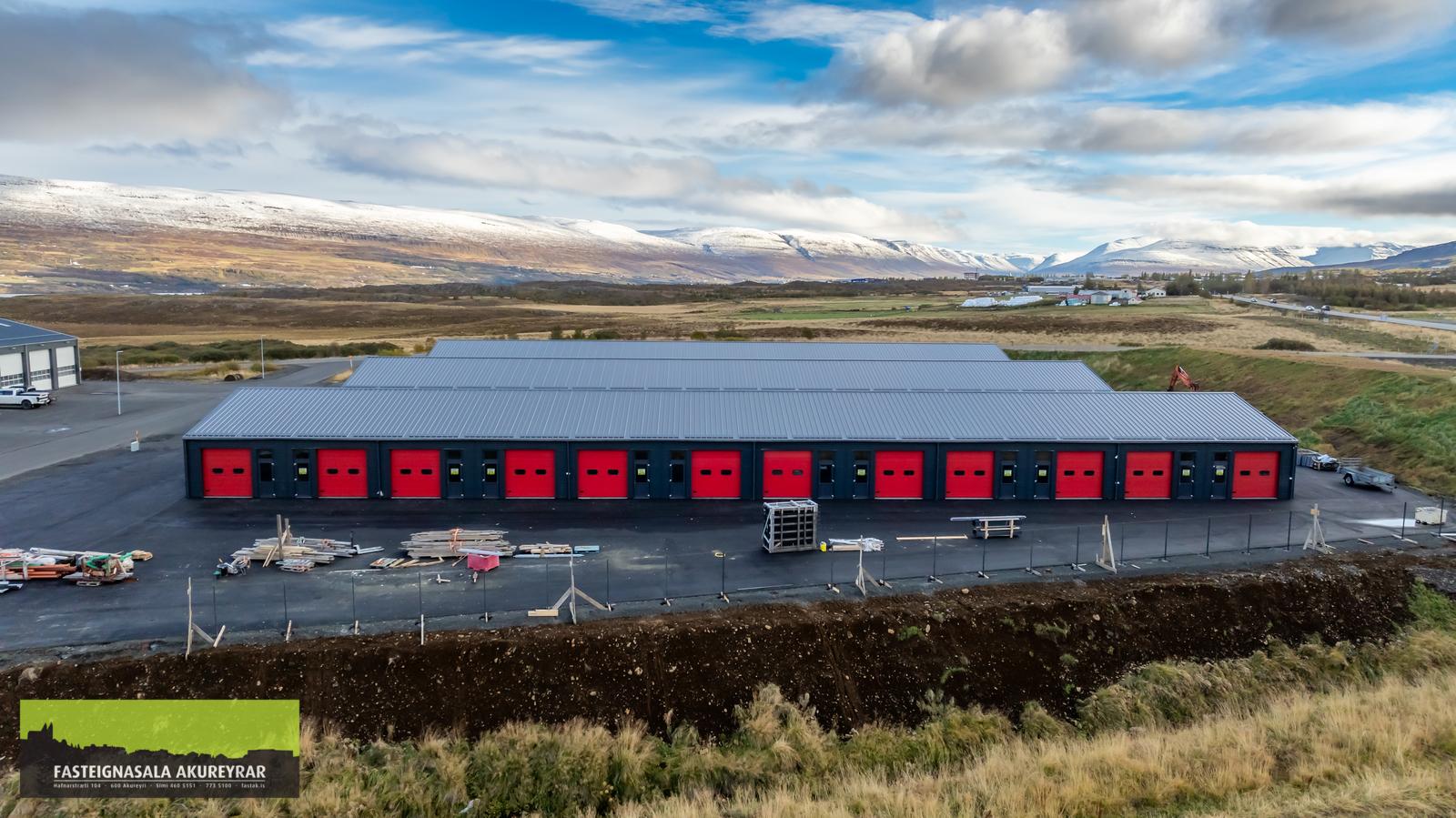 Nú er rétti tíminn til að tryggja sér geymslubil fyrir veturinn, afhending 1. nóvember 2024 Lækjarvellir 1c Geymslan er 45,2 m2 og er með vélslípuðu gólfi, upphitun er með vatnsofni, rafmagn er lagt „í töflu“ og eitt ljós og útilýsing. Inntak fyrir heitt og kalt vatn. Niðurfall við útihurð og innst er gert ráð fyrir snyrtingu, lagnir að og frá. Hæð húss upp í mæni er 5,83 metrar. Hæð innkeyrsluhurðar er 3 metrar og breidd er 3 metrar og verður hún rafdrifinn og einnig verður ein inngangshurð. Stærð: 45,2m2, innanmál er 5,53 metrar á breidd og 7,82 metrar á lengd. Geymsluhúsnæði á einni hæð sem stendur á steinsteyptum sökkli. Burðarvirki er úr stálrömmum. Útveggir eru úr yleiningum, kjarni er polyurithane PIR sem festar eru á burðarkerfi úr stálprófílum. Innveggir er úr samloku eignar með steinull á milli hólf. Sameign allra Í matshlutanum er í sameign allra tæknirými merkt 0125. Einnig er í sameign allra allt ytra byrði matshlutans ásamt öllum lögnum, svo sem fyrir heitt/kalt vatn, skólp, rafmagn, síma, loftnet og fl. sem þjóna sameiginlegum þörfum og þörfum heildarinnar, án tillits hvar þær eru í húsinu. Kostnaður vegna sameignar allra skiptist eftir hlutfallstölu í sameign allra mhl 01. Sameign allra er lituð með gulum lit á teikningum. Hita og rafmagnskostnaður. Hita og rafmagnskostnaður Í matshlutanum eru tuttugu og fimm rafmagnsmælar sem mæla rafmagnsnotkun fyrir alla matshluta. Það er einn rafmagnsmælir fyrir hverja séreign og einn mælir sem mælir rafmagnsnotkun fyrir sameign allra og alla útilýsingu við matshlutann og lýsingu á lóð. Hver séreign greiðir samkvæmt sínum mæli en kostnaður vega sameignarmælis skiptist að jöfnu á milli allra séreigna í matshlutanum. Rafmagnsinntak og rafmagnsmælar eru staðsett í tæknirými 0125. Í matshlutanum er einn heitavatns rennslismælir sem mælir heitavatnsnotkun fyrir alla matshluta. Hitakostnaði er skipt eftir brúttó rúmmáli upphitaðra rýma og er það tekið fram í eignalýsingum séreigna sem hlutfallstala í hitakostnaði. Öll séreignarrými í matshlutanum eru upphituð. Tæknirými 0125 reiknast ekki hlutfall í hitakostnaði þar sem rýmið tekur hita frá hitagrind sem staðsett er í rýminu. Heitavatnsinntak og rennslismælir eru staðsett í tæknirými 0125.